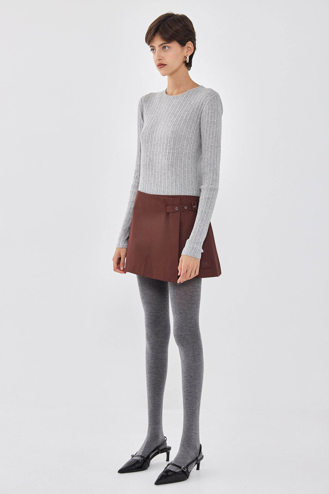 Ready for any occasion, our wrap mini skirt brings a dose of elegance and charm. Lined. Two side pockets. Adjustable strap for both high and mid waist. Tonal embroidered logo on the pocket. A-line fit. Style it with our matching cropped trench coat, our long sleeved ribbed knit and a pair of our oval sunglasses for a classy and chic look.