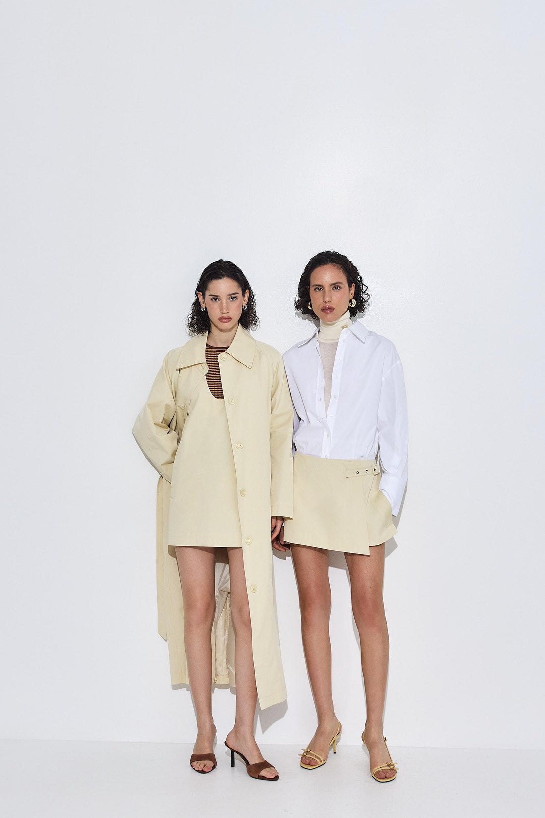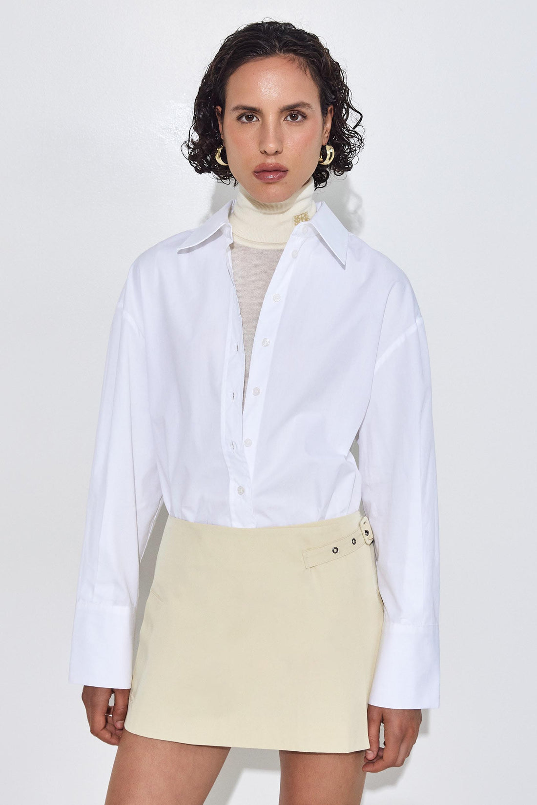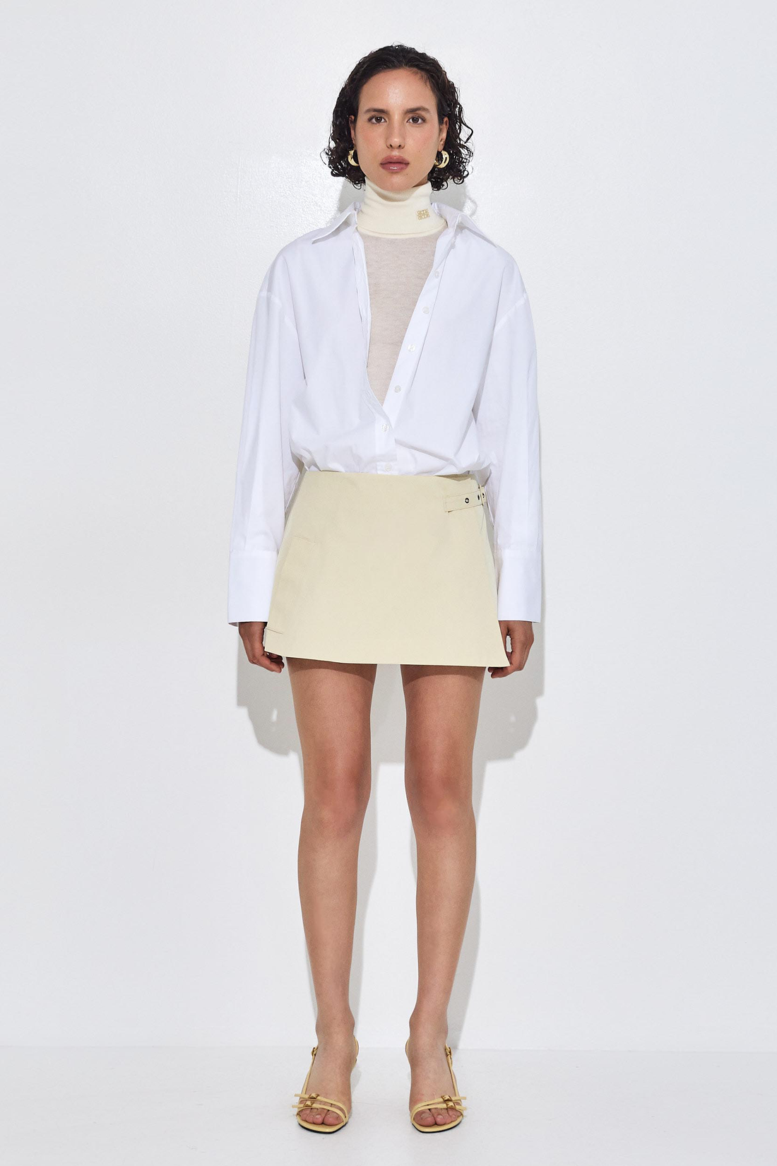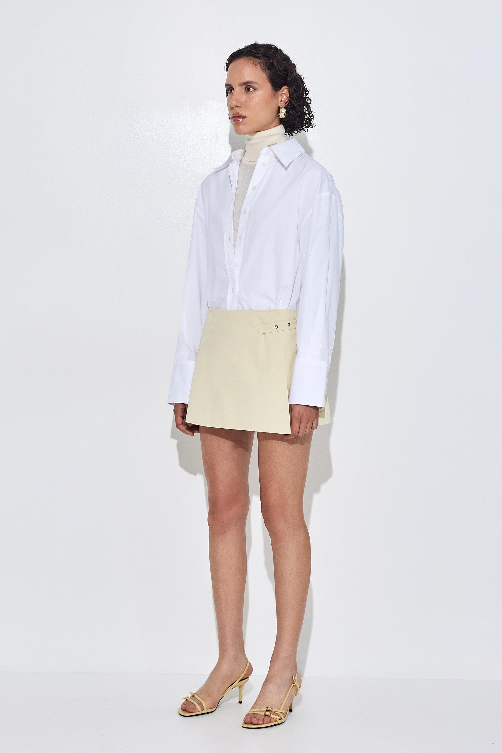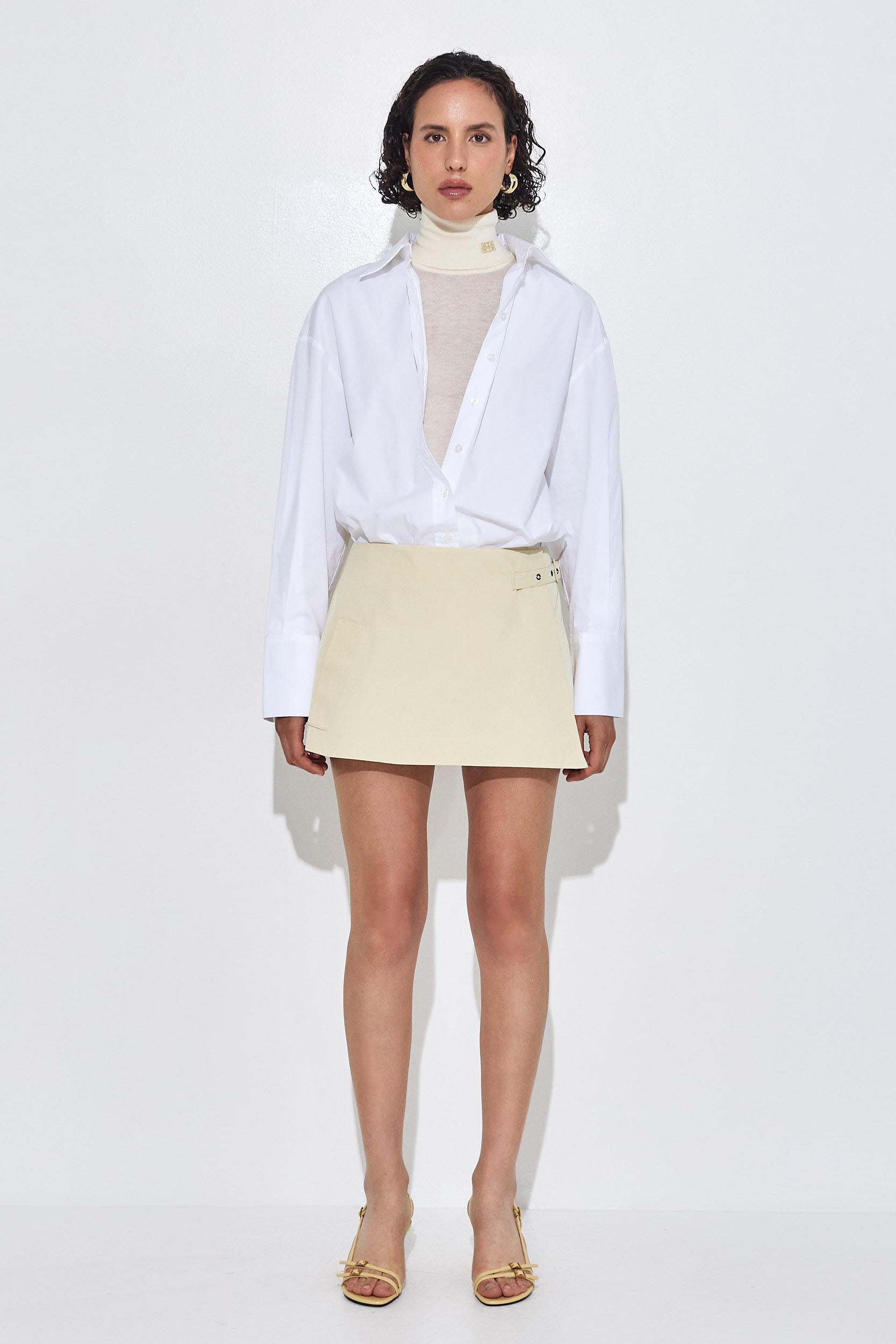Ready for any occasion, our wrap mini skirt brings a dose of elegance and charm. Lined. Two side pockets. Adjustable strap for both high and mid waist. Tonal embroidered logo on the pocket. A-line fit. Style it with our matching cropped trench coat, our long sleeved ribbed knit and a pair of our oval sunglasses for a classy and chic look.