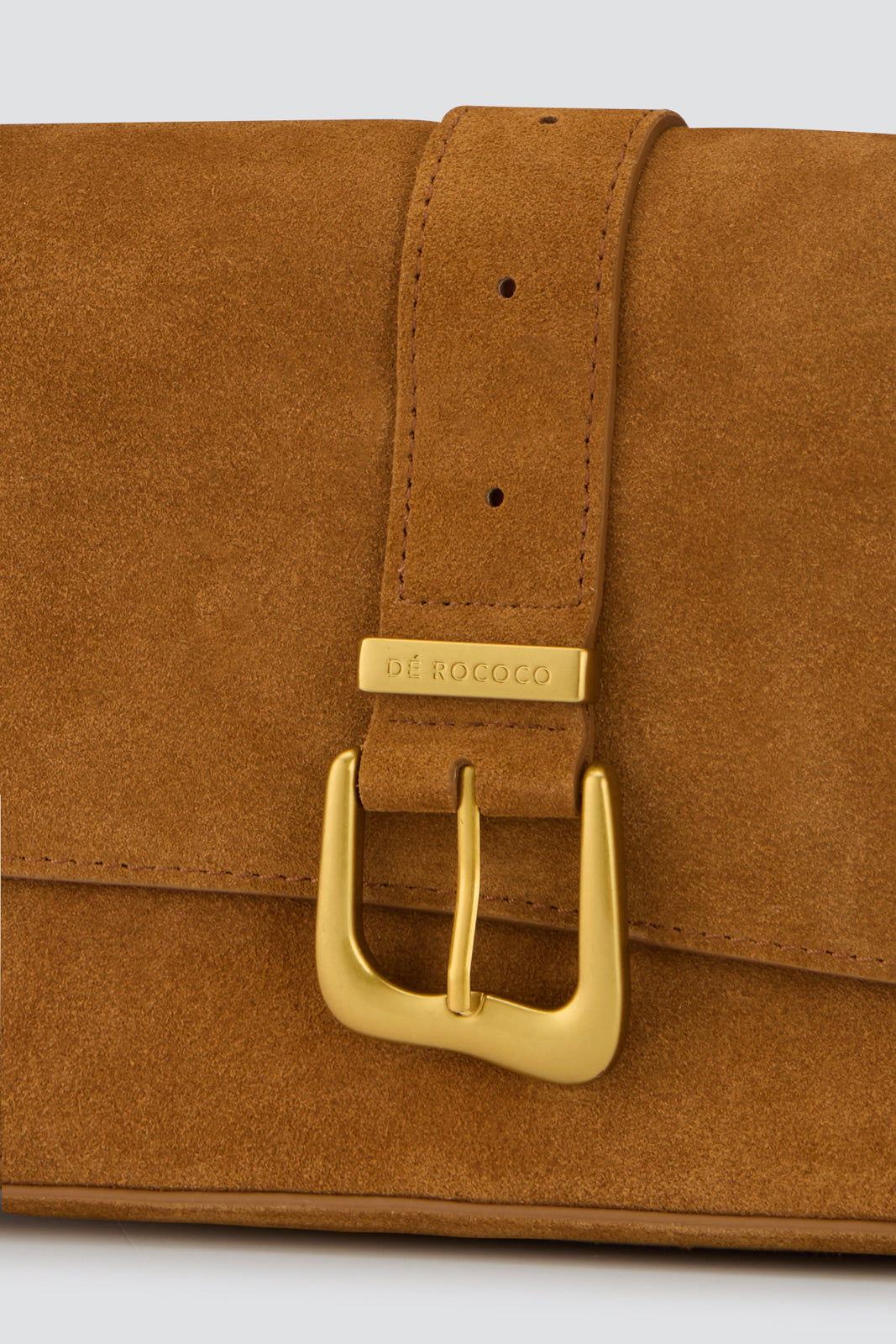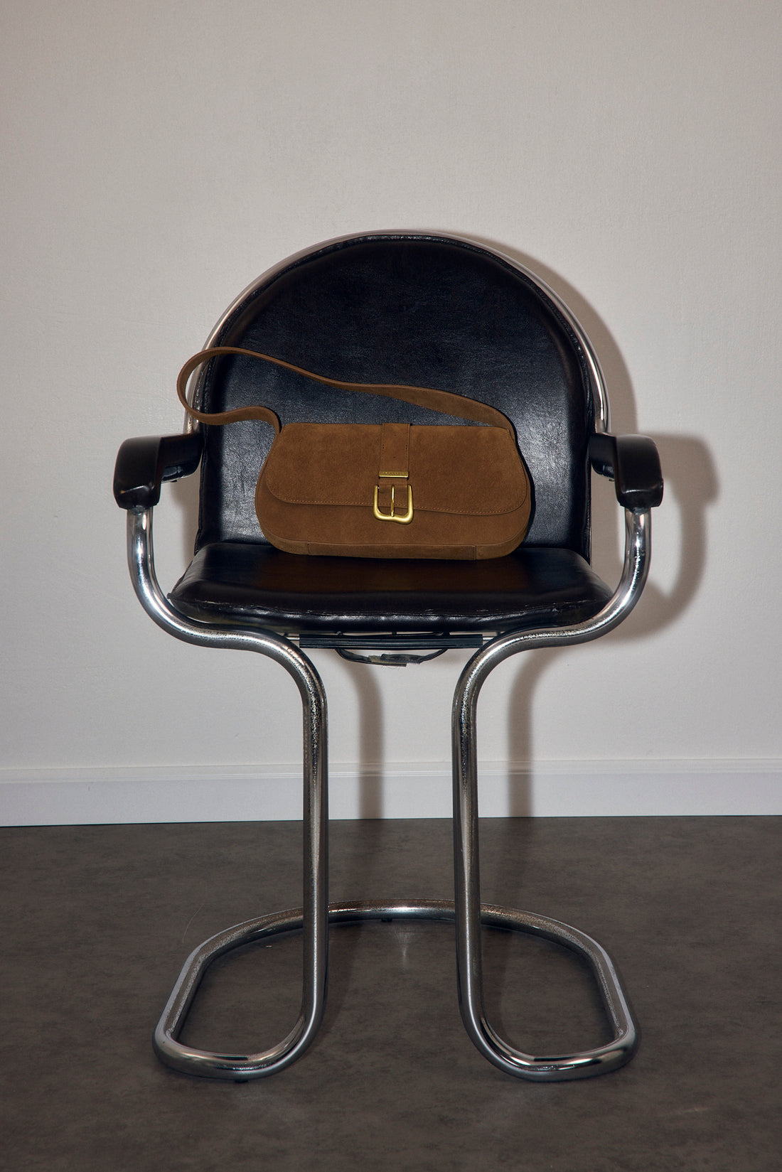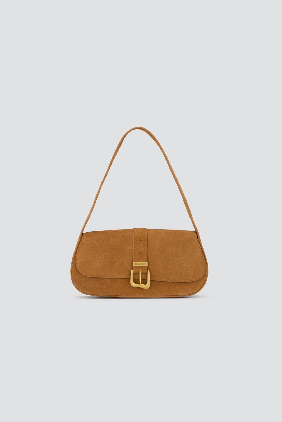 Crafted with love from the finest genuine leather, the Yvon shoulder bag draws inspiration from Romy's grandmother’s most treasured vintage collection. Its buckle detailing, borrowed from her favorite leather belt, blends nostalgic charm with refined craftsmanship. Structured baguette silhouette. Made from soft, rich suede leather. Front flap with decorative gold buckle detailing. Magnetic snap closure for easy access. Interior zip pocket and slip pocket for essentials. Branded leather patch and zipper pull. Fully lined interior. Back slip pocket for added functionality. Includes a branded dust bag for safe storage and protection. It's more than just a bag, our new Yvon is a timeless piece designed to carry your most prized possessions. Meant to be cherished, it’s made to be worn with love—for a lifetime.