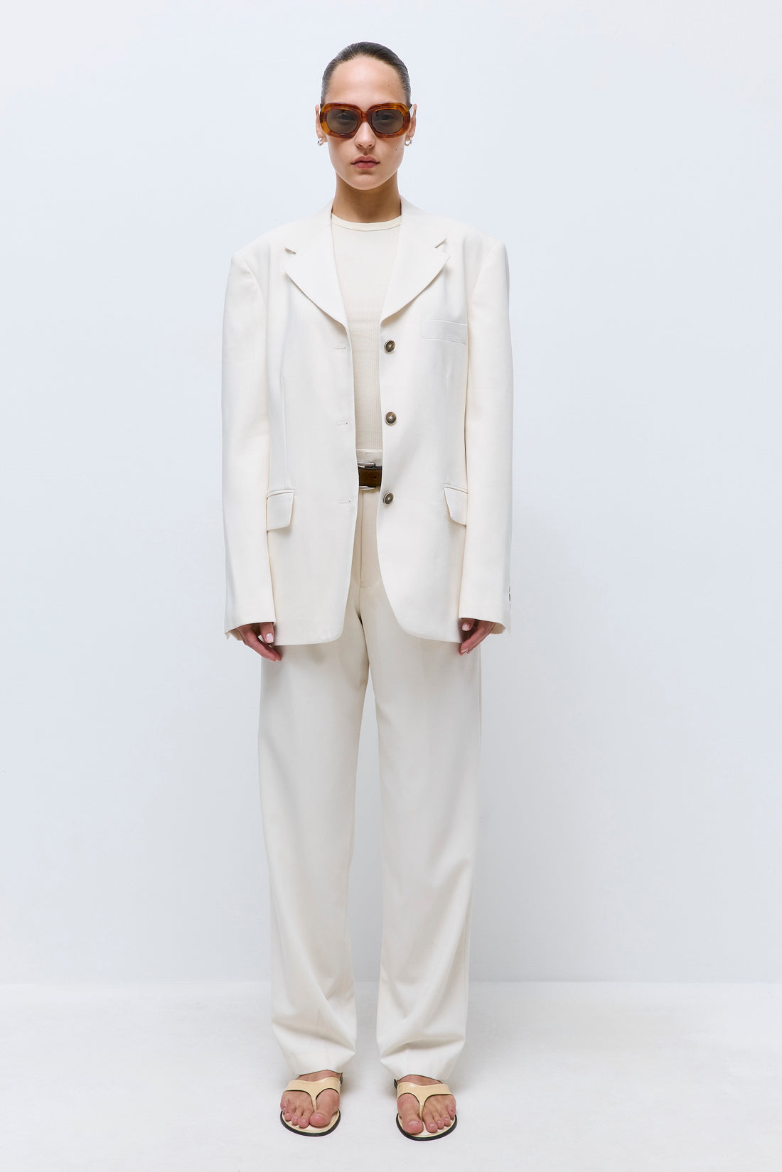 Welcoming new, timeless pieces to our iconic Daddy collection. A classic blazer. Oversized fit. Complete with a lapel collar. Featuring two front flap pockets. Tonal buttons with contrast trim edge. Tonal embroidered logo. Fully lined. Detailed with two inside pockets. Wear it with our new, stylish Slim Daddy Pants and timeless Yvon Shoulder Bag for a refined look.