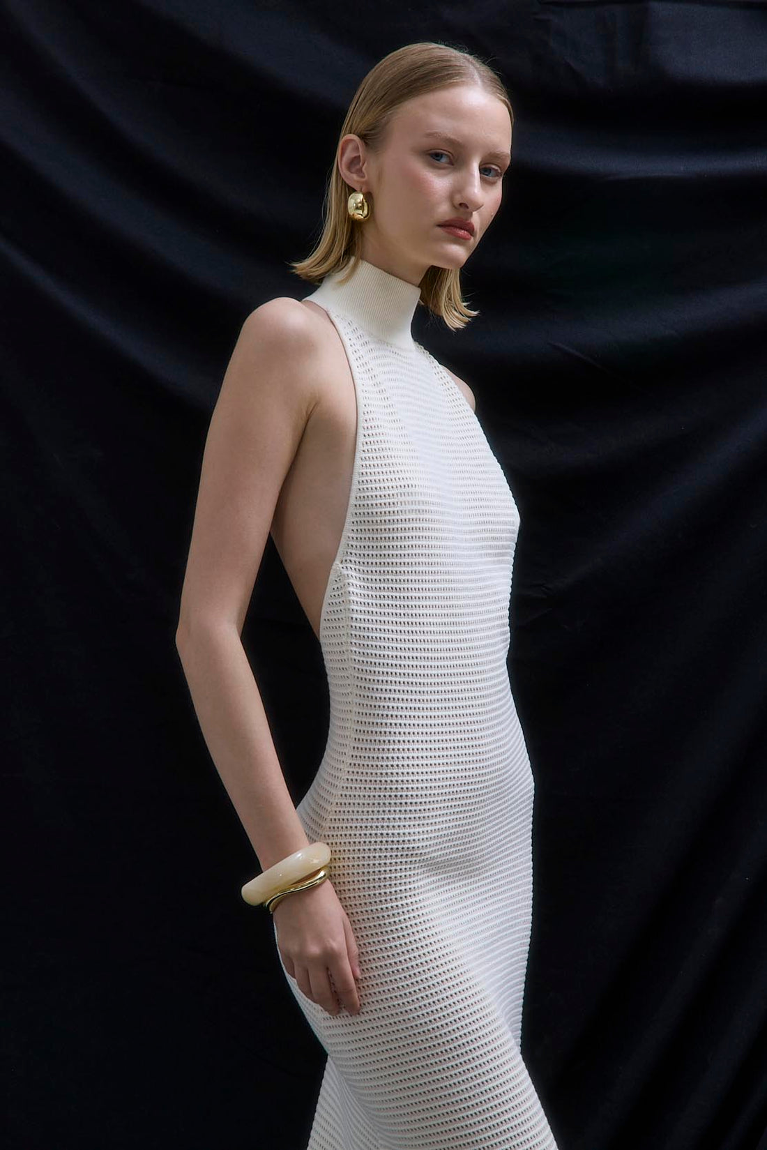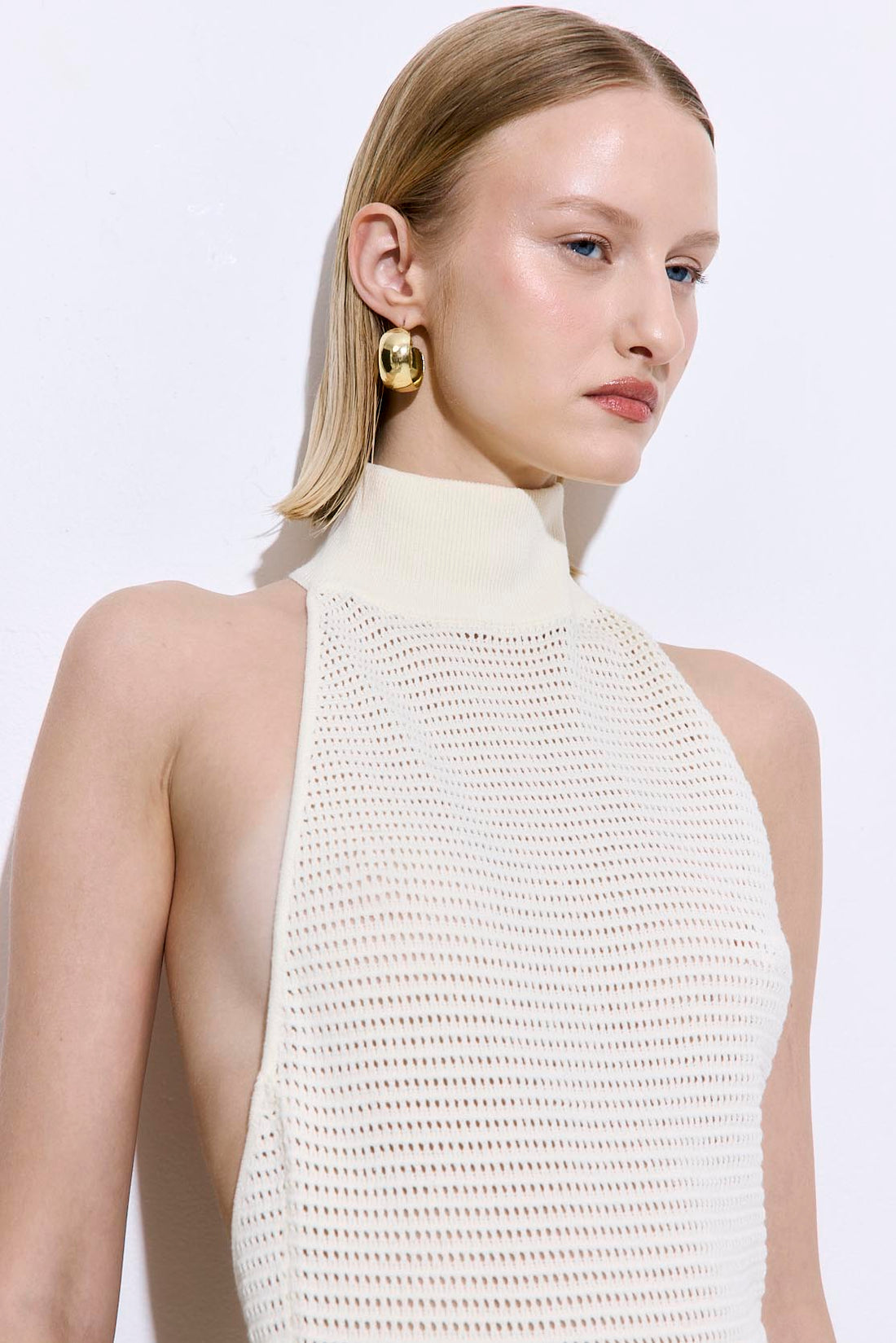 Prepare to be obsessed with our new crochet turtle neck dress. Features a high turtle neck and an open back design. Maxi length. Sleeveless. Lightweight and breathable luxurious fabric. Slim and body-skiming fit. Style it with our mini crochet shoulder bag and our oval sunglasses to seal this gorgeous look.