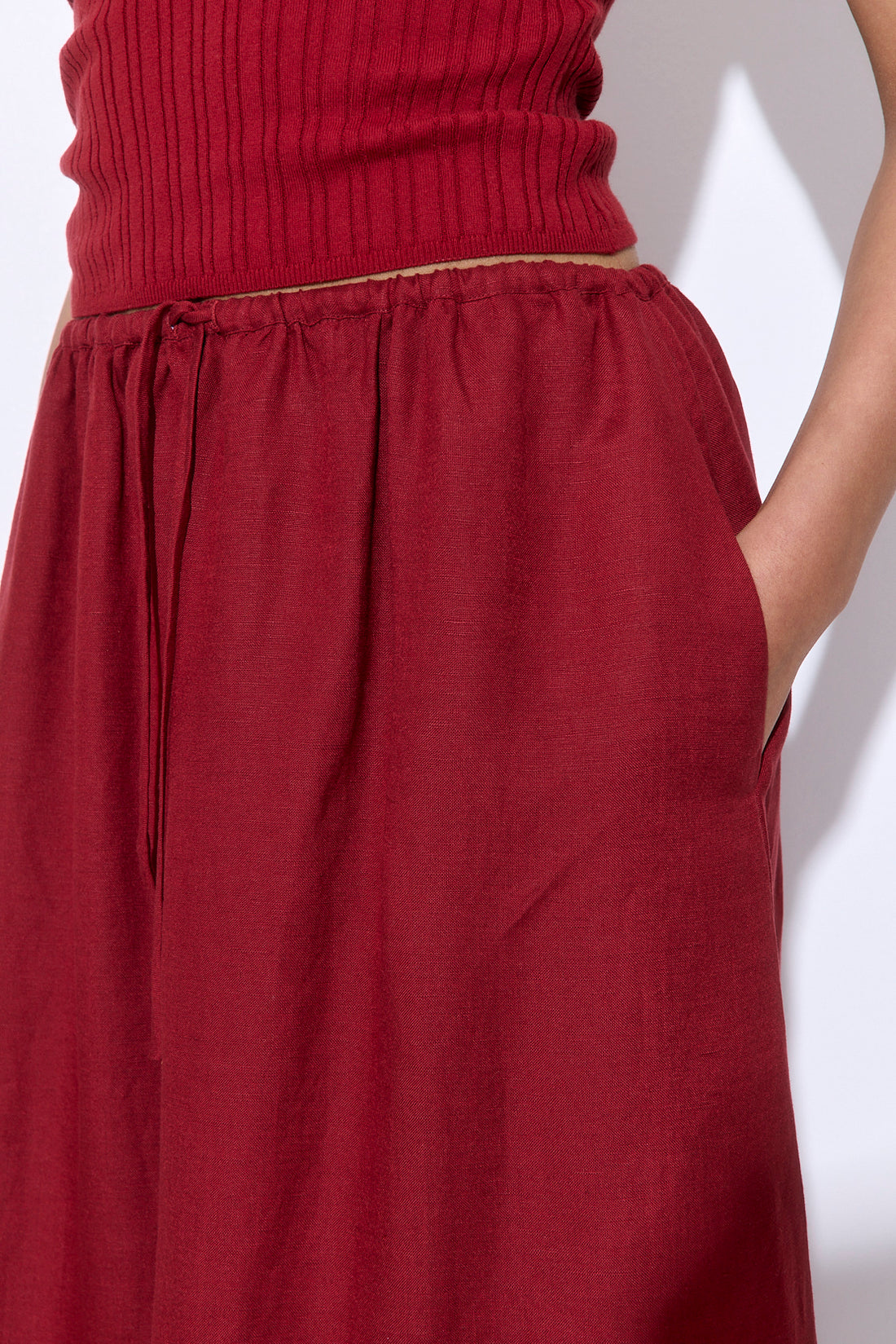 The skirt you’ll reach for all season long. Cut from breathable, lightweight linen with a sleek, straight silhouette that flows with ease. Features a mid-rise fit with an adjustable drawstring waistband for all-day comfort. Two front pockets. Clean finish with a minimalist edge. Style it with our Gathered Neck Linen Camisole for an effortlessly put-together summer set.