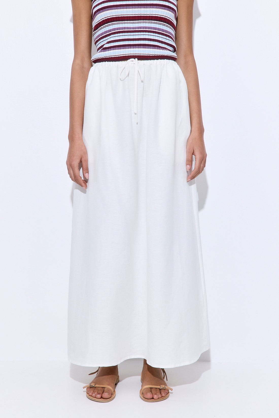 The skirt you’ll reach for all season long. Cut from breathable, lightweight linen with a sleek, straight silhouette that flows with ease. Features a mid-rise fit with an adjustable drawstring waistband for all-day comfort. Clean finish with a minimalist edge. Two front pockets. Style it with our Gathered Neck Linen Camisole for an effortlessly put-together summer set.