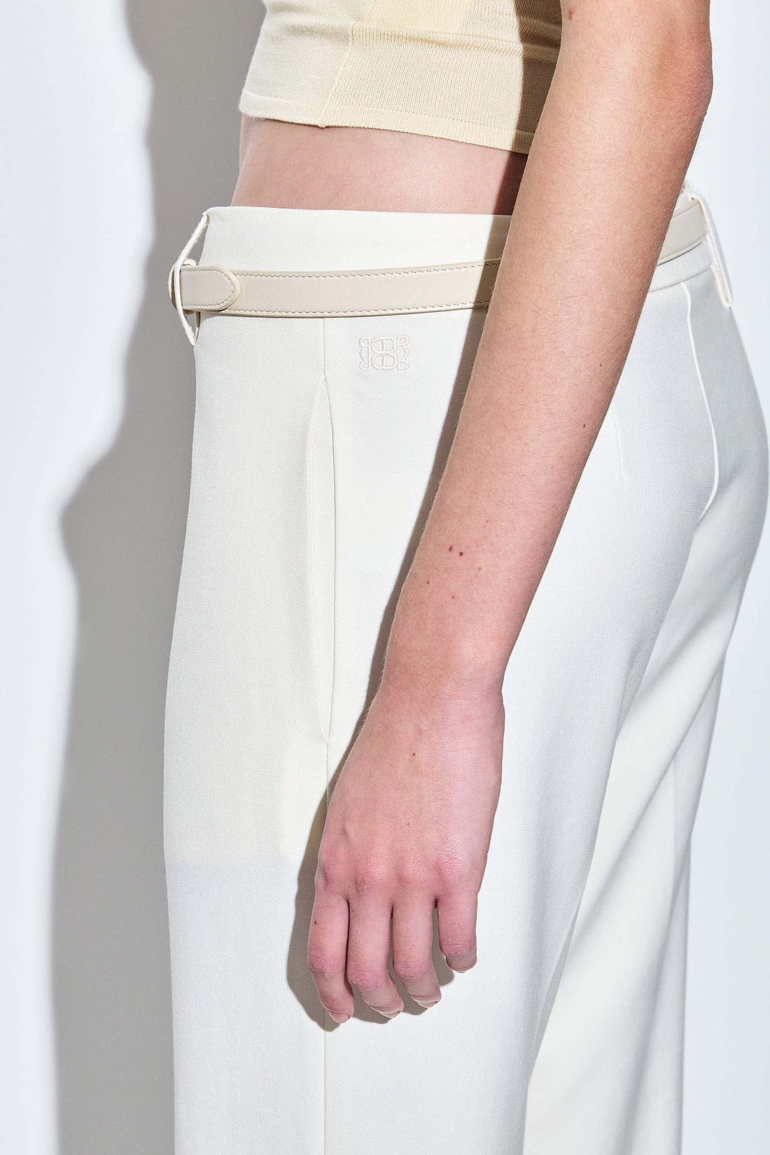 Our new low rise daddy pants are a true must have this season. low waisted. Straight fit. Front zipper and metal hook closure. Unlined. Belt loops. Full length. Tonal embroidered logo on the back. Style it with our tailored daddy vest and throw our tailored daddy blazer on top for a classy and chic look.