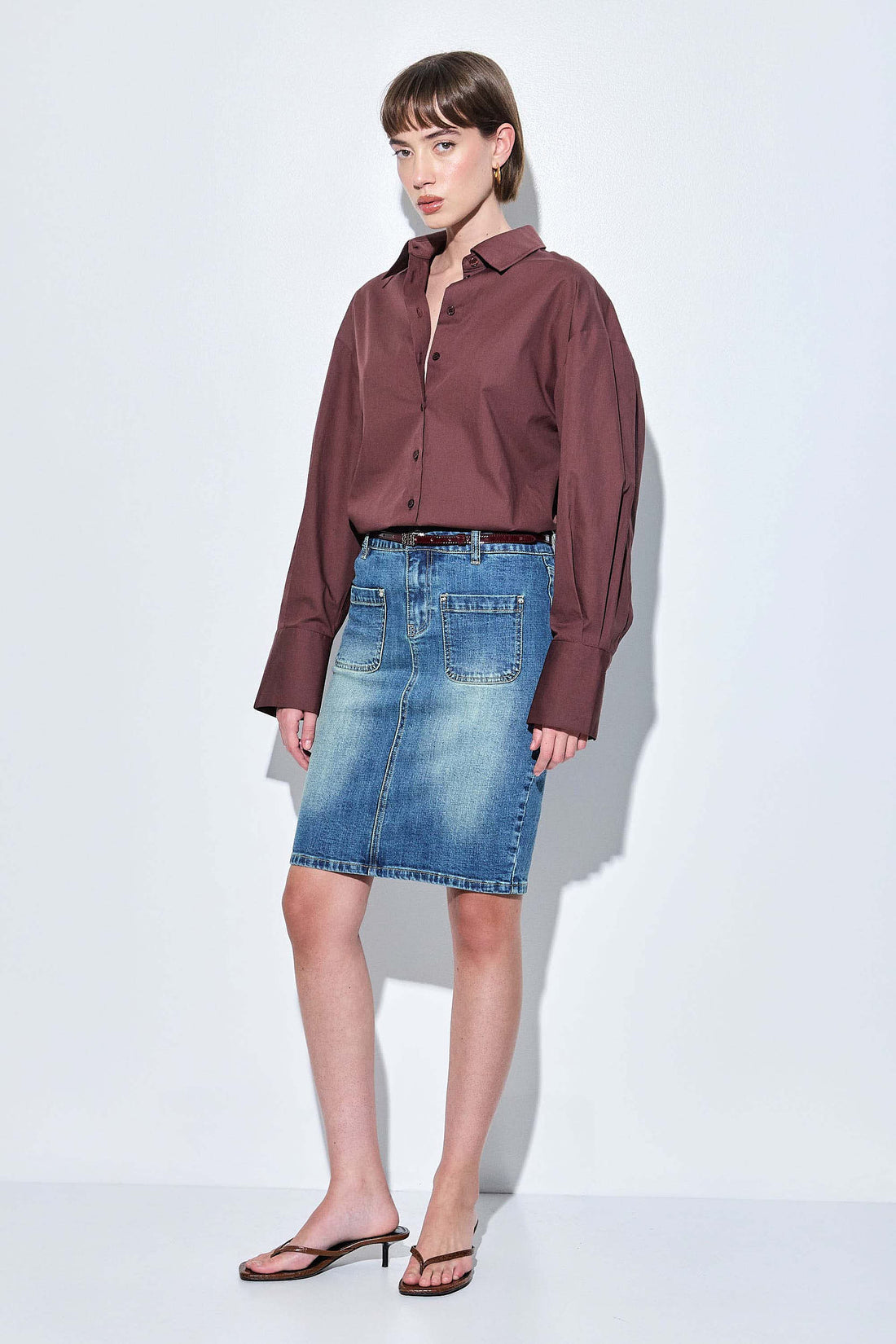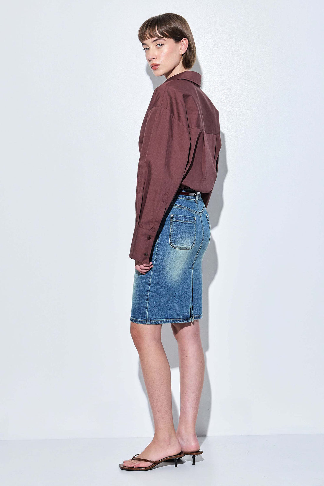 Poplin is this season's most fashionable fabric. A classic oversized button down is an absolute wardrobe essential. Long sleeved button down. Drop down shoulders. Delicate balloon sleeves. Crispy poplin fabric. Buttoned frontal closure. Engraved logo detailing on the buttons. Back yoke. Two back pleats offering extra volume. Pleat detailing at the sleeve for extra volume. Wide cuff featuring two buttons. Style it with a matching poplin bottom of your choosing for an easily fashionable everyday look.