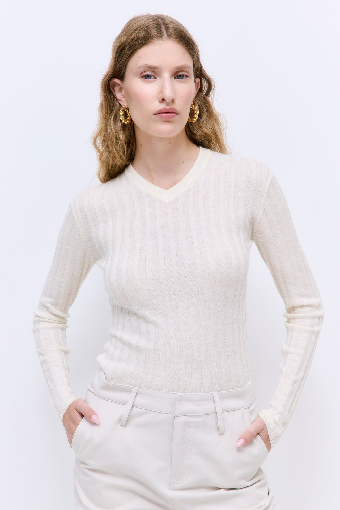 Soft Ribbed V Neck