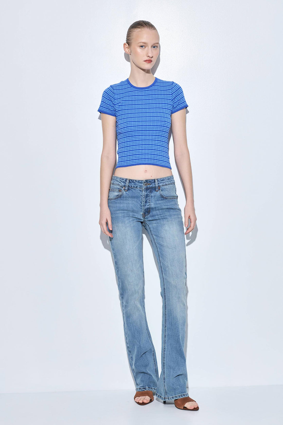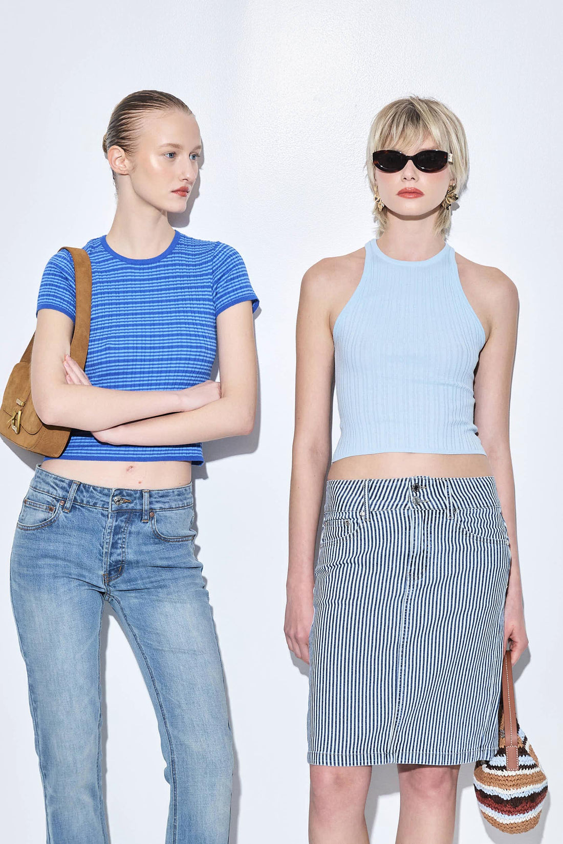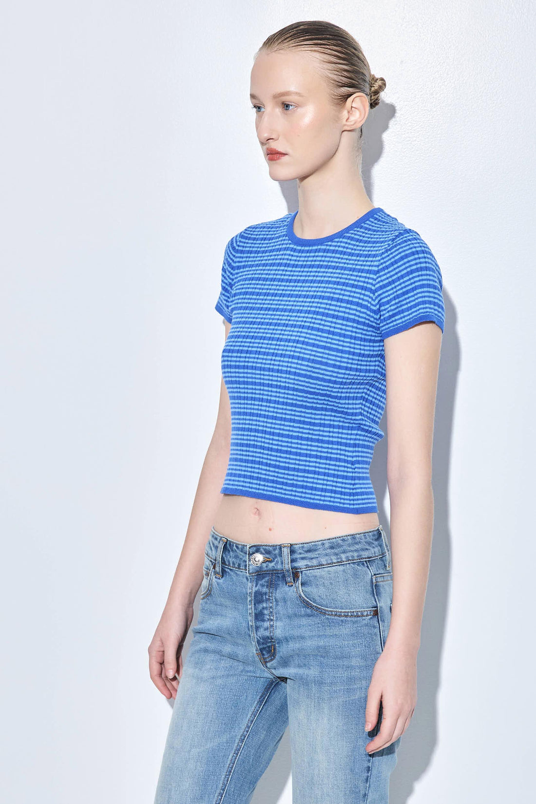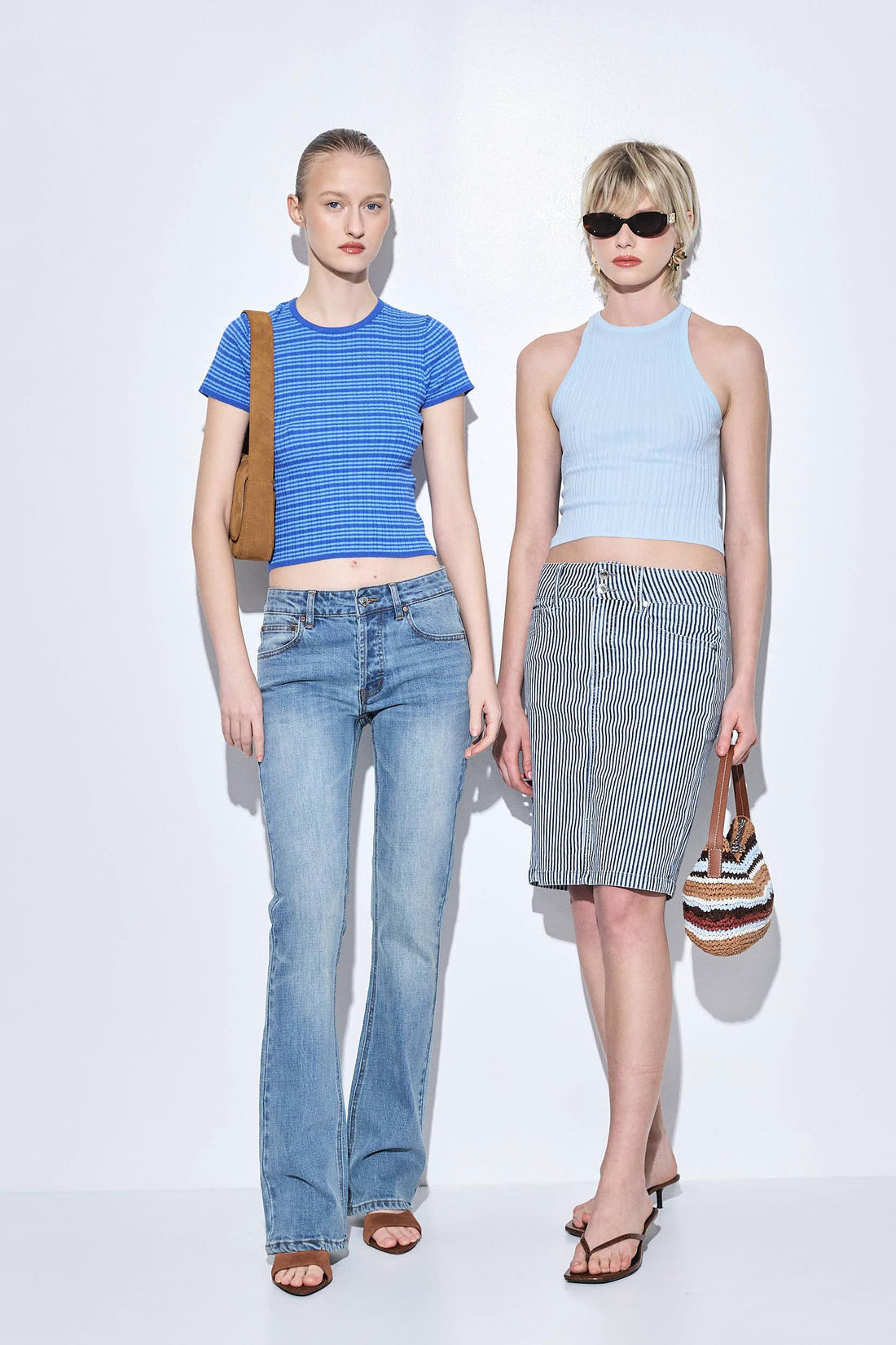 Our ribbed crew neck T is a true summer wardrobe essential. Ribbed crewneck collar. Contrast ribbed finish. Featuring a tonal silicone logo patch detailing at the upper back. Style it with our linen maxi skirt, a pair of our beautiful sunnies and our cool scrunchie to seal this gorgeous look.