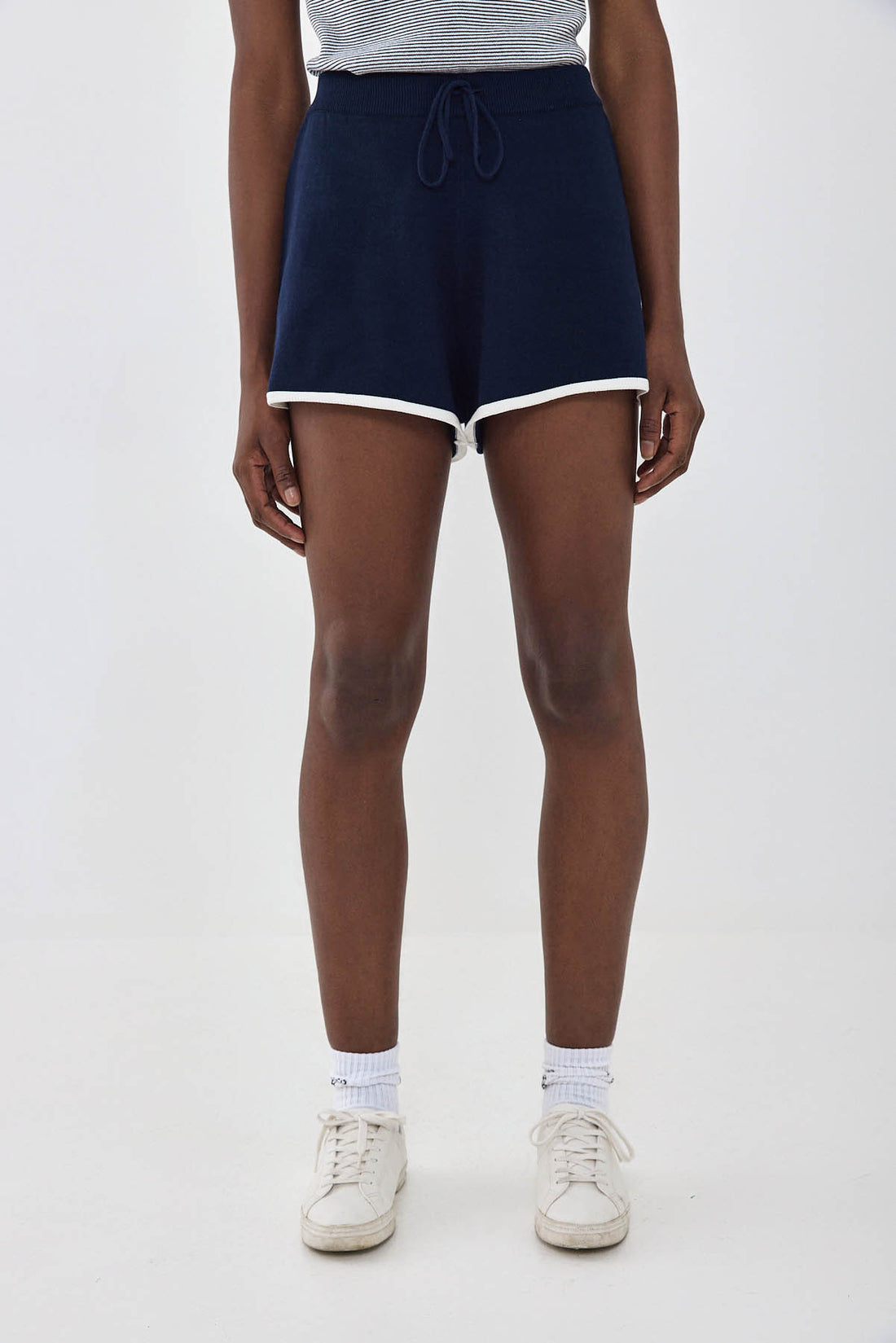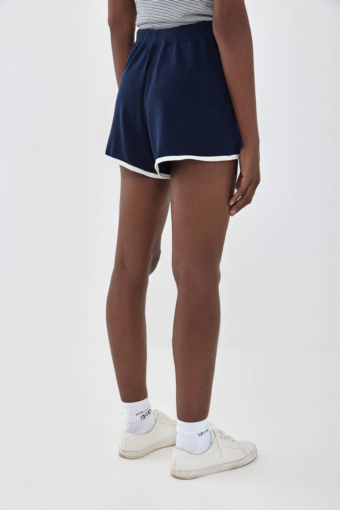 Inspired by the one and only, fashion icon princess Diana. The most stylish and comfy shorts you'll own. Kitted shorts. Elastic ribbed waistband with a drawstring closure. Contrast white stripe ribbed finish. Style it with your favorite matching knit top for a stunning everyday look.