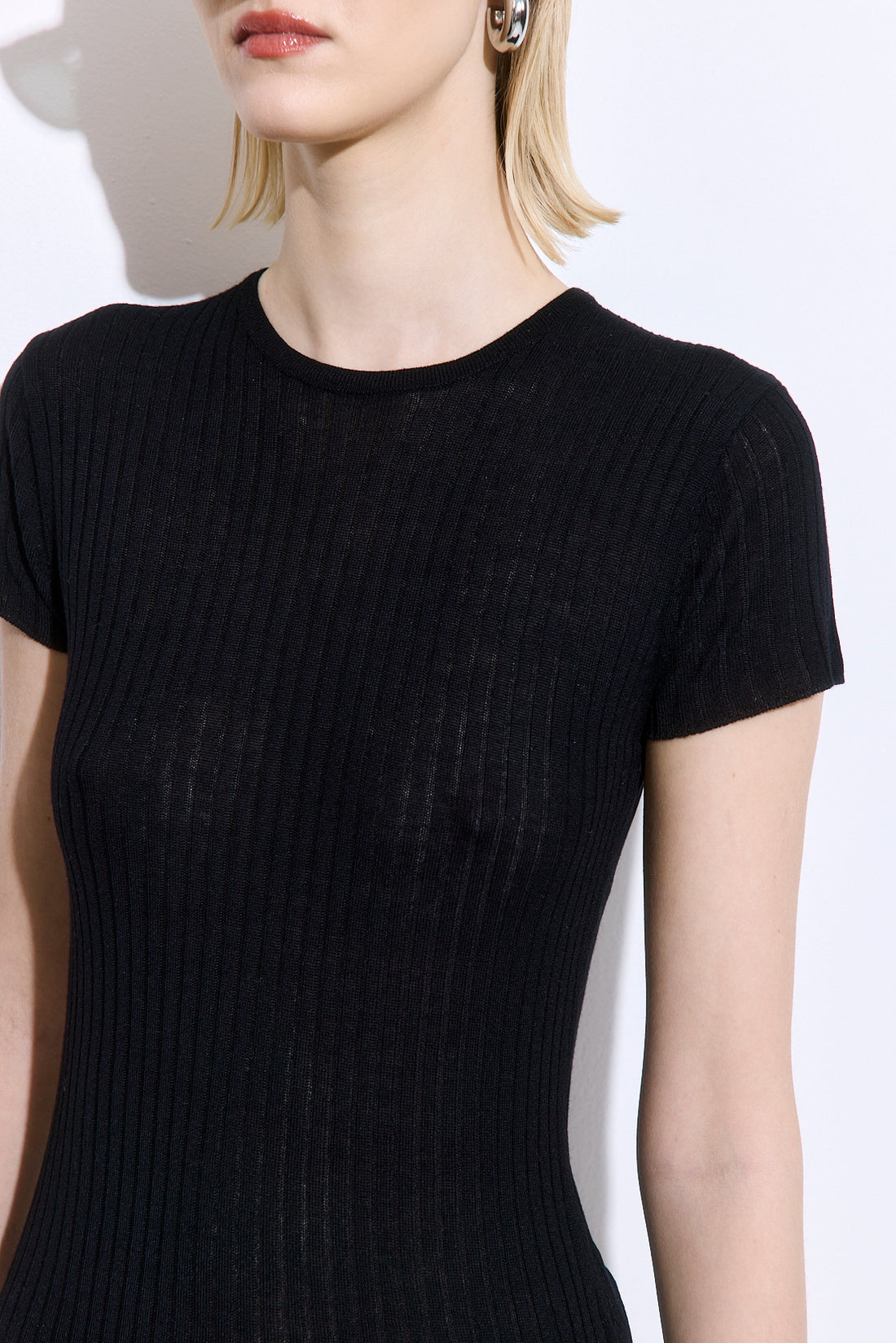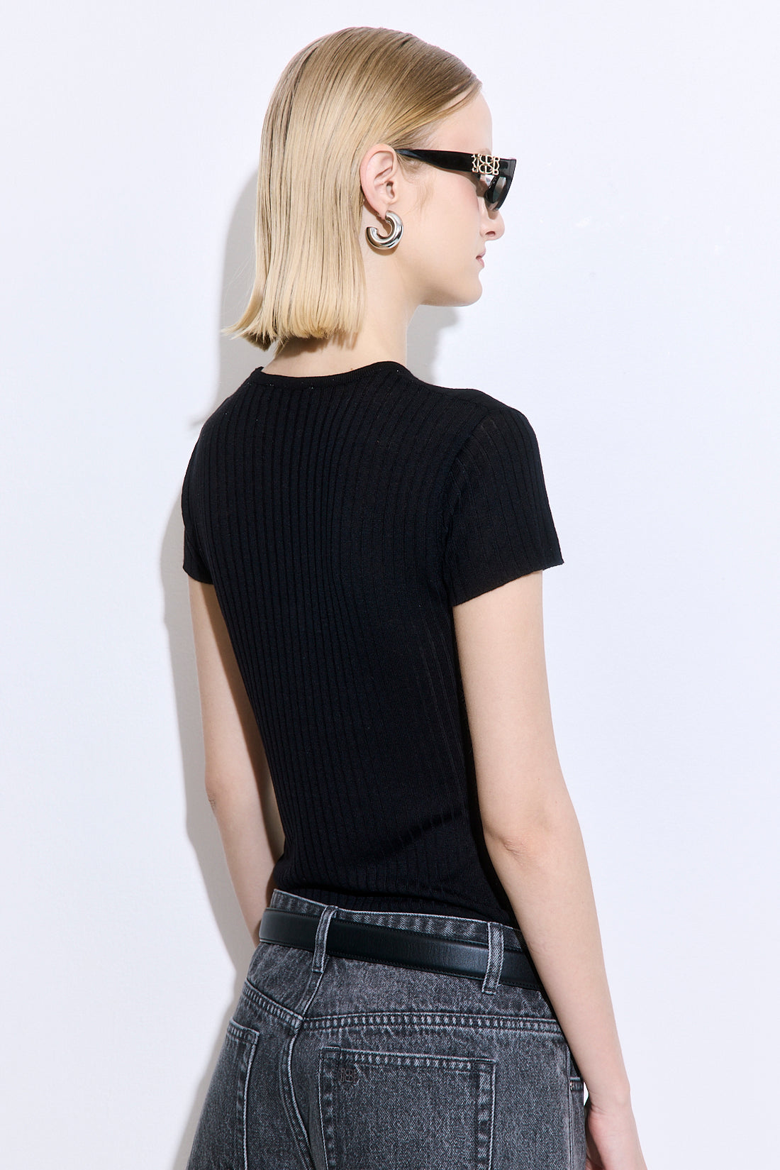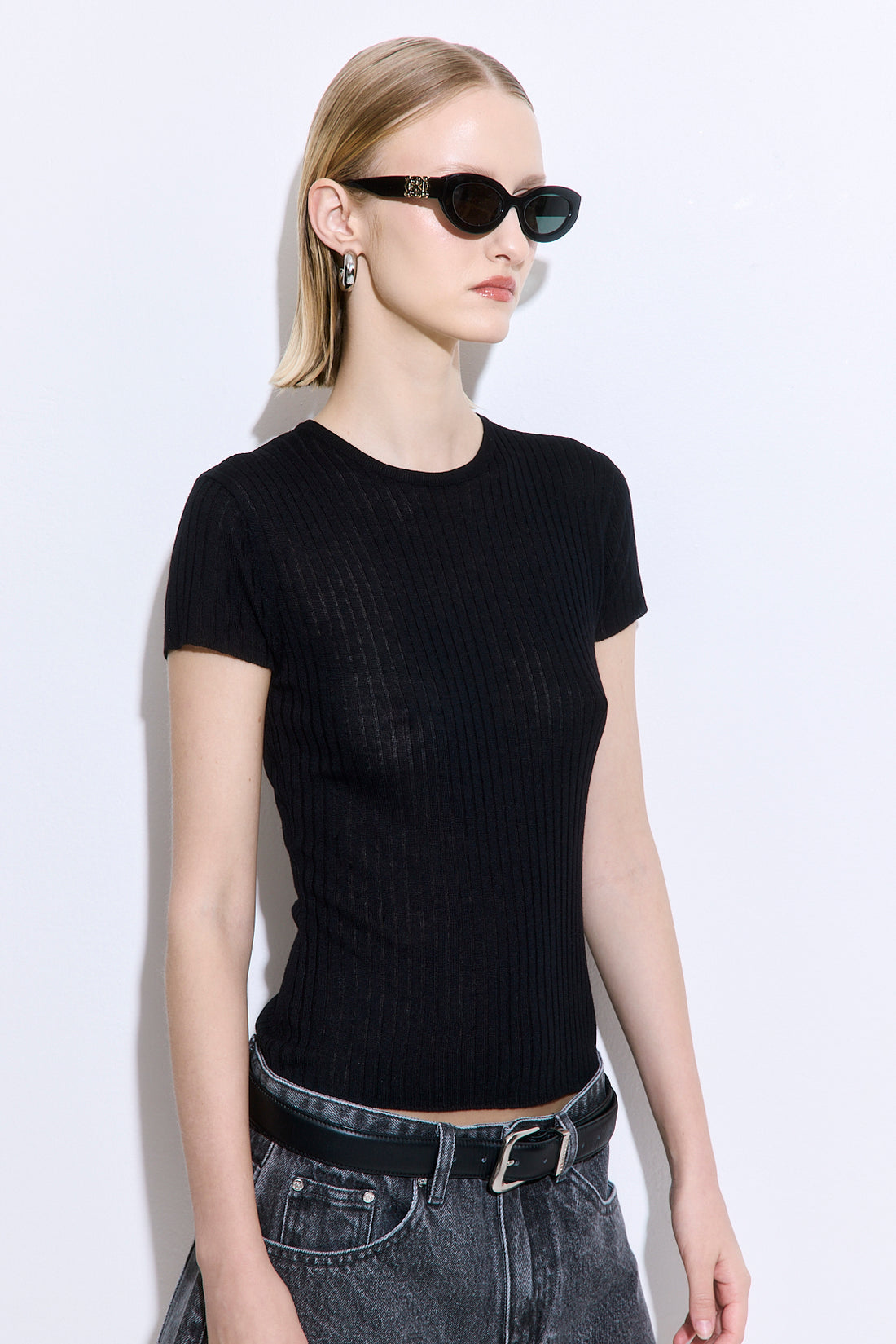 Prepare to fall in love with our new sheer ribbed logo top. Crew neckline. Delicate ribbed finish. Soft and lightweight ribbed fabric. Slightly sheer. Short sleeved. Style it with our full length linen pants, our beautiful oval sunnies and seal this look with our signature Rodika tote bag for the perfect summer look.