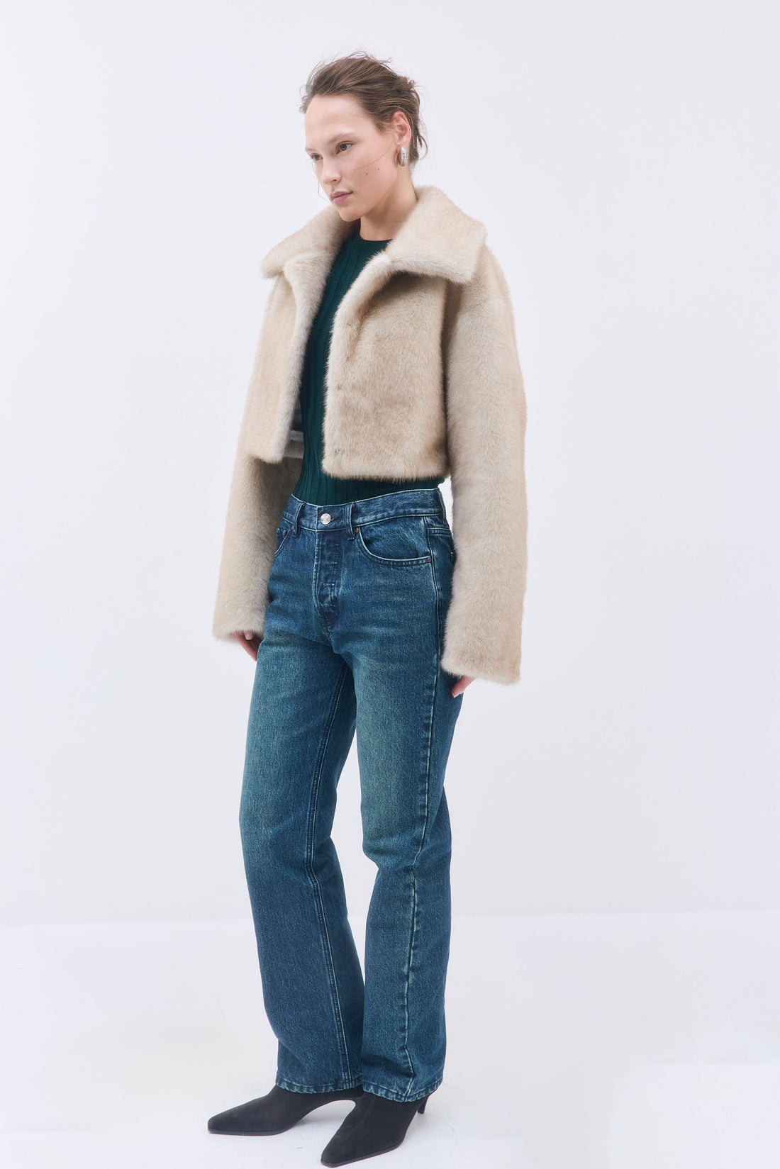 Released as part of our limited edition winter collection; A luxurious statement coat, made to defy seasonality. Luscious faux fur jacket in a cropped silhouette. Fully lined for ultimate comfort. Detailed with a discreet hook closure. Style it with our iconic No.17 Mid Rise Bootcut Denim and our timeless Merino Wool Crewneck for an elevated winter's day look.