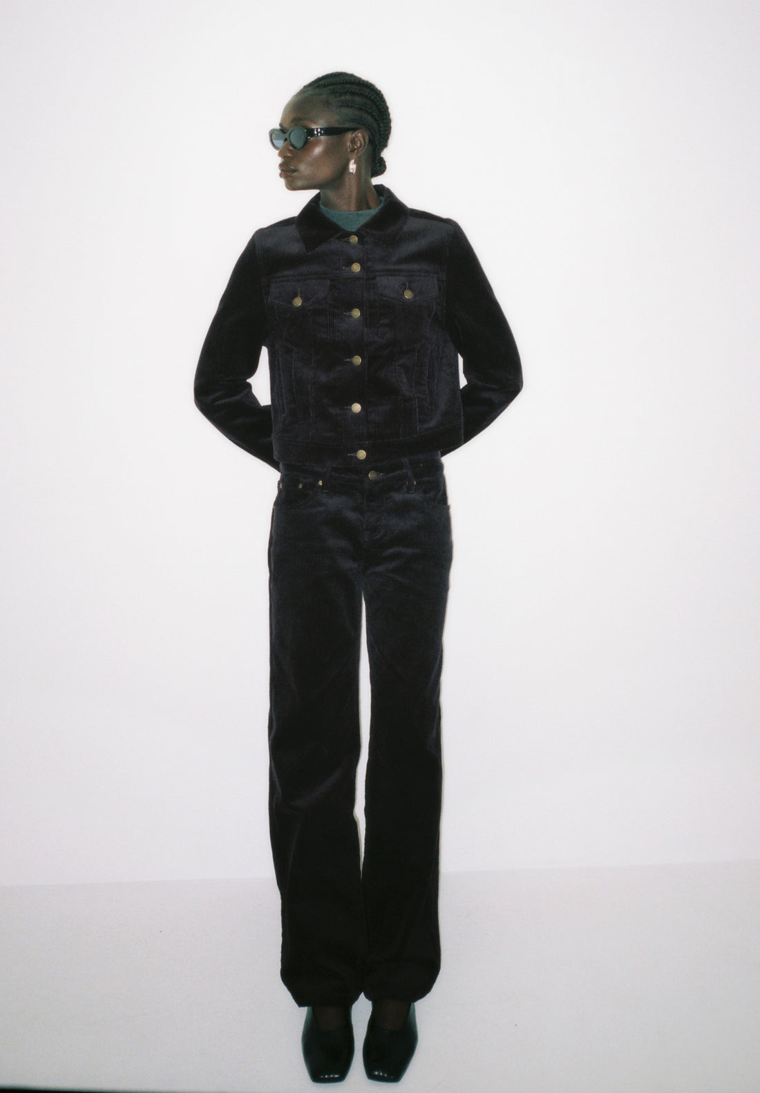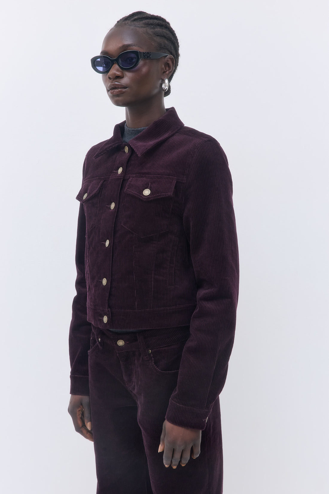 Released as part of our limited edition winter collection; Classic shape, rich corduroy, and a bold twist. Fitted corduroy with classic, denim-inspired detailing. Straight fit. Fully lined. Designed with two faux front pockets. Back yoke. Detailed with an external, contrasting camel leather logo patch and brass buttons. Style it with it's matching Mid Waist Corduroy Pants and out timeless Classic Long Sleeved T Shirt for a chic, monochromatic look.