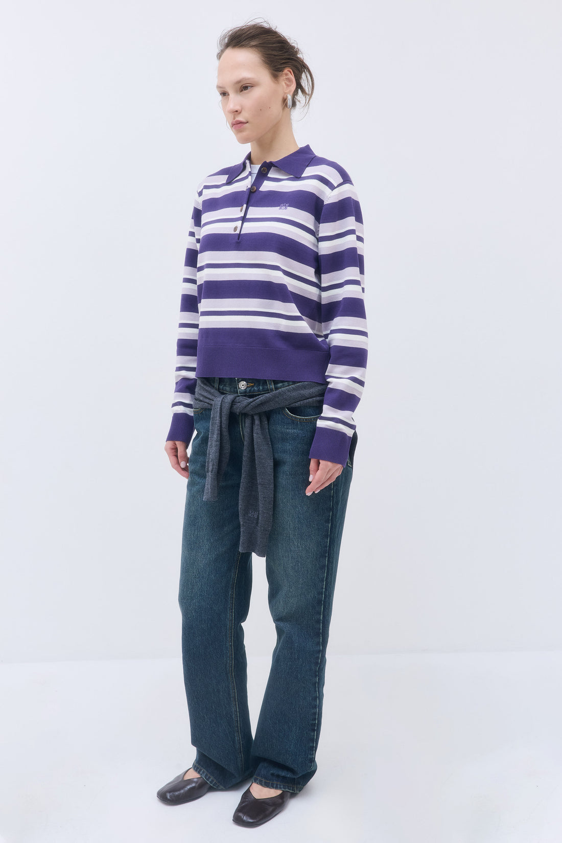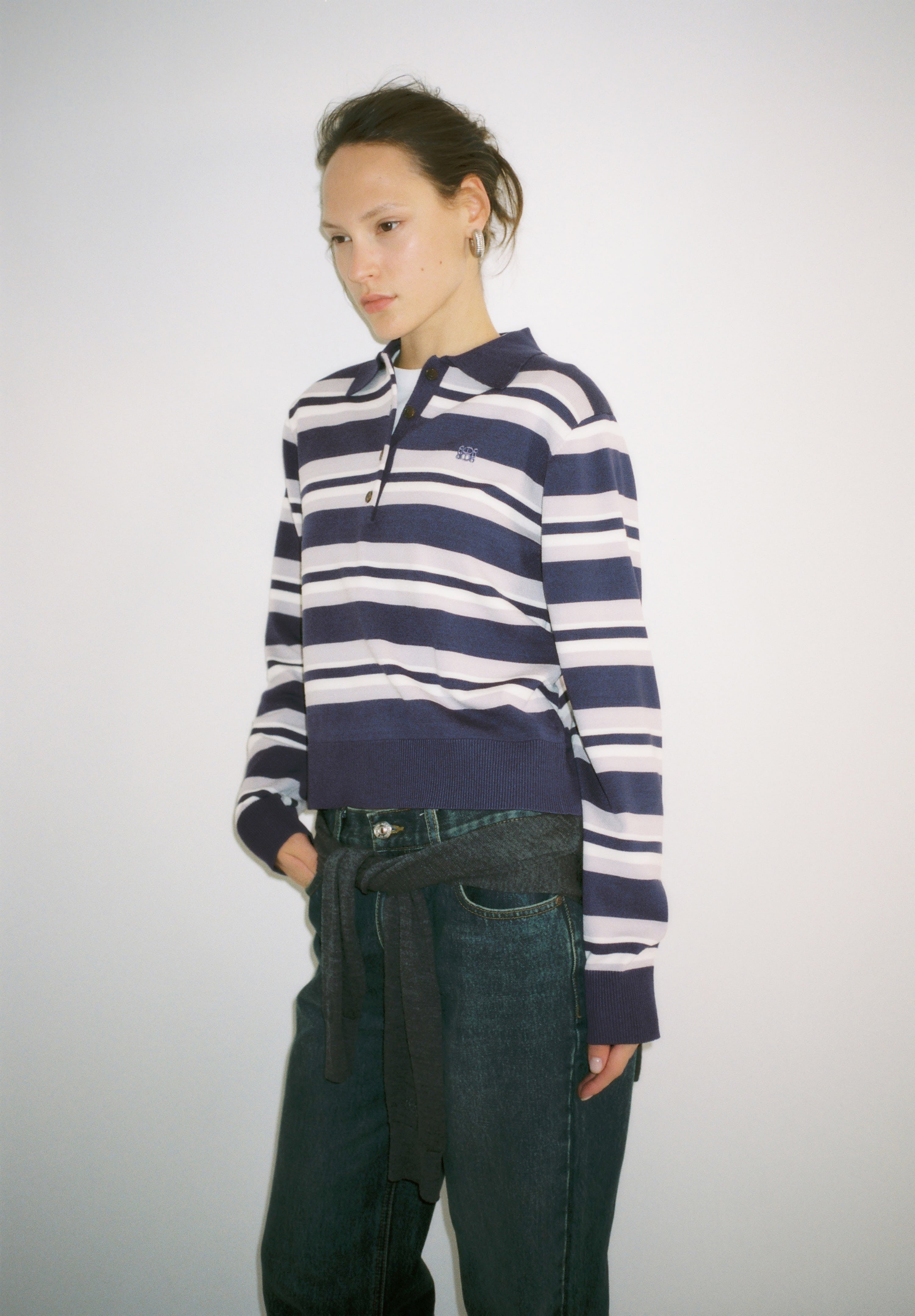 Released as part of our limited edition winter collection; The newest addition to our timeless fully fashioned knitwear. Our new striped polo shirt is a must have this fall. Long sleeved. Four branded buttoned frontal closure. Ribbed finish. Delicate embroidered logo on the front. Classic collar. Style it with our iconic No. 15 Denim and stylish Cateye sunglasses for the ultimate summer to fall look.