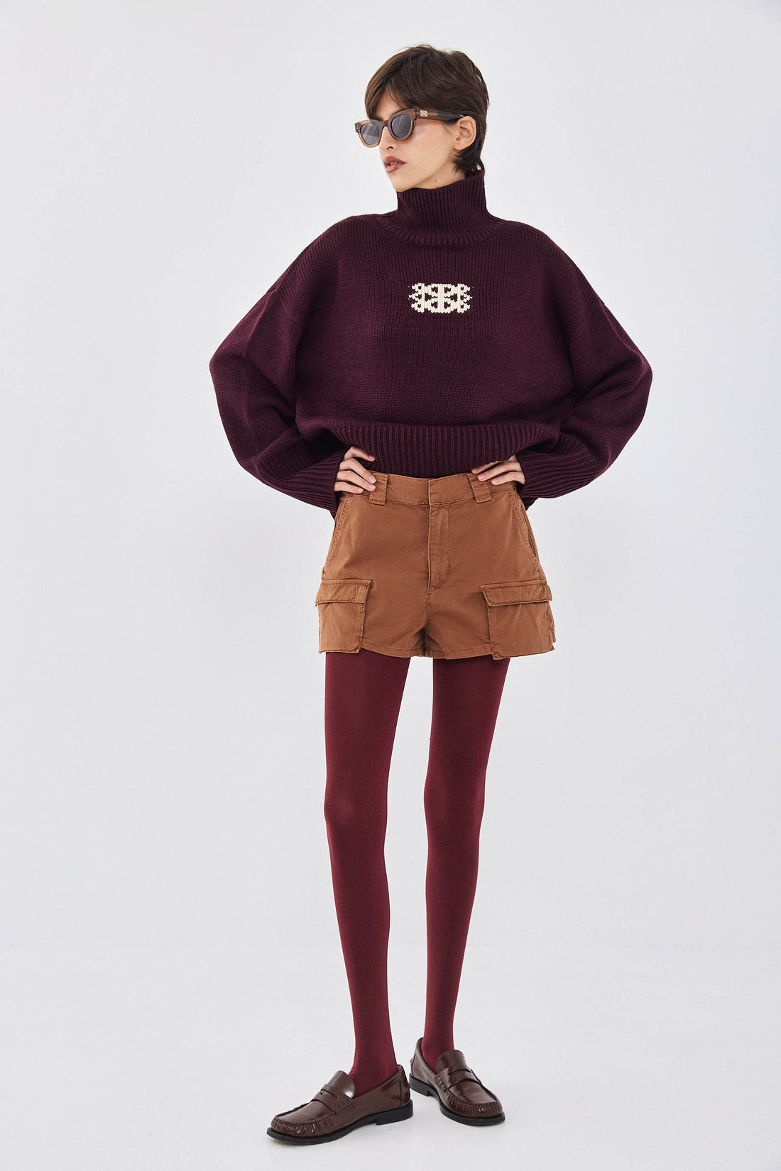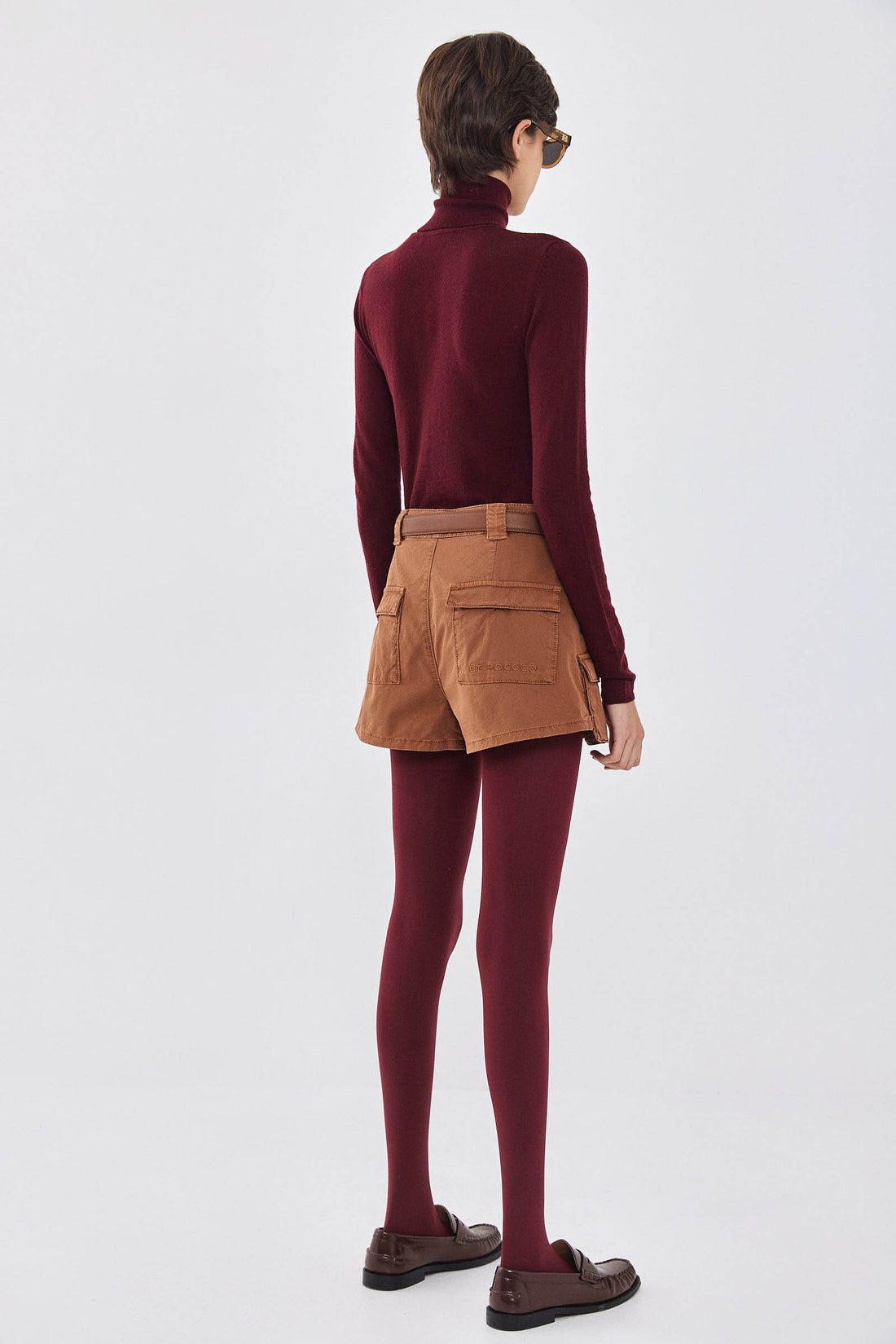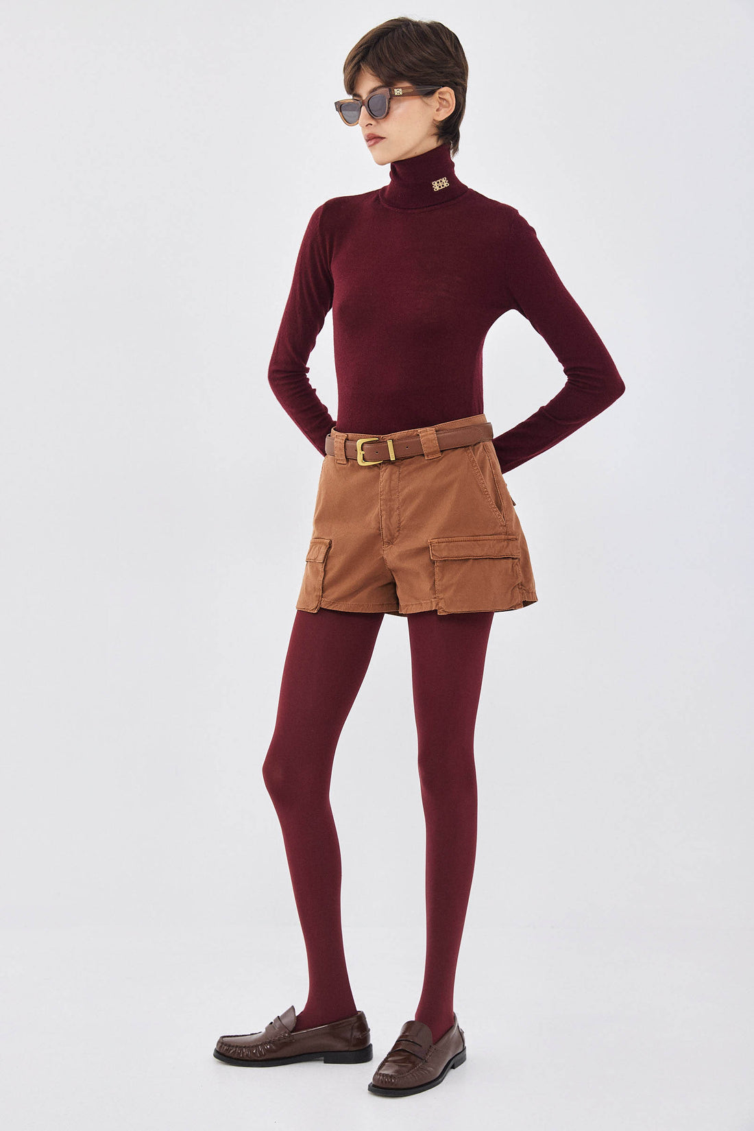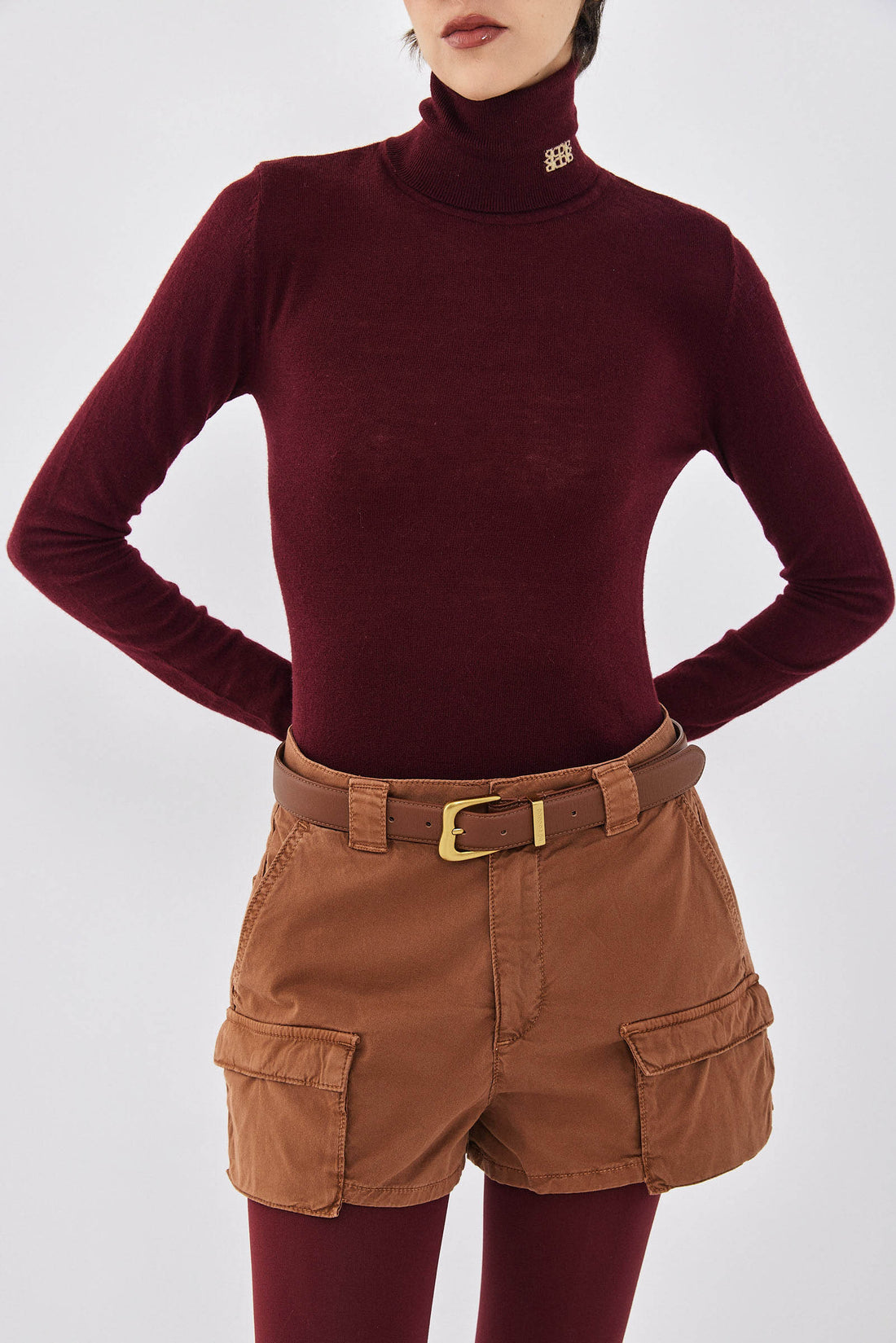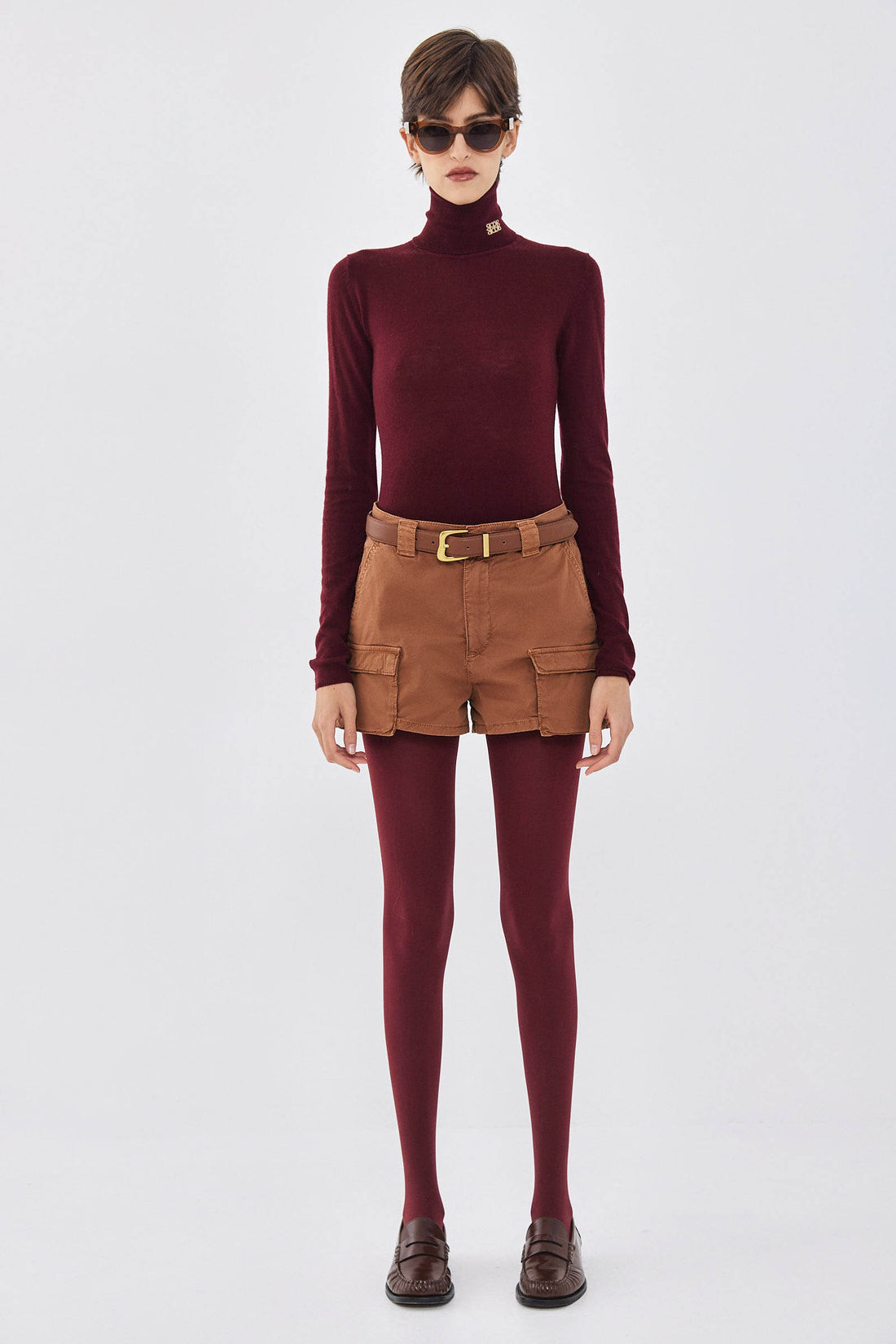 Our new cargo shorts are the ultimate essential this season. Designed with a crisp yet elastic cotton washed fabric, these shorts are just perfect for day to night look. Mid waist. Wide belt loops. Unlined. Front zipper and metal hook closure. Two oversized pockets on the side. Tonal embroidered logo on the back pocket. Style it with our heavy cotton T-shirt, a pair of our ginger brown cat eye sunnies and throw our double-breasted trench on top to seal this gorgeous look.