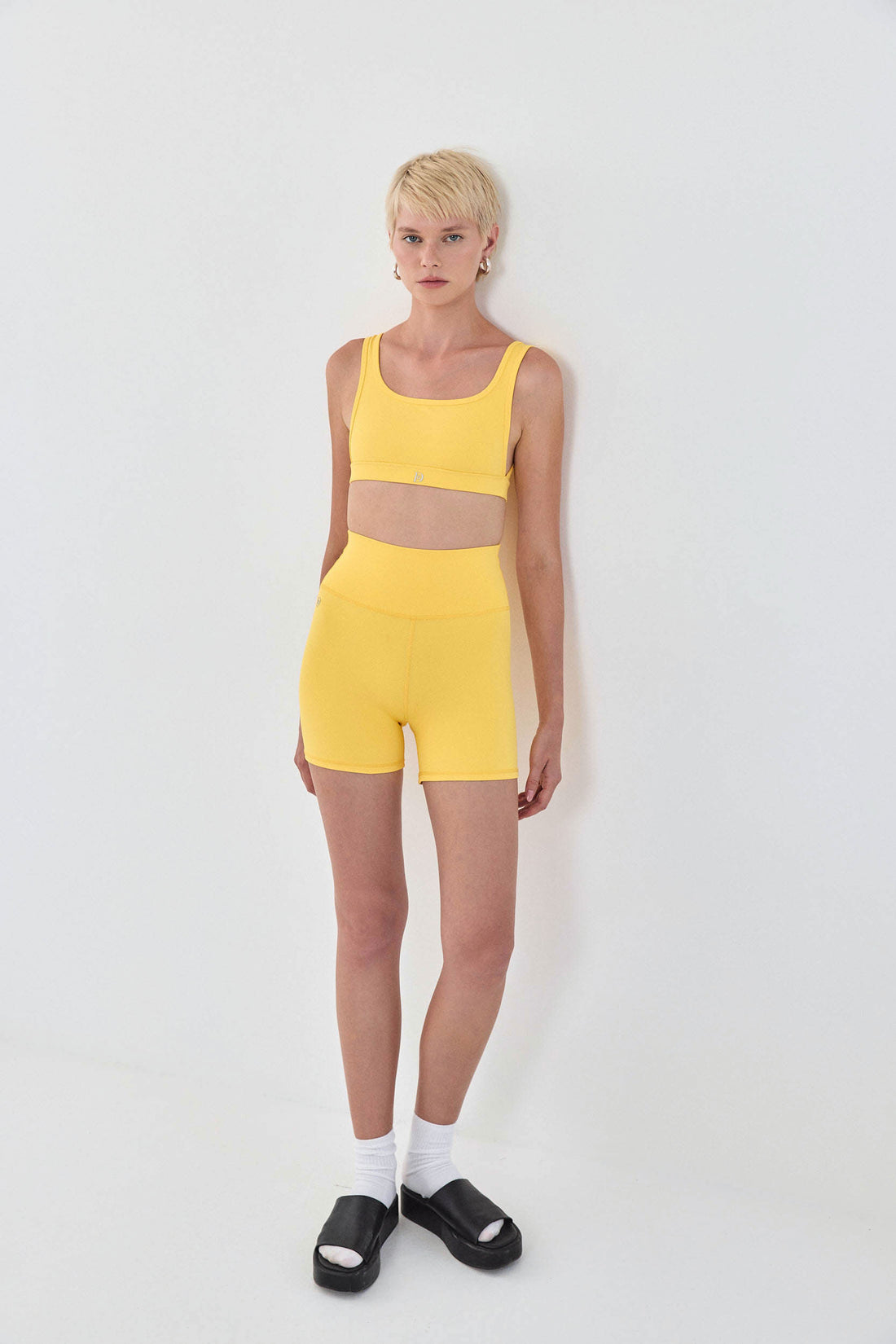 Dé open sides bra has a second-skin fit and feel, made from a stretchy supportive fabric. Features dip openings at the sides. Delicate square neckline front and back. Deep Flat lock stitches and an under bust waistband for support. Reflector logo on the front and a fitnéss club signature at the back. Complete the set with one of our matching color fitnéss club bottom.