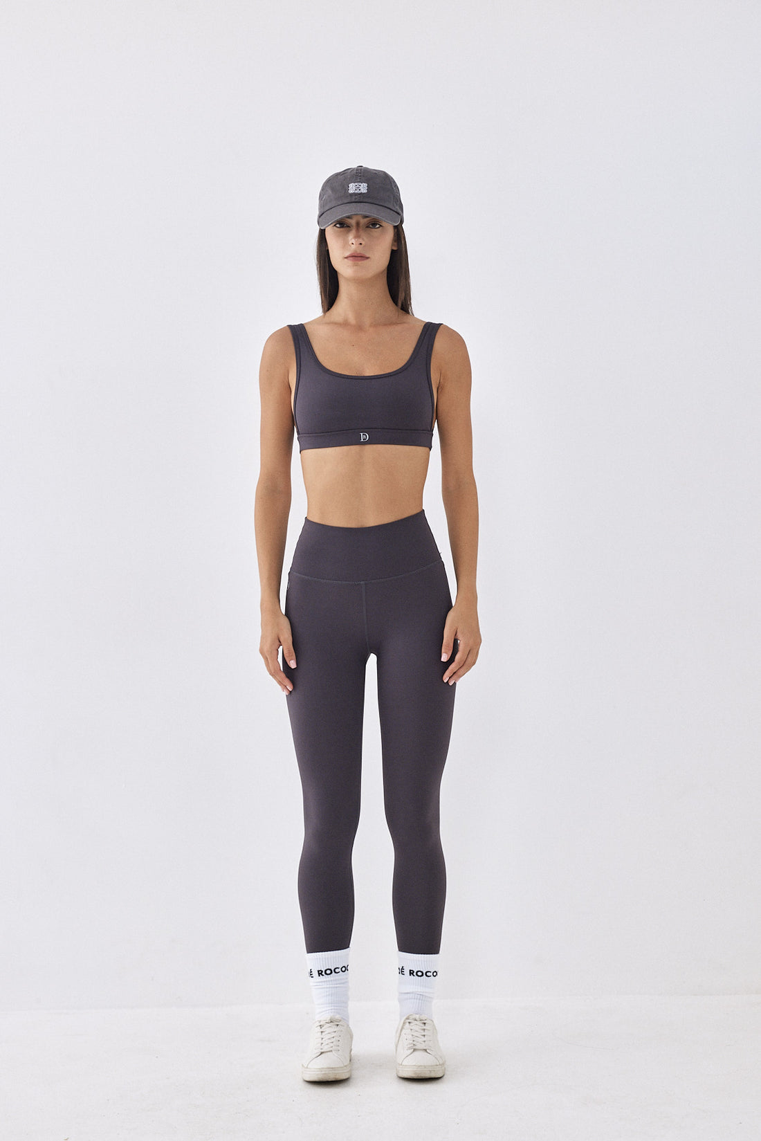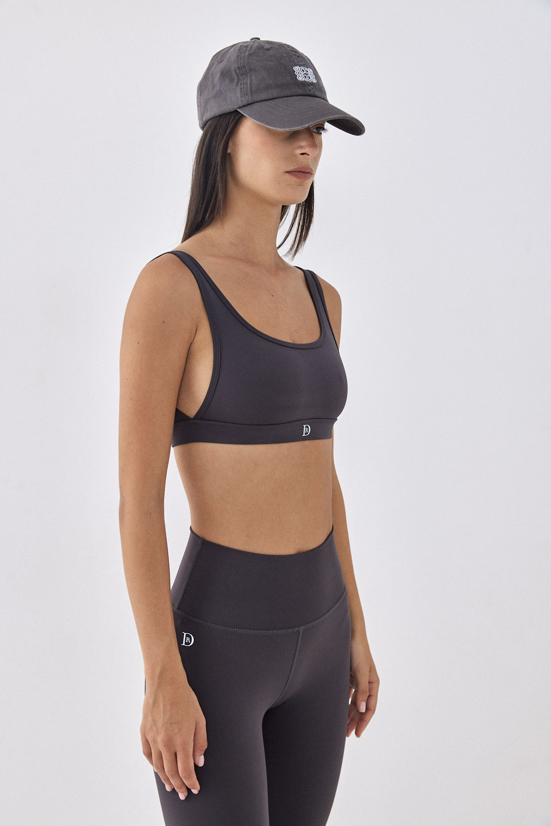 Dé open side bra has a second-skin fit and feel, made from a stretchy supportive fabric. Features dip openings at the sides. Delicate square neckline front and back. Deep Flat lock stitches and an under bust waistband for support. Reflector logo on the front and a fitnéss club signature at the back. Complete the set with one of our matching color fitnéss club bottom.