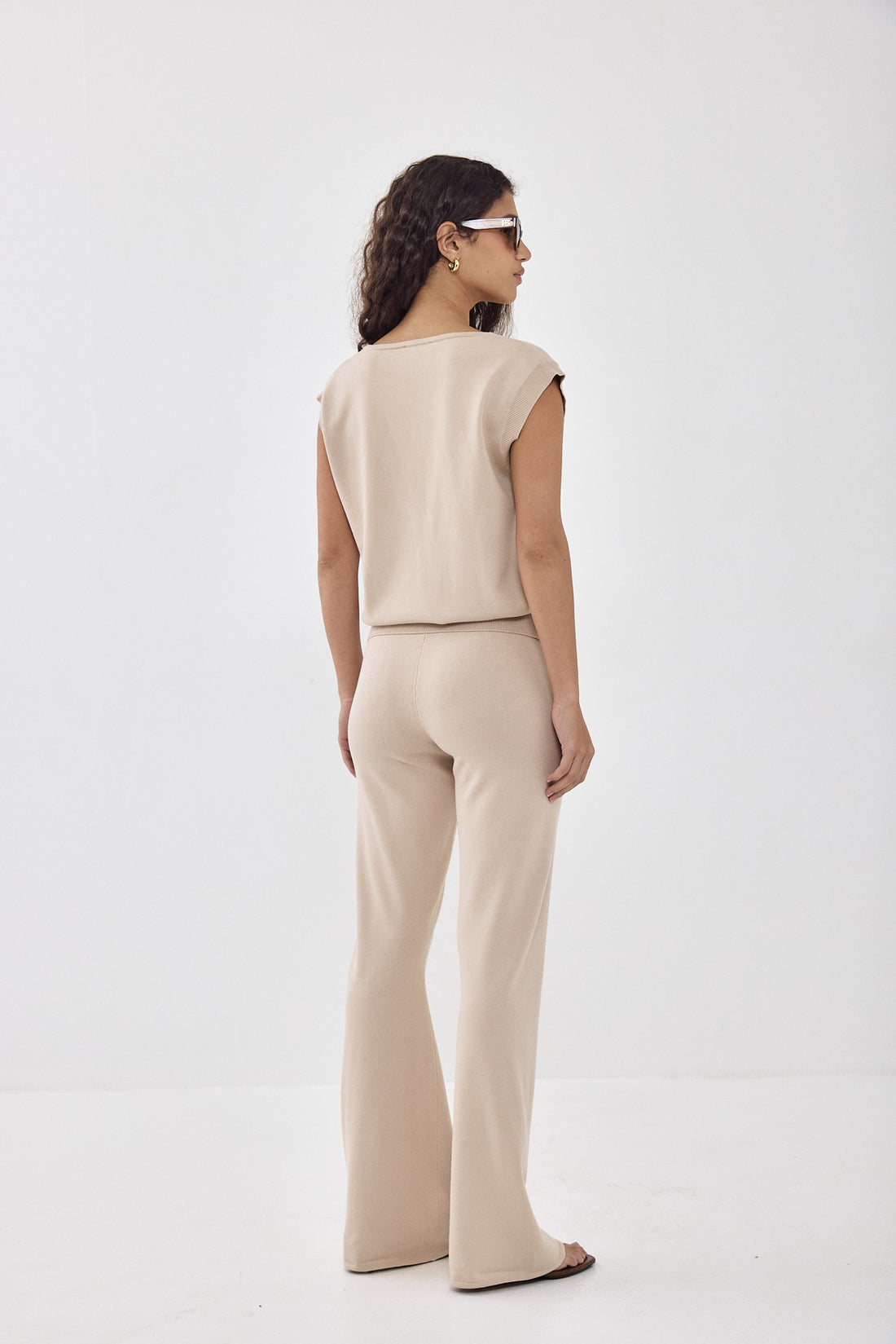 The perfect knit vest for spring. V neck silhouette. Ribbed finish with a slight cuff at the end. Embroidery logo detailing. Featuring a button closure. Delicate logo engraving on the buttons. Style it with your favorite matching bottom, delicate gold accessories and our Golden Aviator sunnies for a breezy and feminine spring look.