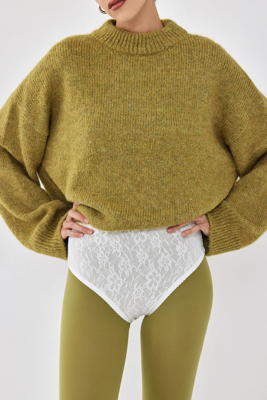 High waisted lace skirt. Thin elastic at the waistline. Flower lace. Stretchy fabric which hugs the body. Slight mermaid shape at the bottom. Full length. Style it with lace lingerie underneath, the matching lace long sleeved to, our wide buckle belt and vegan leather bomber on top to tie the look together.