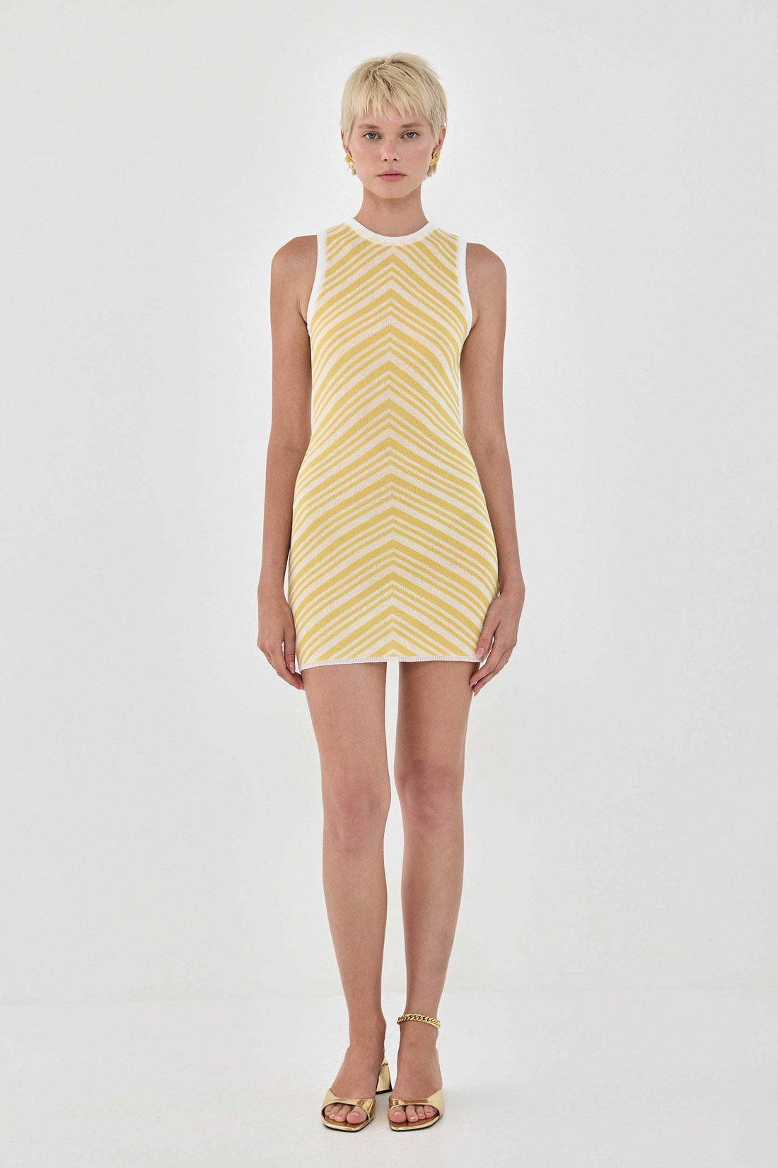 Manifesting a French Riviera summer. The ultimate summer knit mini dress. Contrast finish. Open back. Body hugging material, ultra flattering. Style it with your favorite kitten heels and large golden earrings for an effortlessly stylish summer look.