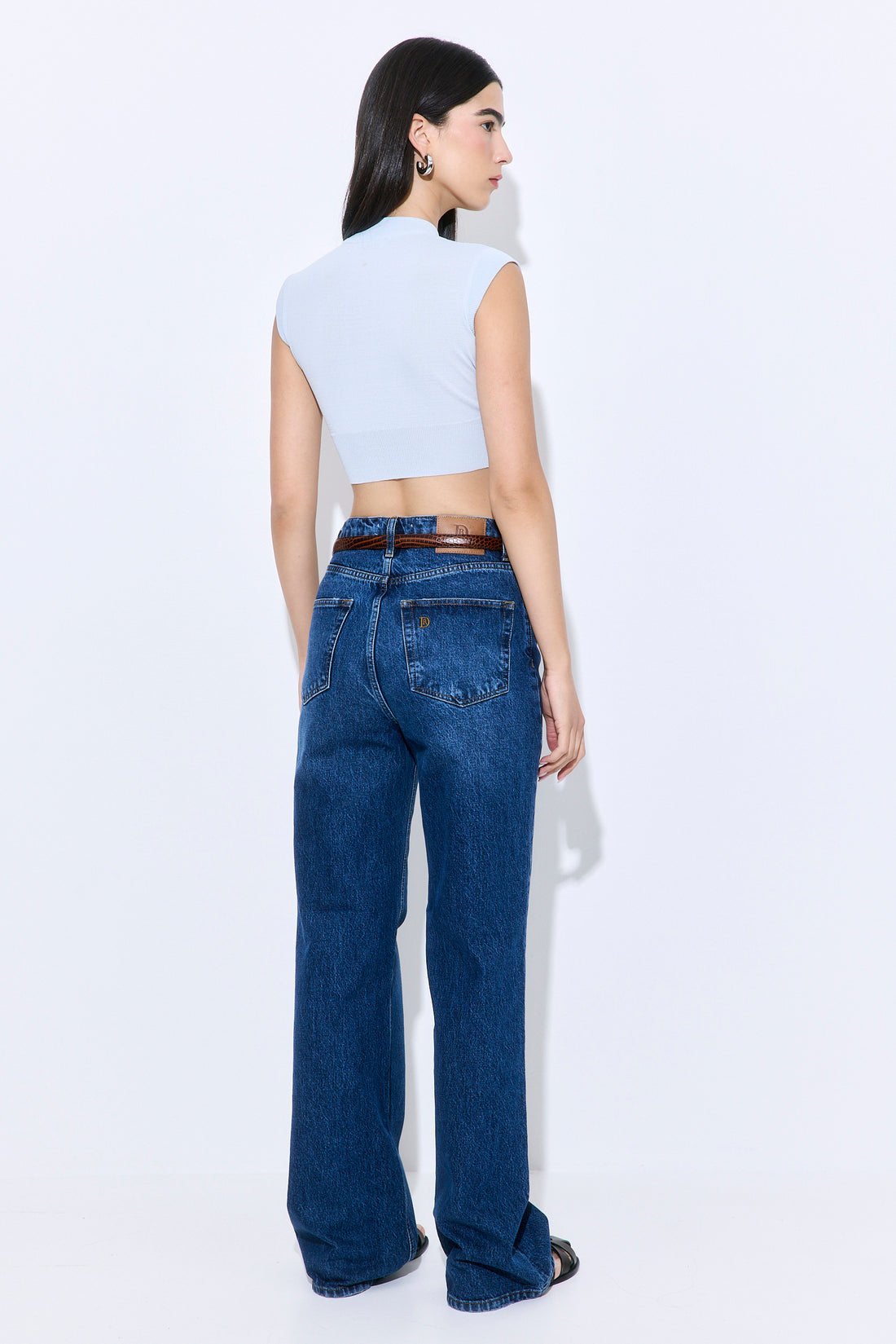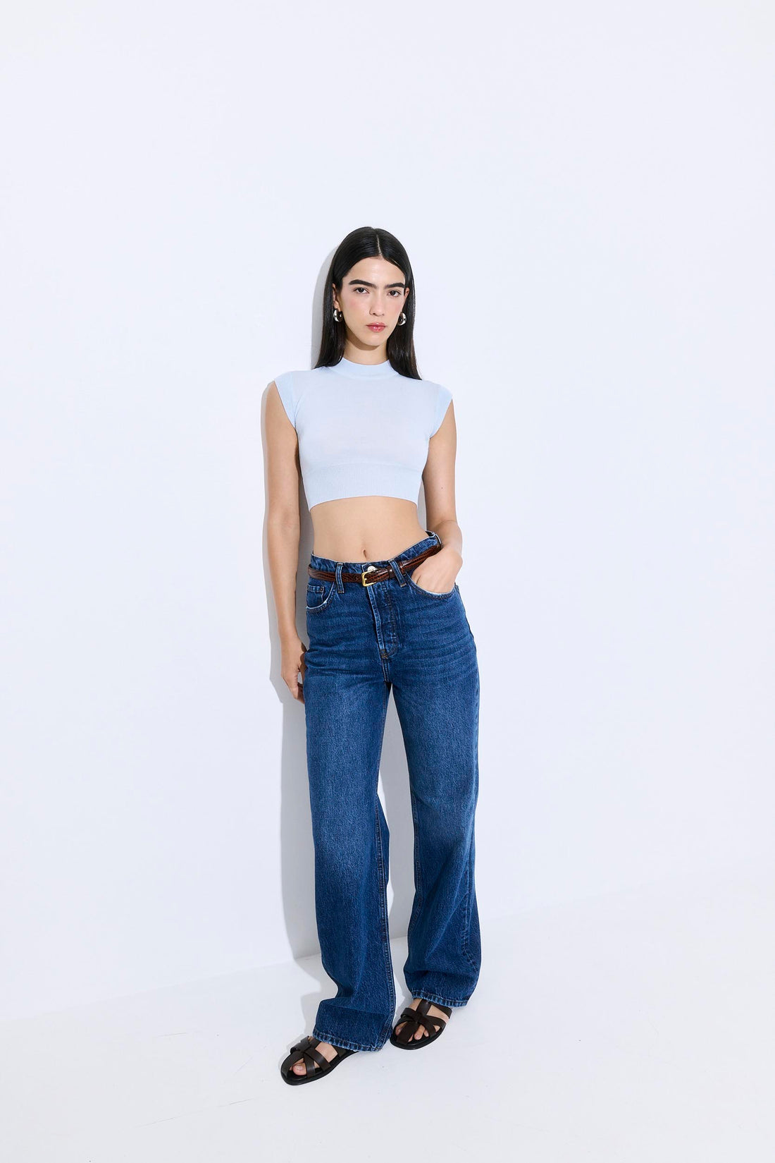 Our new cropped sleeveless knit is a true upgrader. Cropped silhoutte. Wide ribbed crew neckline. Fitted ribbed hem. Sleeveless. Semi sheer finish. Style it with our wide leg cotton pants , our classy oval sunglasses and our unique Rodika for the perfect day to night look.