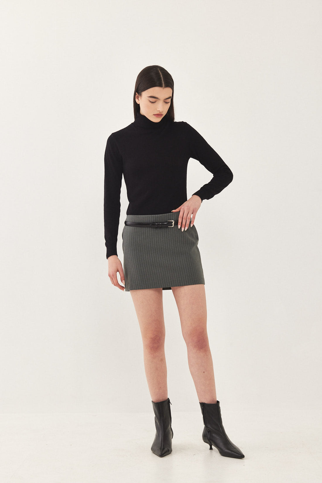 A line cut mini skirt from our signature daddy collection. Featuring a delicate zipper closing on the back. Style it with your favorite top and a pair of kitten heels for the perfect going out look.