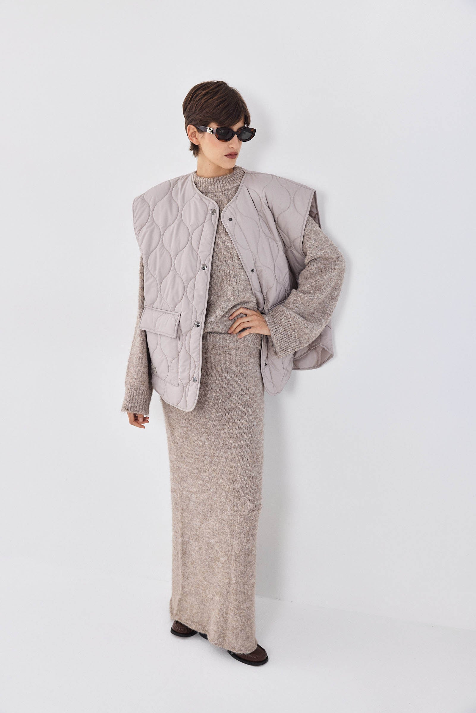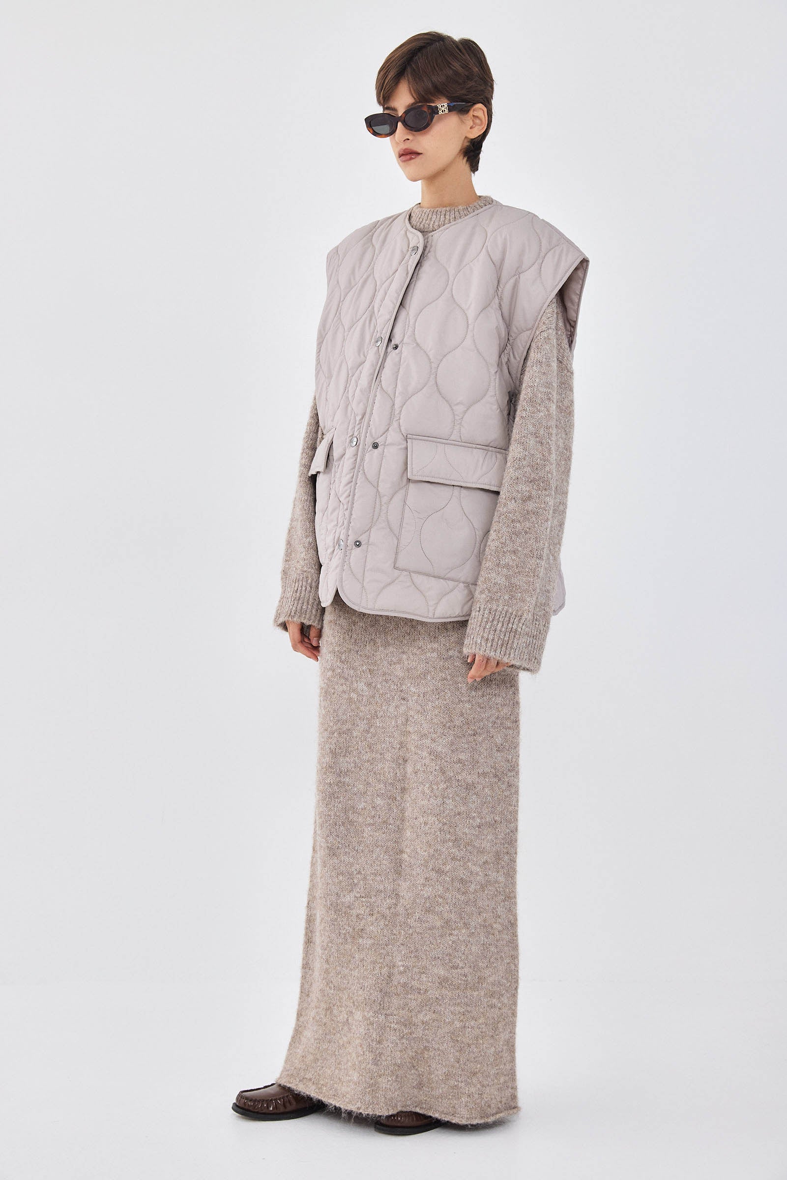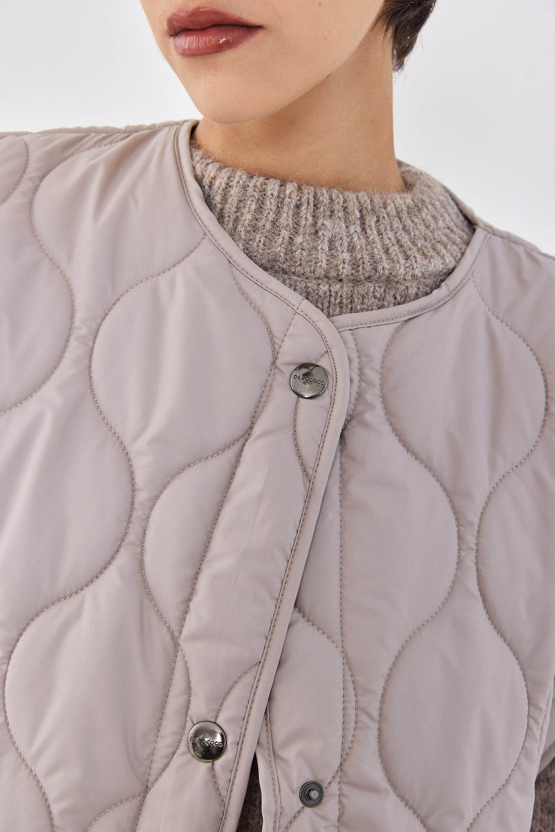 An ultra-chic addition to your winter wardrobe. Quilted lightweight vest. Onion quilt pattern. Unlined. Features a snap button closure. Two front pockets with a snap button closure. Style it over your favorite tracksuit set, add a pair of sunnies and hoop earrings for the coolest look.
