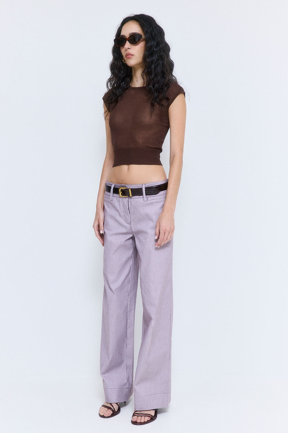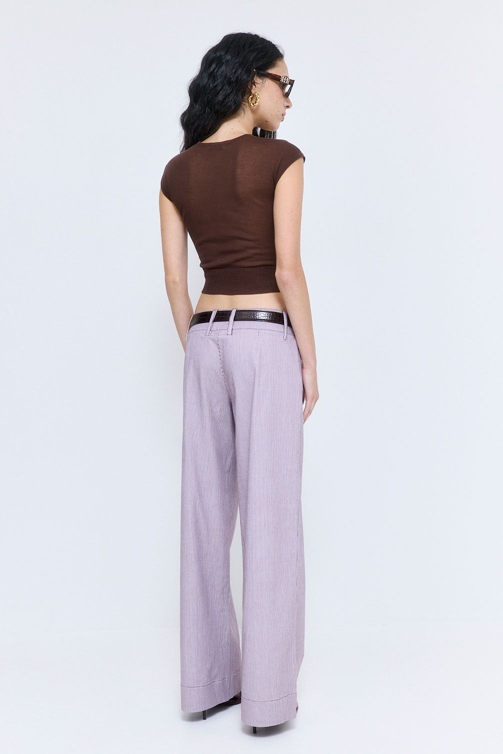 Our Striped Drill Pants are your new go-to for an effortless look. Wide waistband. Internal hook-and-bar closure. Full length. Low waisted. Subtle welt front pockets. Wide leg. Delicate belt loops. Tonal logo embroidery at the side back. Style it with our chic Fitted Wool Cup Tee and sleek Rodika tote for the ultimate relaxed look.
