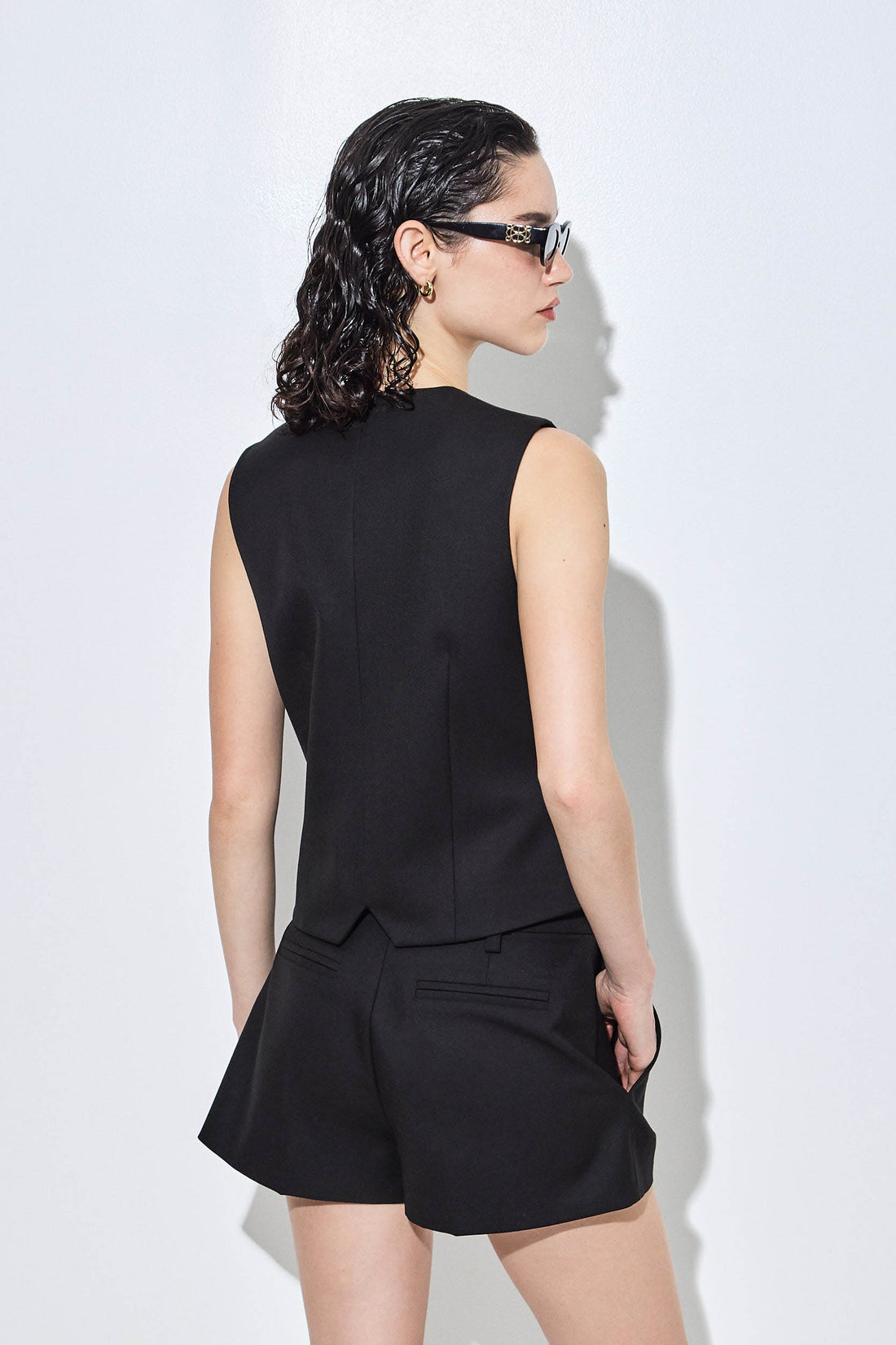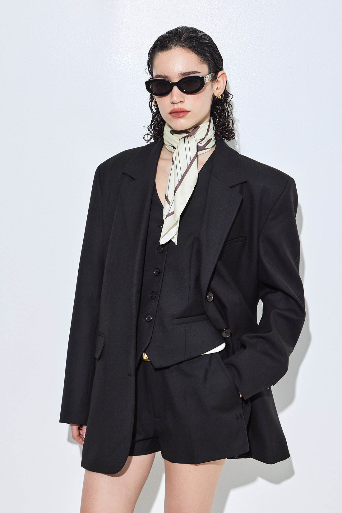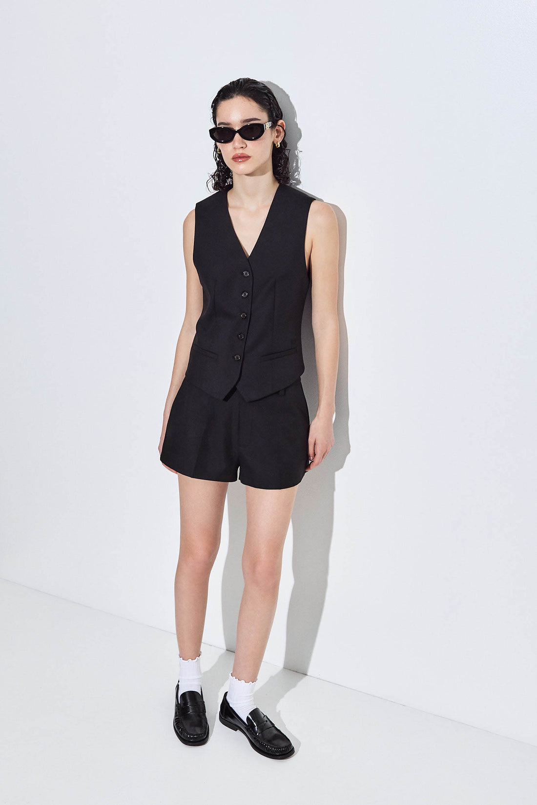 Our new tailored daddy shorts were designed to elevate any outfit this season. In a new luxurious tailored fabric. Mid waist. Belt loops. Unlined. Asymmetric belt closure with inner metal hook, button and zipper. Two side pockets. Two faux back pockets. Tonal embroidered logo on front side. Style it with our heavy cotton T-shirt, a pair of oval sunnies and throw our oversized daddy blazer on top to seal this gorgeous look.