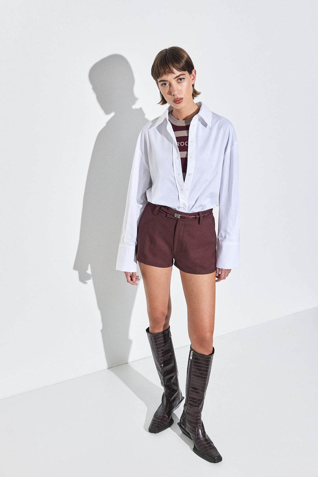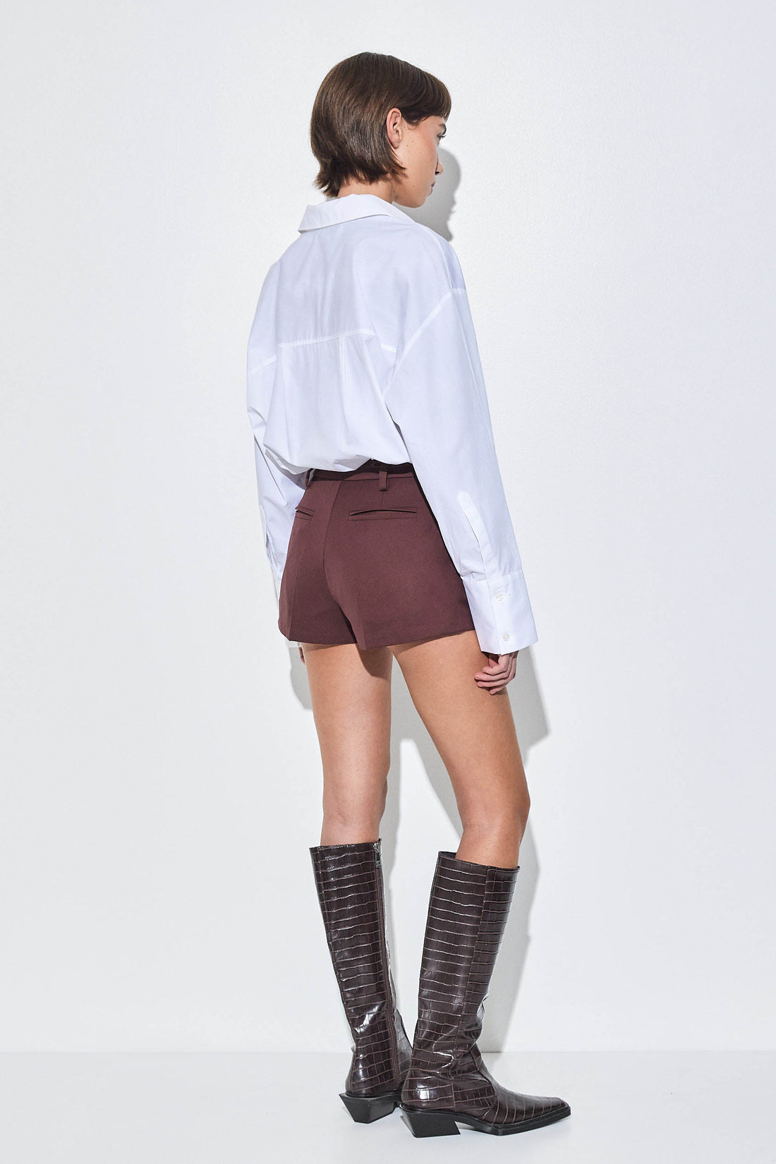 Our new tailored daddy shorts were designed to elevate any outfit this season. In a new luxurious tailored fabric. Mid waist. Belt loops. Unlined. Asymmetric belt closure with inner metal hook, button and zipper. Two side pockets. Two faux back pockets. Tonal embroidered logo on front side. Style it with our heavy cotton T-shirt, a pair of oval sunnies and throw our oversized daddy blazer on top to seal this gorgeous look.