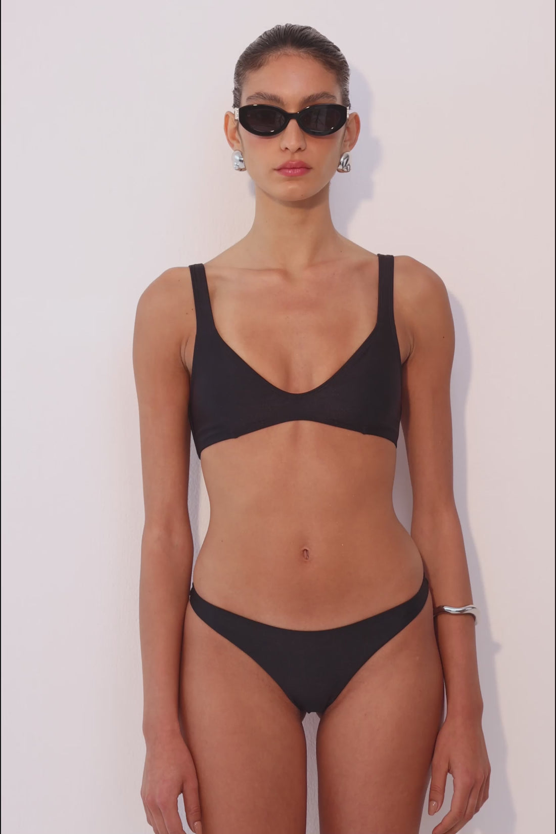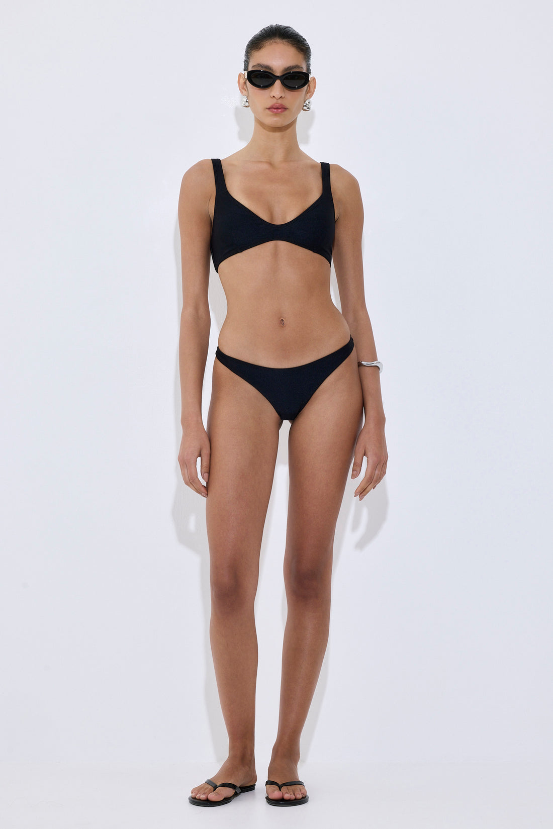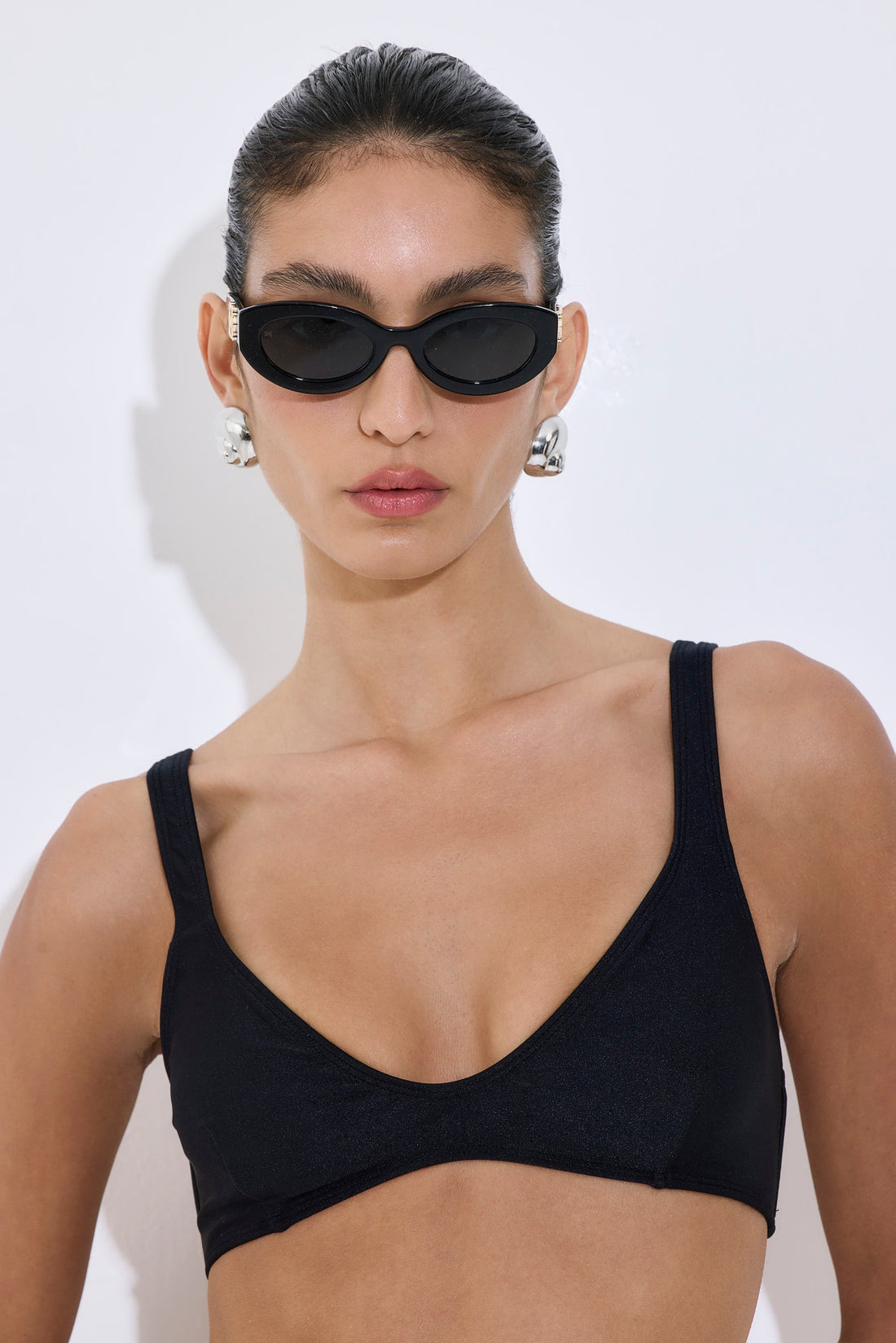 Orea, inspired by the serene beauty of water nymphs, blends effortless style with structured support. Made from sculpting, luxurious Italian fabric that hugs your body for a sleek, contoured fit. Deep scoop silhouette with fixed shoulder straps and a slightly squared open back for a refined yet modern touch. Side wiring for extra support. Darted details on the bust for added shape and support. Preparation for cup inserts (no provided cups included). Features a silver metallic logo detailing on the back side. Lined. Style it with our flattering Maia bottom, our new buckled maxi skirt and a matching scrunchie to seal this gorgeous look.