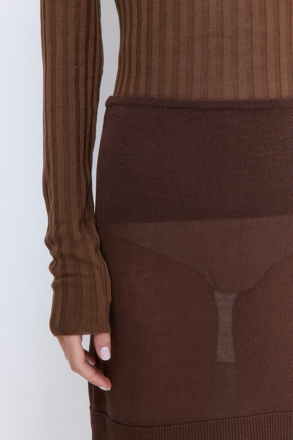 Our new Sheer Midi Skirt is the perfect going-out staple. Made from delicate sheer fabric for a light, airy feel. Thin elastic waistband. Wide ribbed hem. Adjustable low waist. Fully fashioned. Midi length skirt. Complete the look with our matching Sheer Baby Tee and chic Rodika Tote Bag for effortless sophistication.