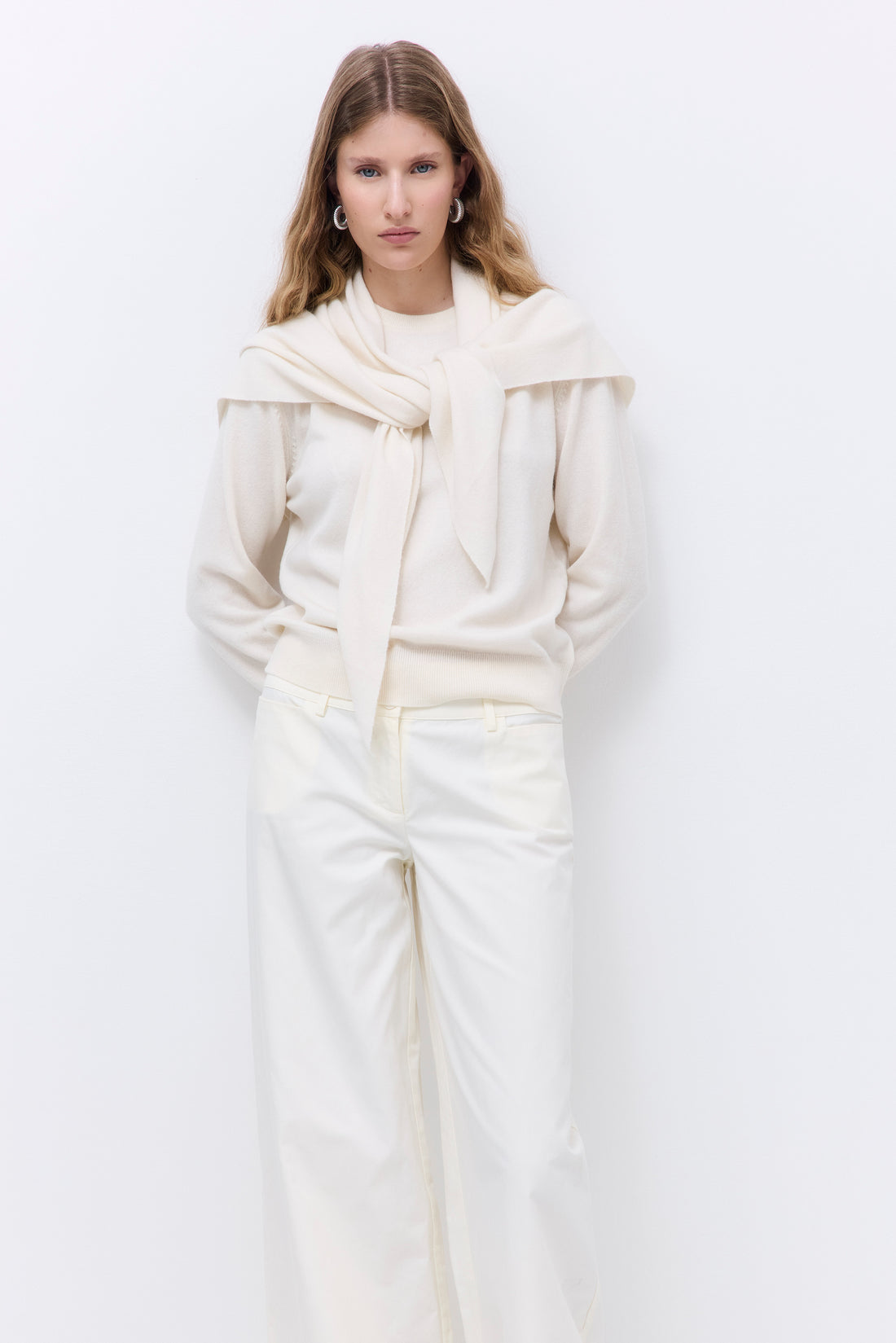 Your new winter must-have: a warm, cozy wool triangle scarf, fully fashioned with a tonal embroidered logo along the edge. Style it with our iconic Oversized Double Breasted Trench Coat and Rodika Tote Bag for an effortless, refined look.