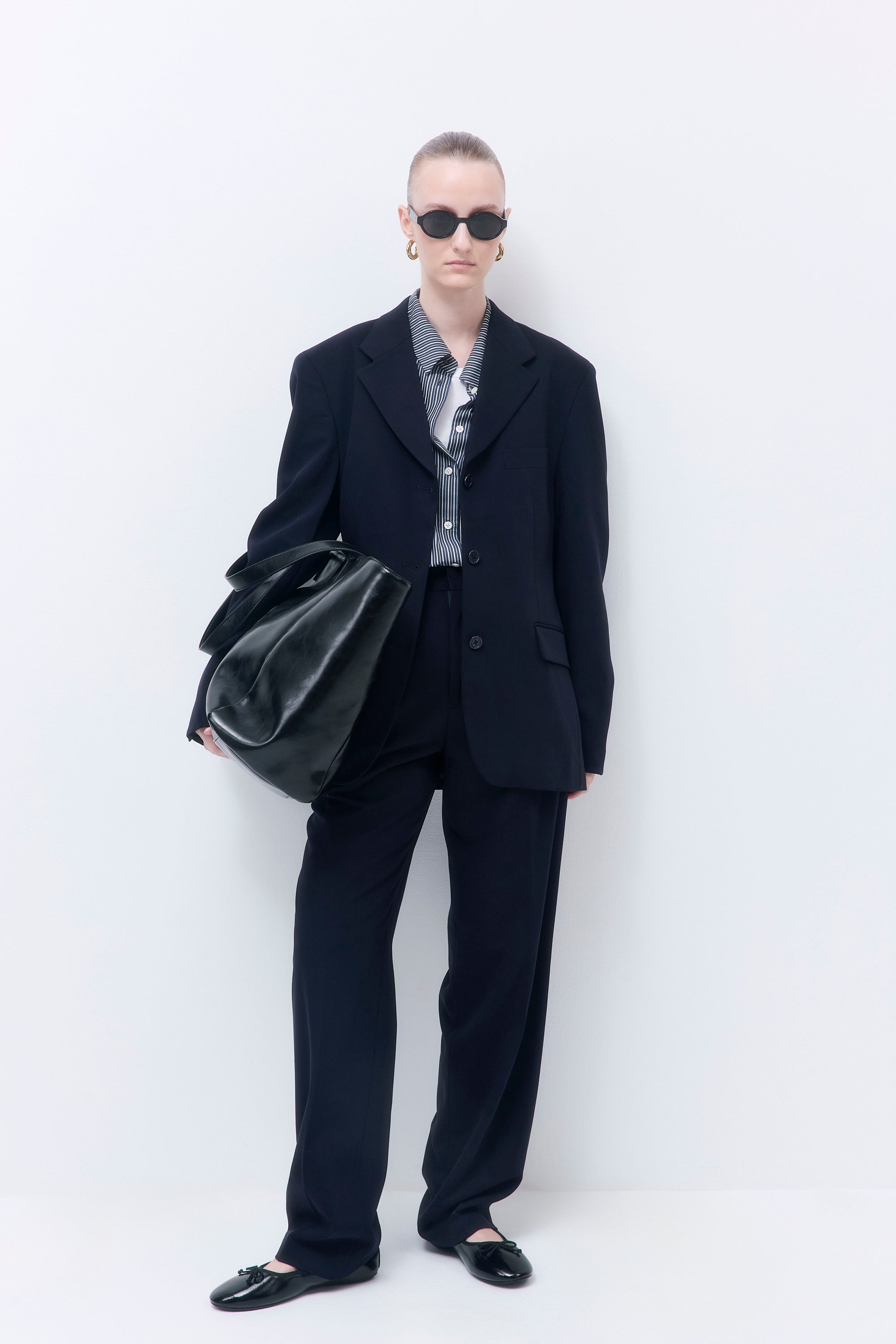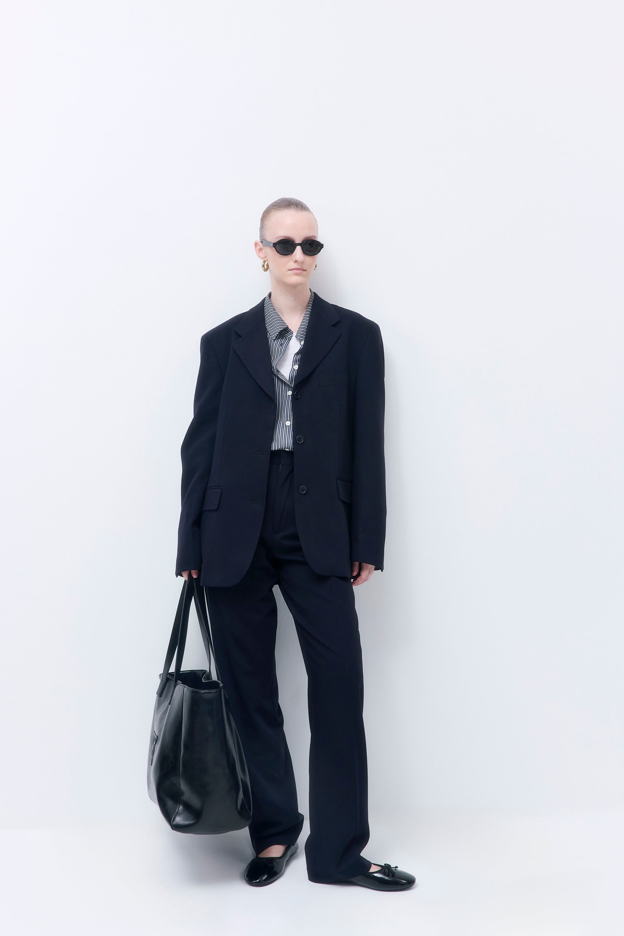 Welcoming new, timeless pieces to our iconic Daddy collection. The ultimate day-to-night pant. High waisted. Tapered leg. Full length pant. Featuring two front pleats. Two side pockets. Zipper closure with inner hook. Half-lined. Tonal embroidered logo on the back. Includes back pockets. Style it with our luscious Classic Long Sleeve T Shirt and our sleek new Double Breasted Daddy Blazer for a sophisticated, yet comfortable look.