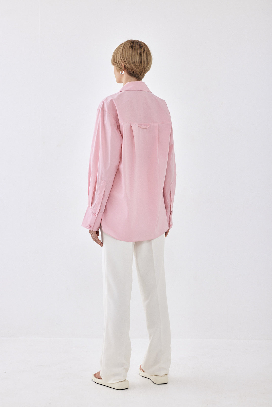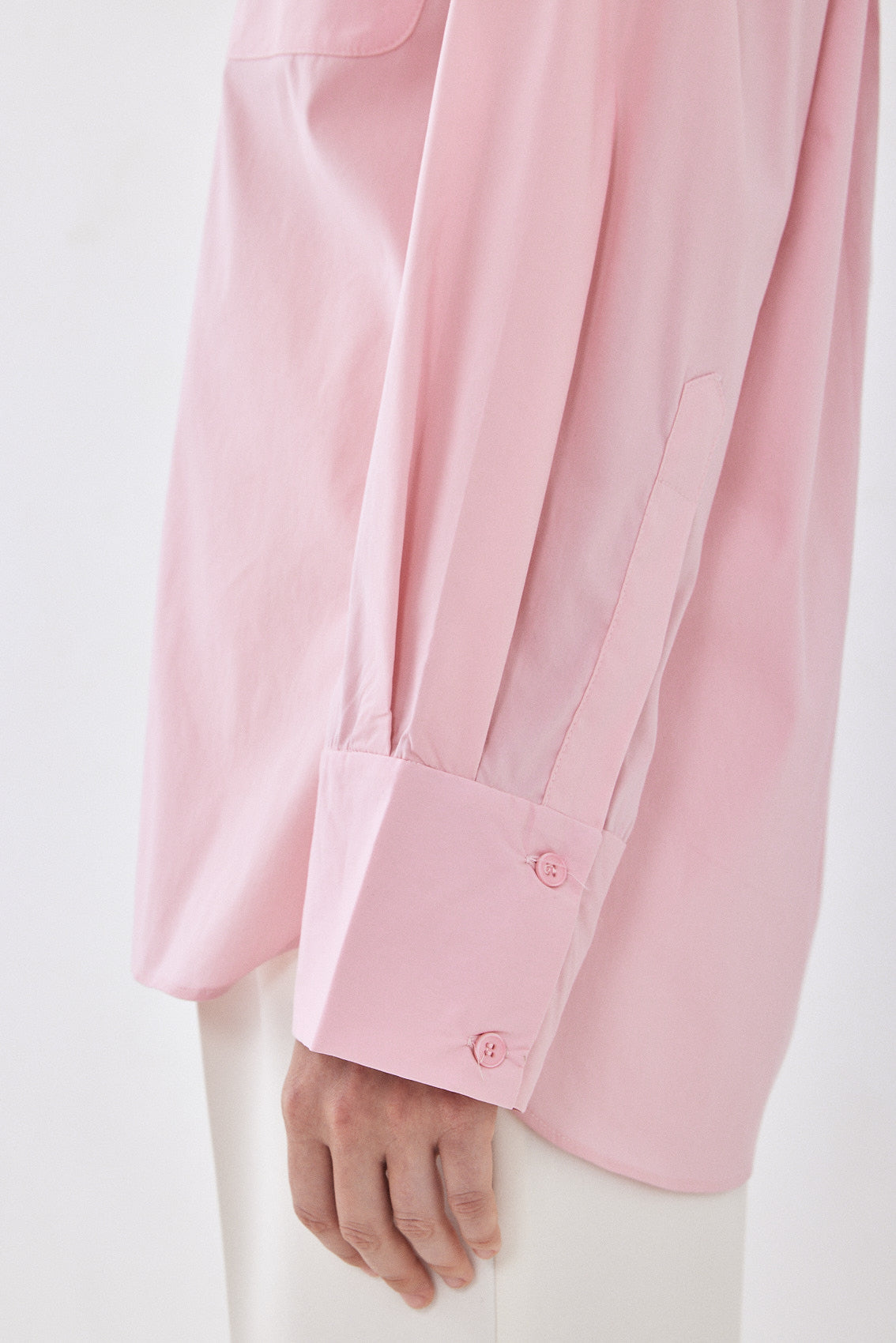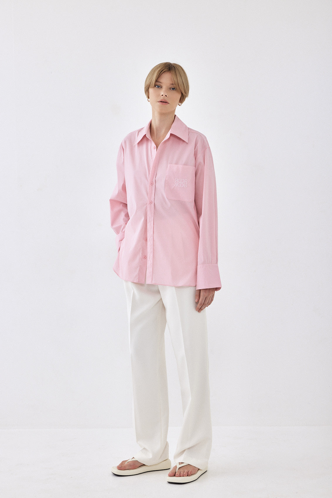 The perfect oversized cotton button down shirt. Features frontal button down closure. Lapel collar and oversized cuffs. Front pocket featuring logo. Crispy, ultra-flattering fabric. Style it with your favorite maxi skirt, a pair of studs and a kitten heel for the ultimate holiday look.