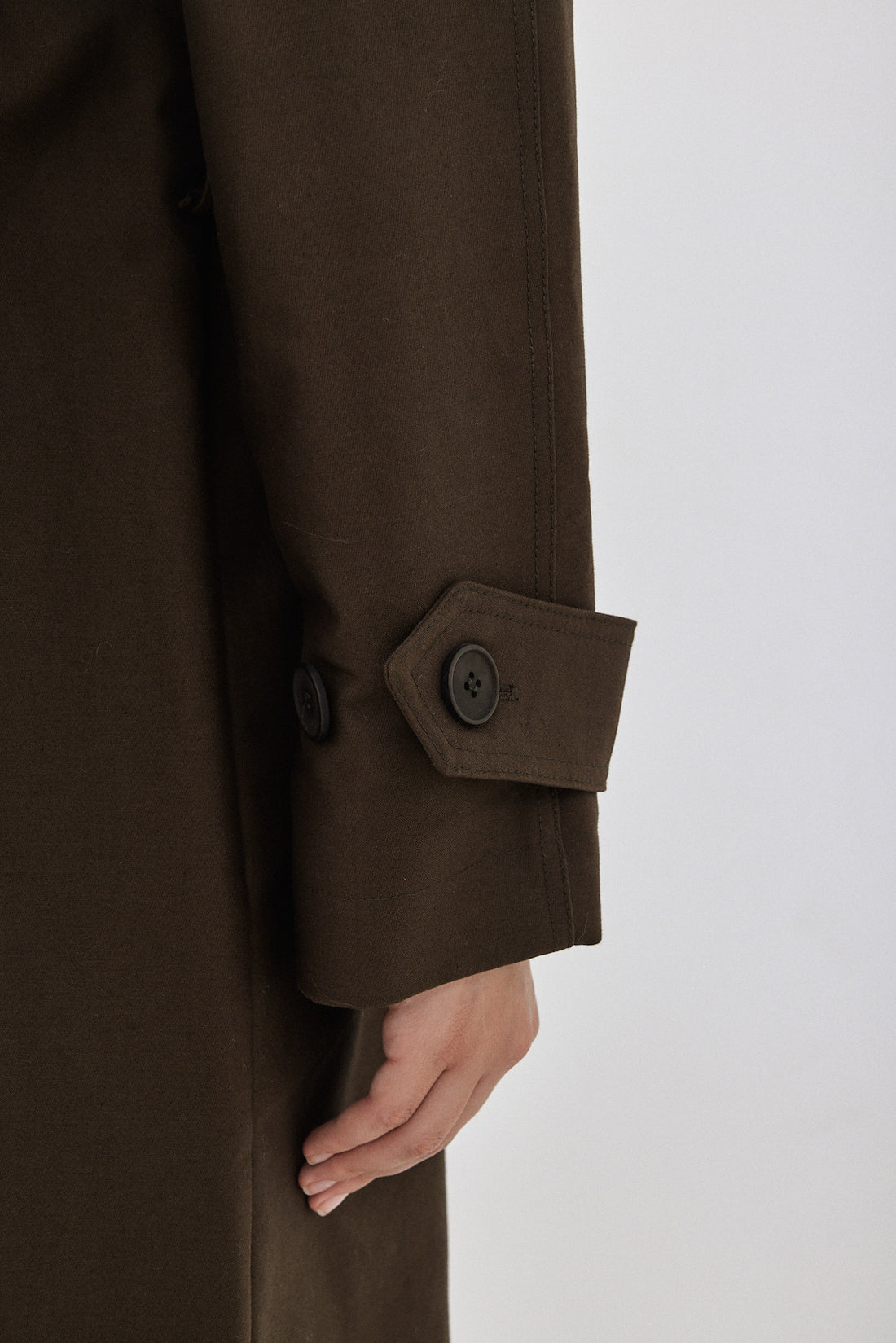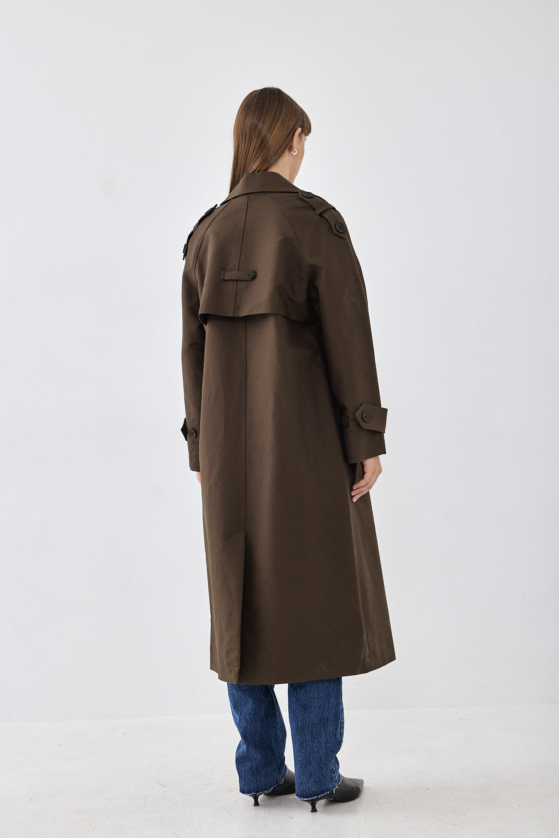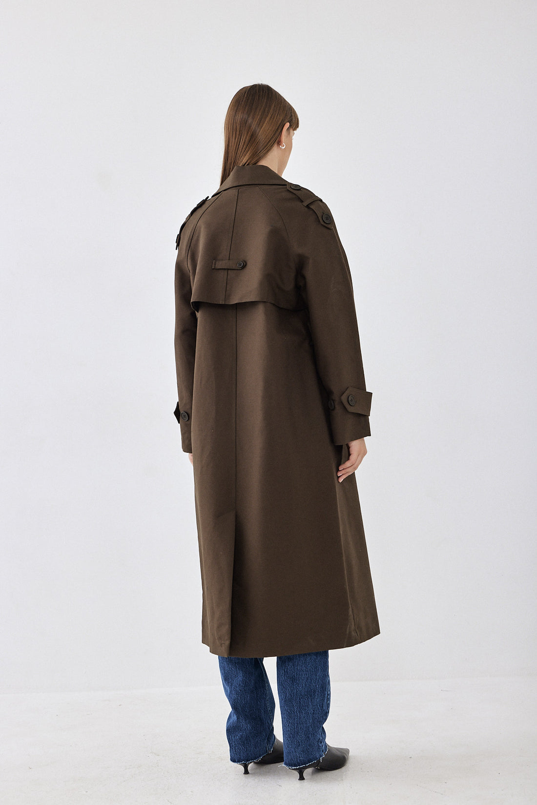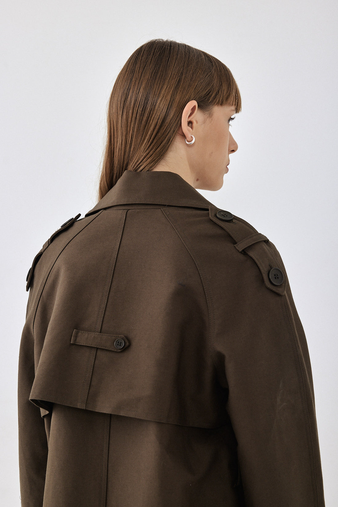 Fully lined cotton trench coat with a double breasted front. Featuring belt loops and a matching belt to define the waist. The perfect layering essential transcending seasonality, perfect in every wardrobe. Wear it over your outfit to give it that finishing touch.