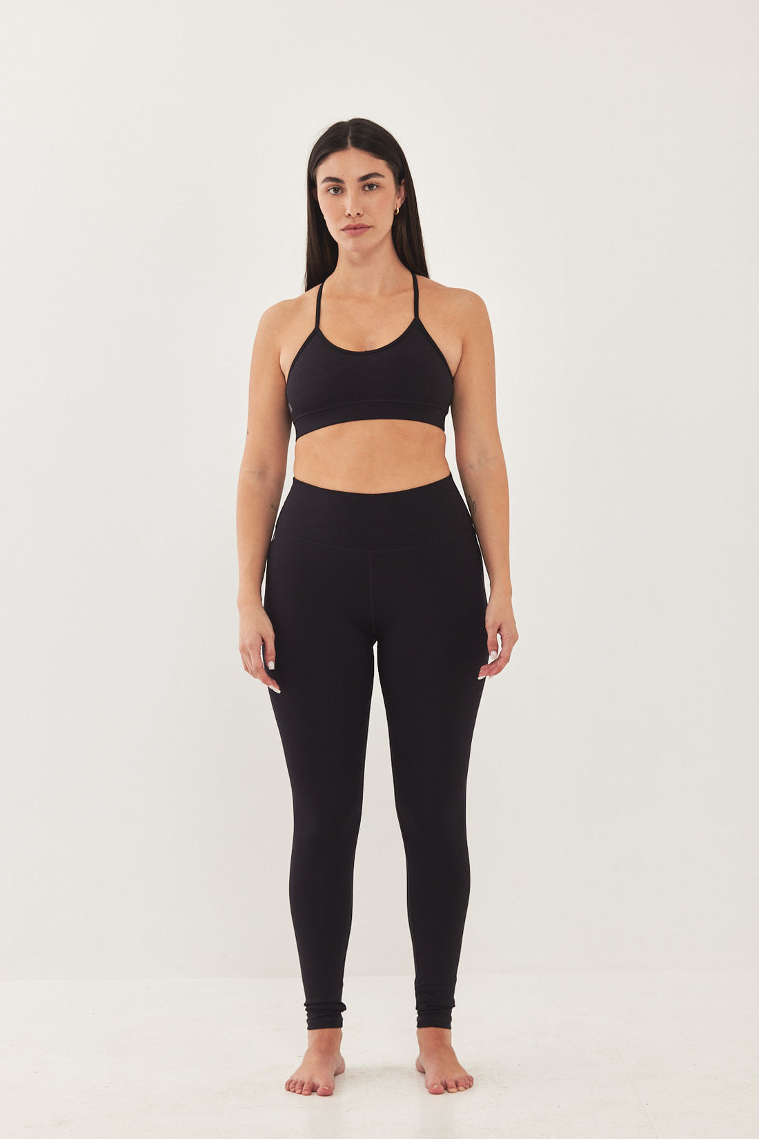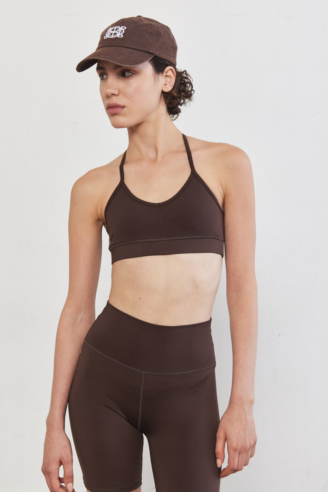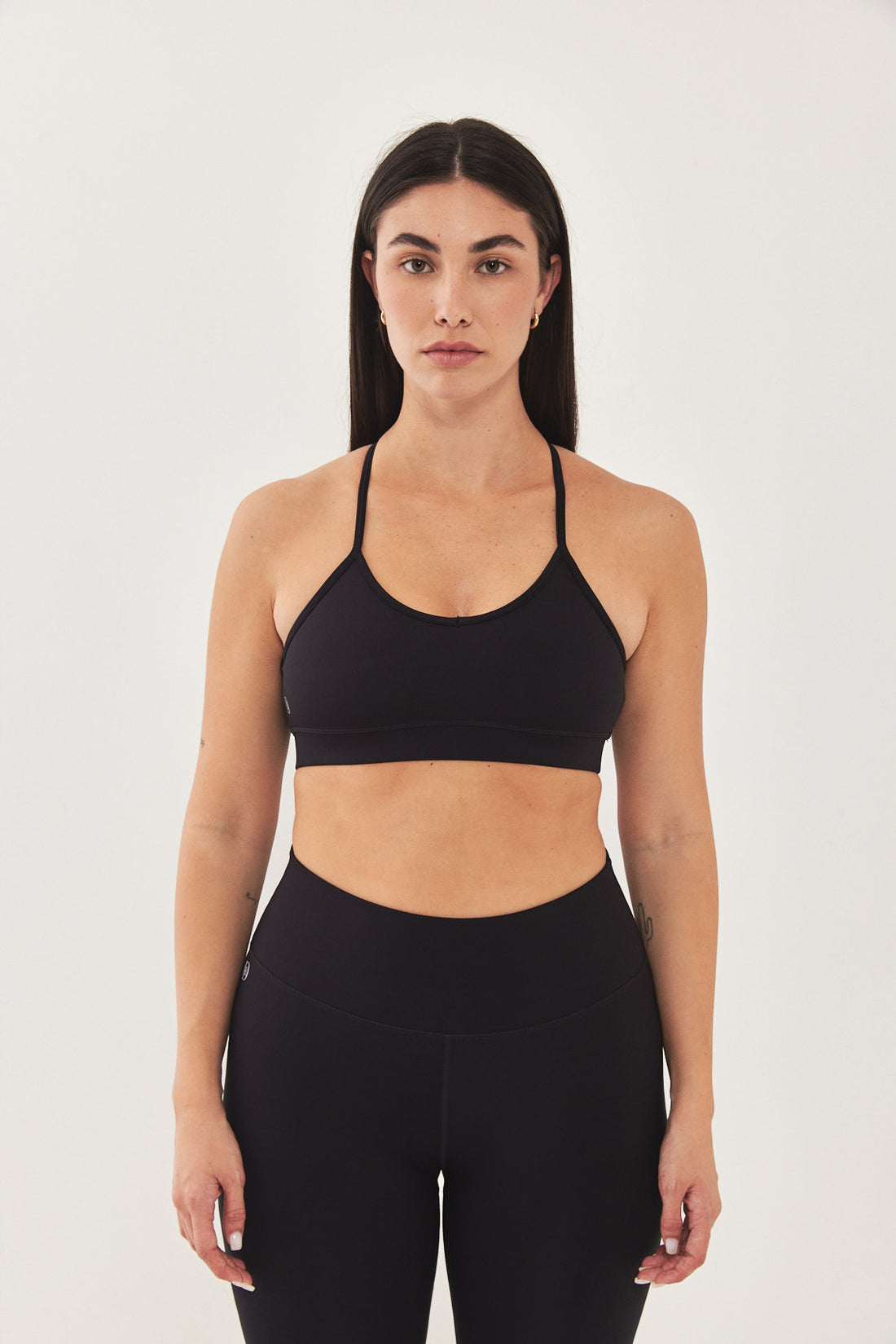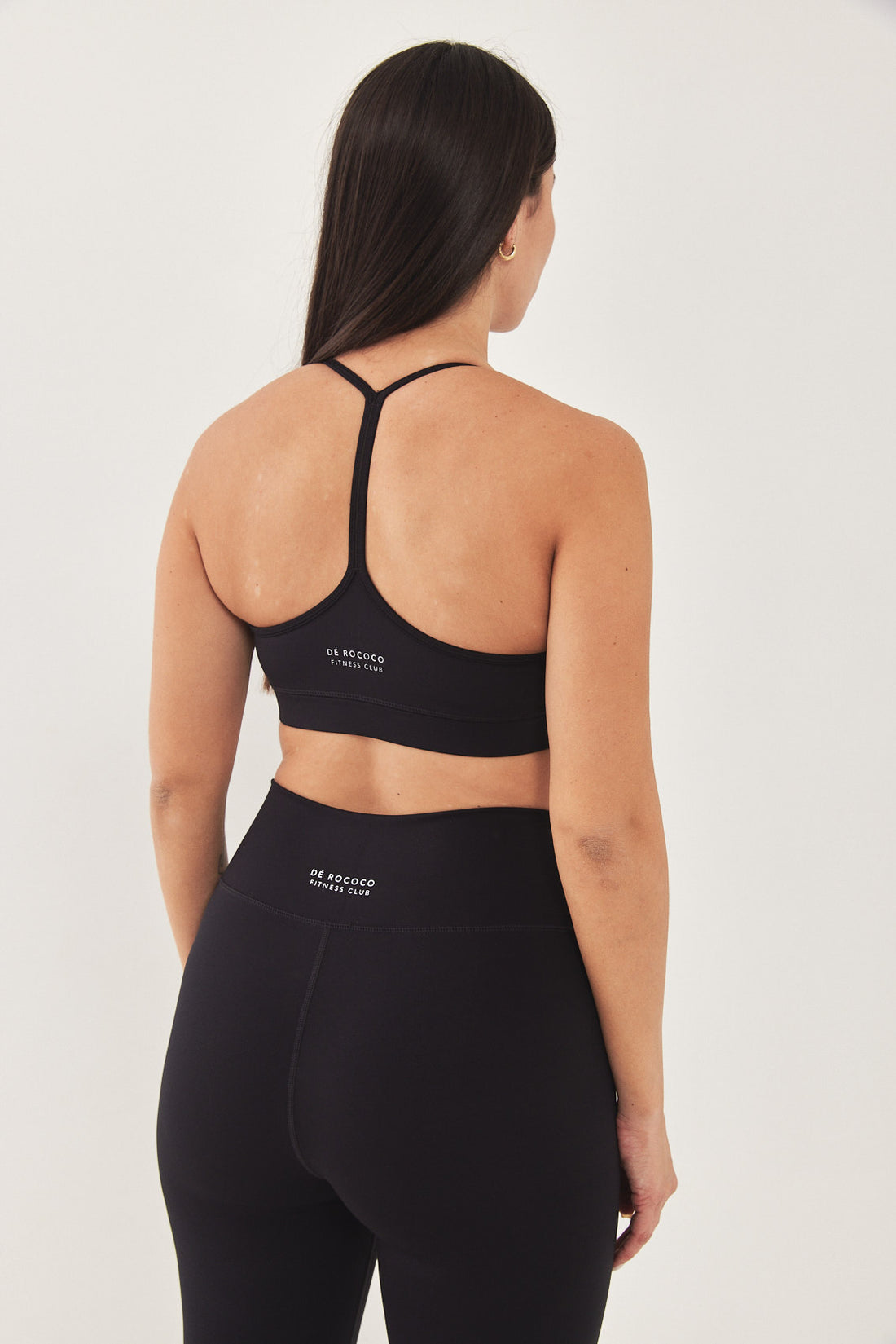 Dé strapped back bra has a second-skin fit and feel, made from a stretchy supportive fabric. Features a V neckline with thin straps at the front and one at the back.Flat lock stitches and an under bust waistband for support. Reflector logo on the side front and a fitnéss club signature at the back. Complete the set with one of our matching color fitnéss club bottom.