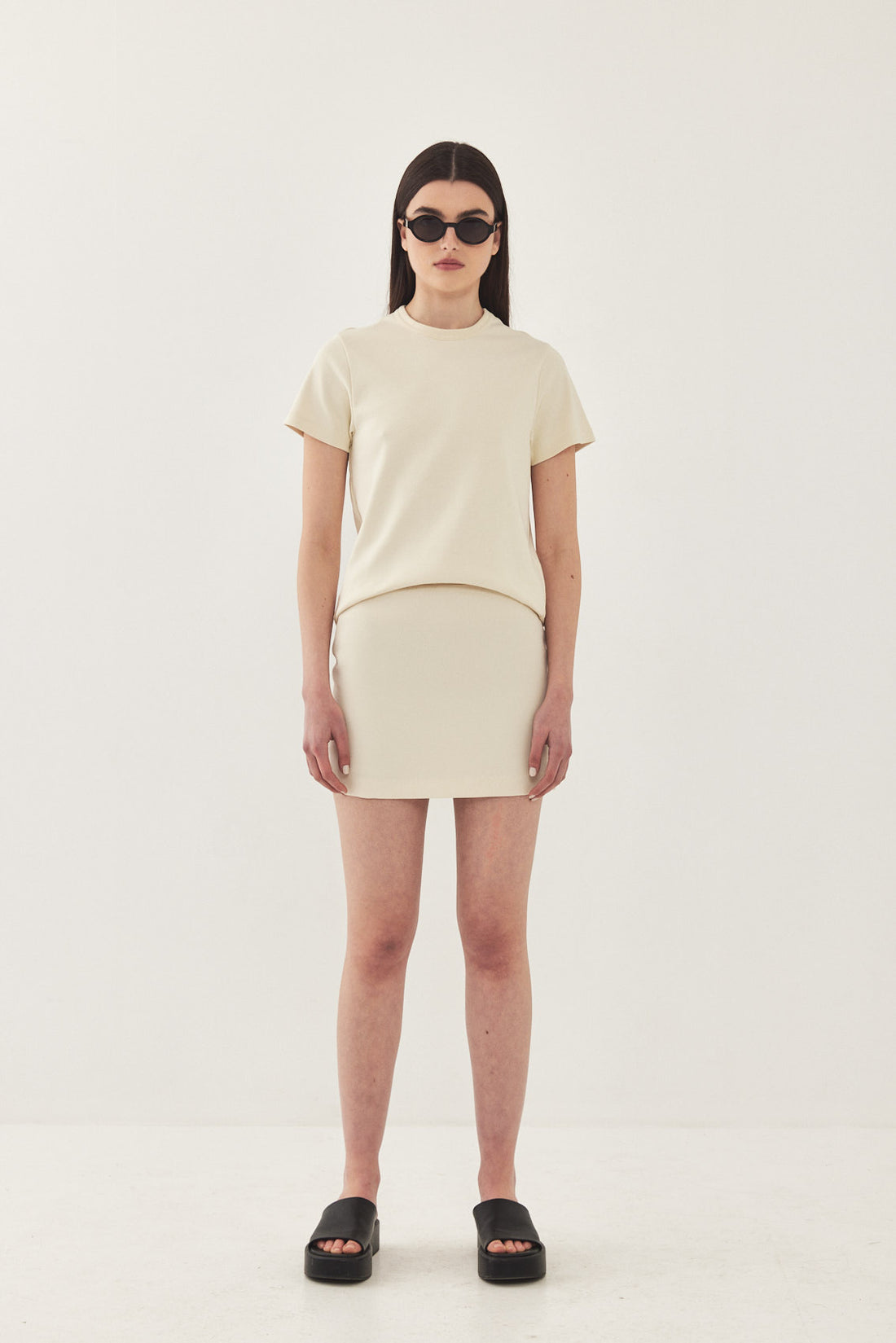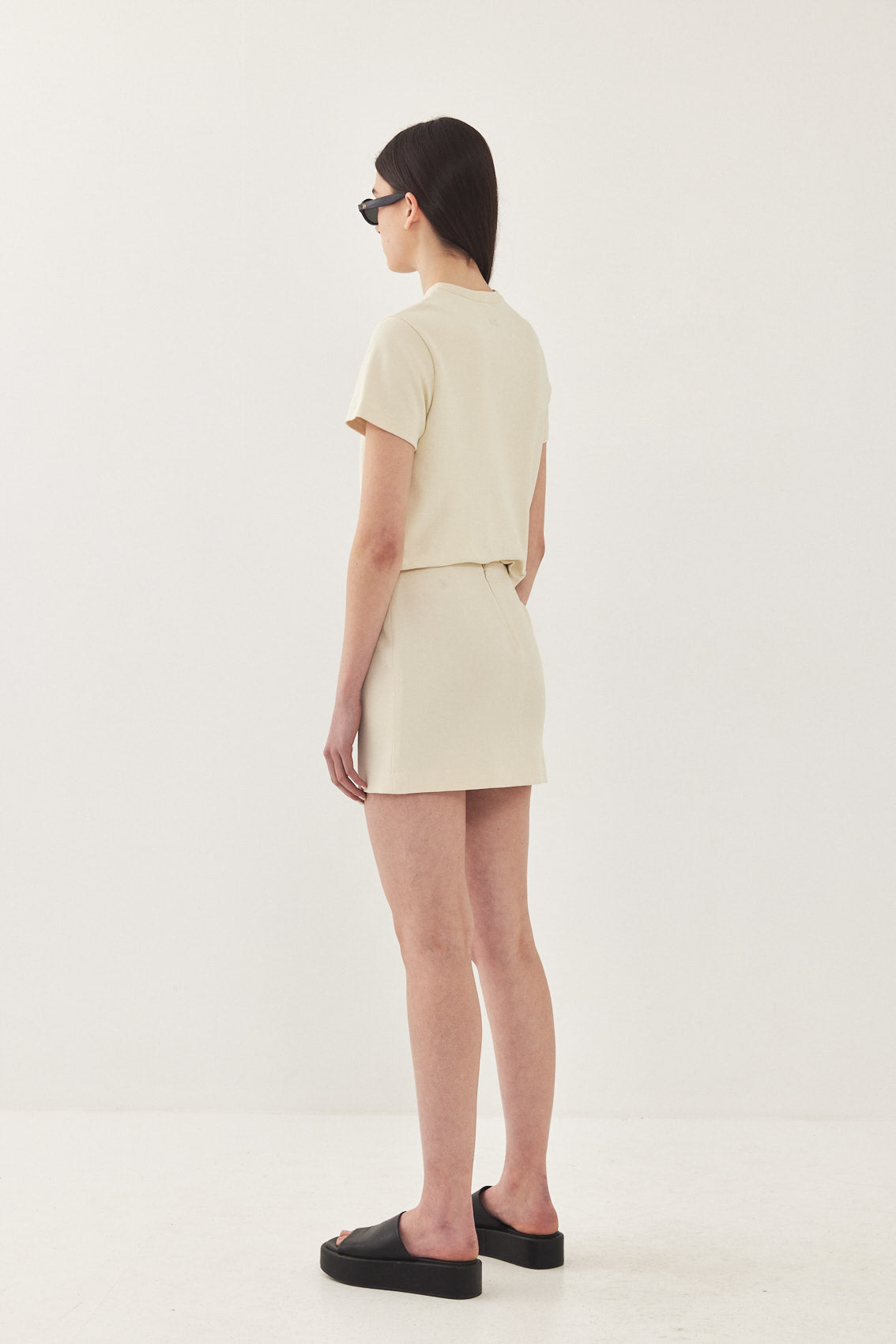 A line cut mini skirt from our signature daddy collection. Featuring a delicate zipper closing on the back. Style it with your favorite top and a pair of kitten heels for the perfect going out look.