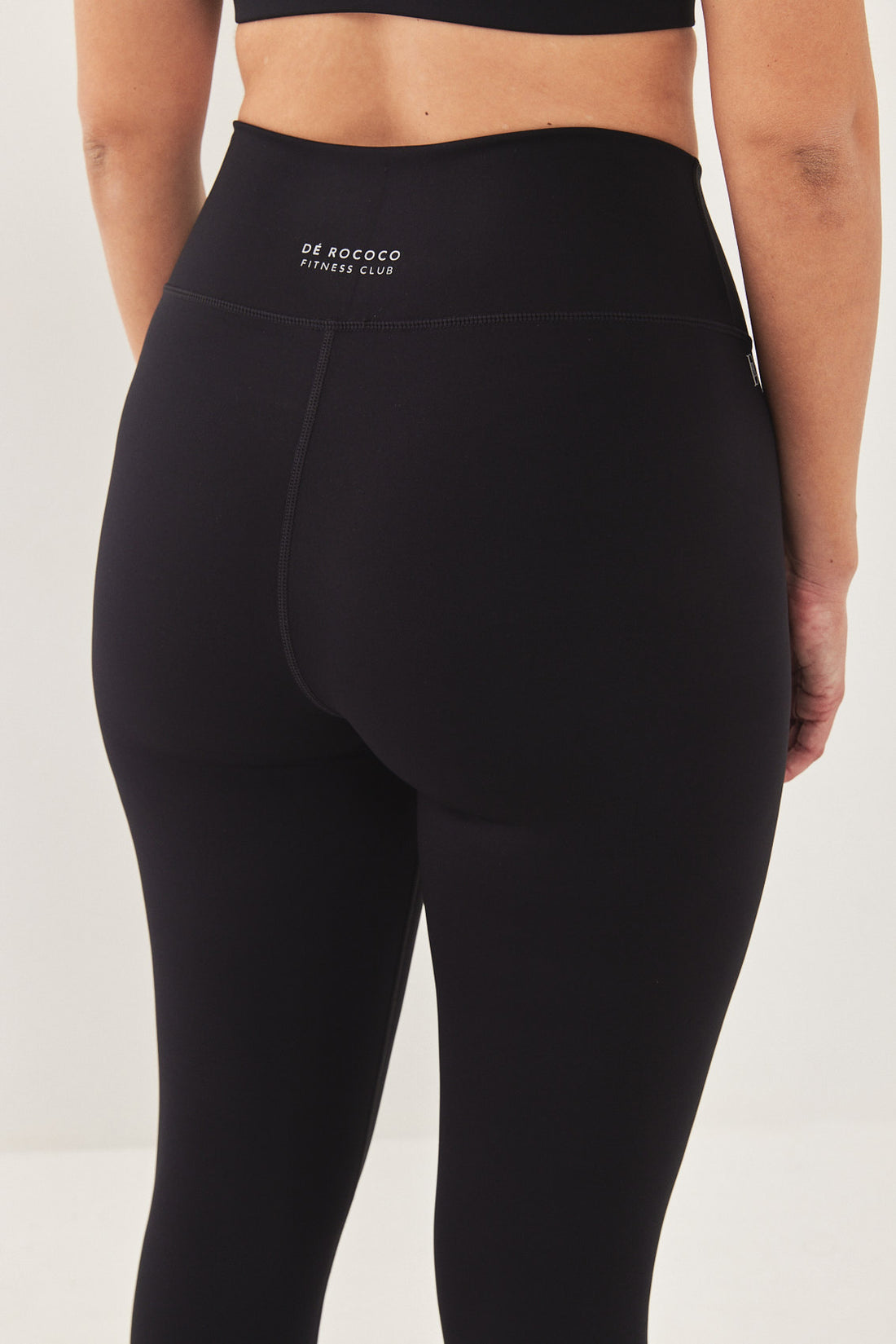 Dé Leggings has a second-skin fit and feel, made from a stretchy smooth fabric that lifts and sculpts your body. High waisted, comes in two lengths to fit your height. Features a sweat absorbent lining at the crotch area. Reflector logo on the side front and a fitnéss club signature and the back. Complete the set with one of our matching color fitnéss club top.
