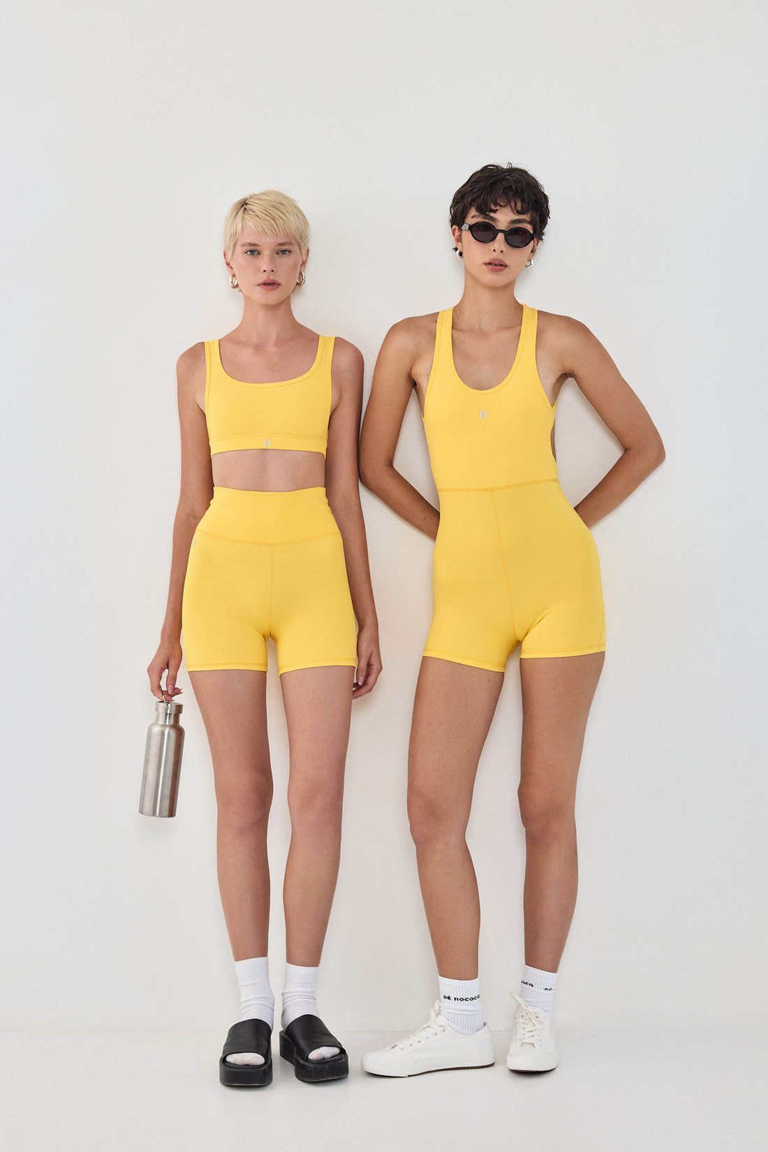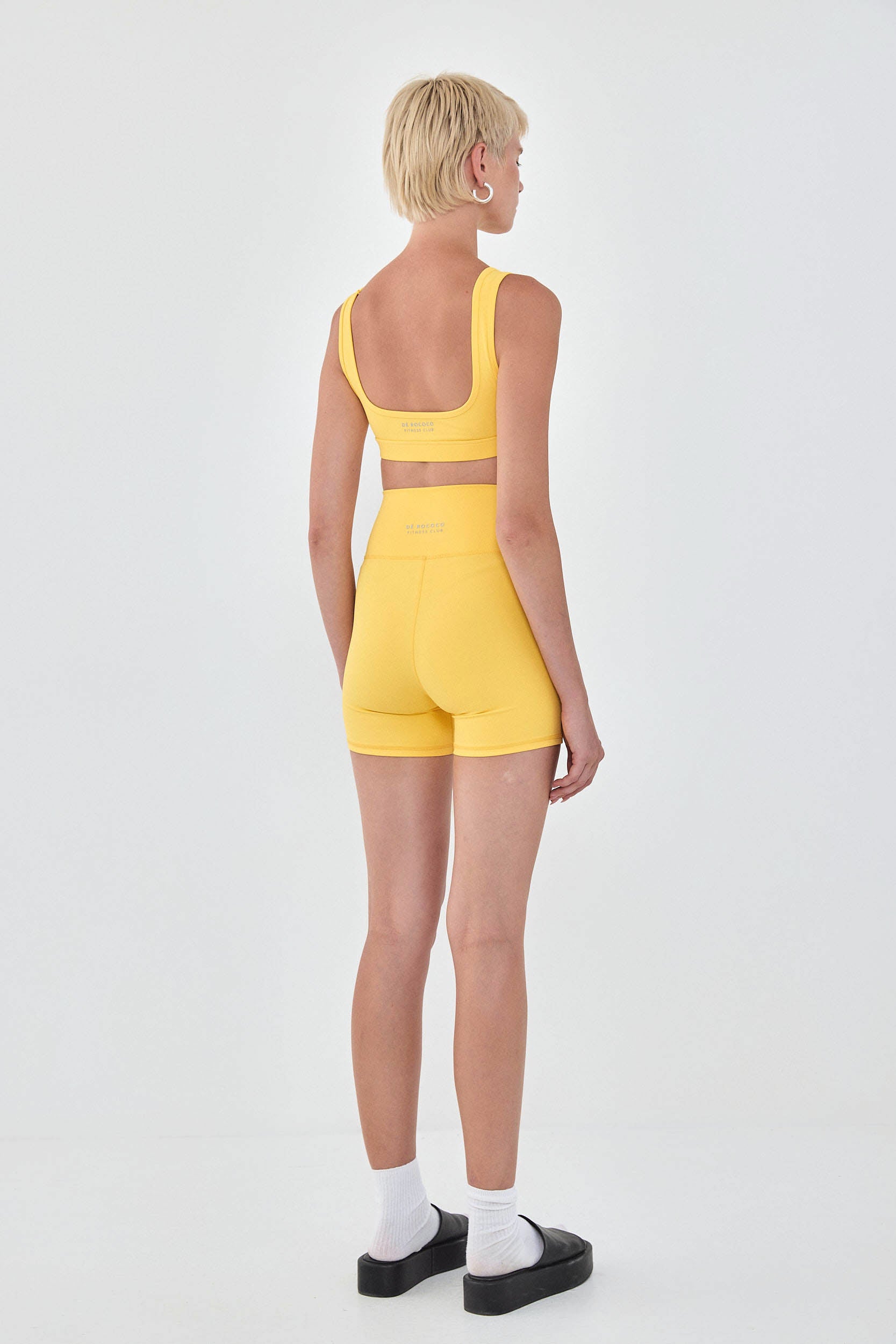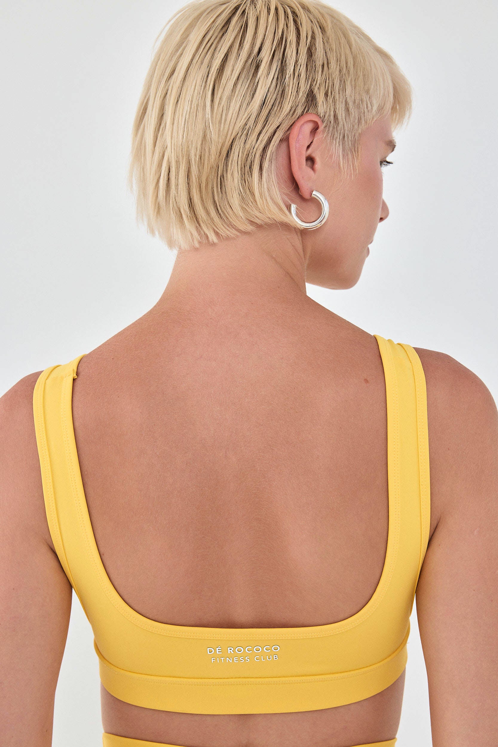 Dé open sides bra has a second-skin fit and feel, made from a stretchy supportive fabric. Features dip openings at the sides. Delicate square neckline front and back. Deep Flat lock stitches and an under bust waistband for support. Reflector logo on the front and a fitnéss club signature at the back. Complete the set with one of our matching color fitnéss club bottom.
