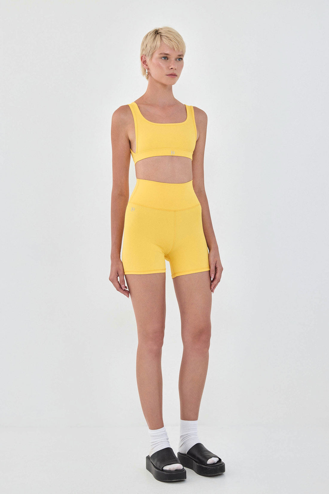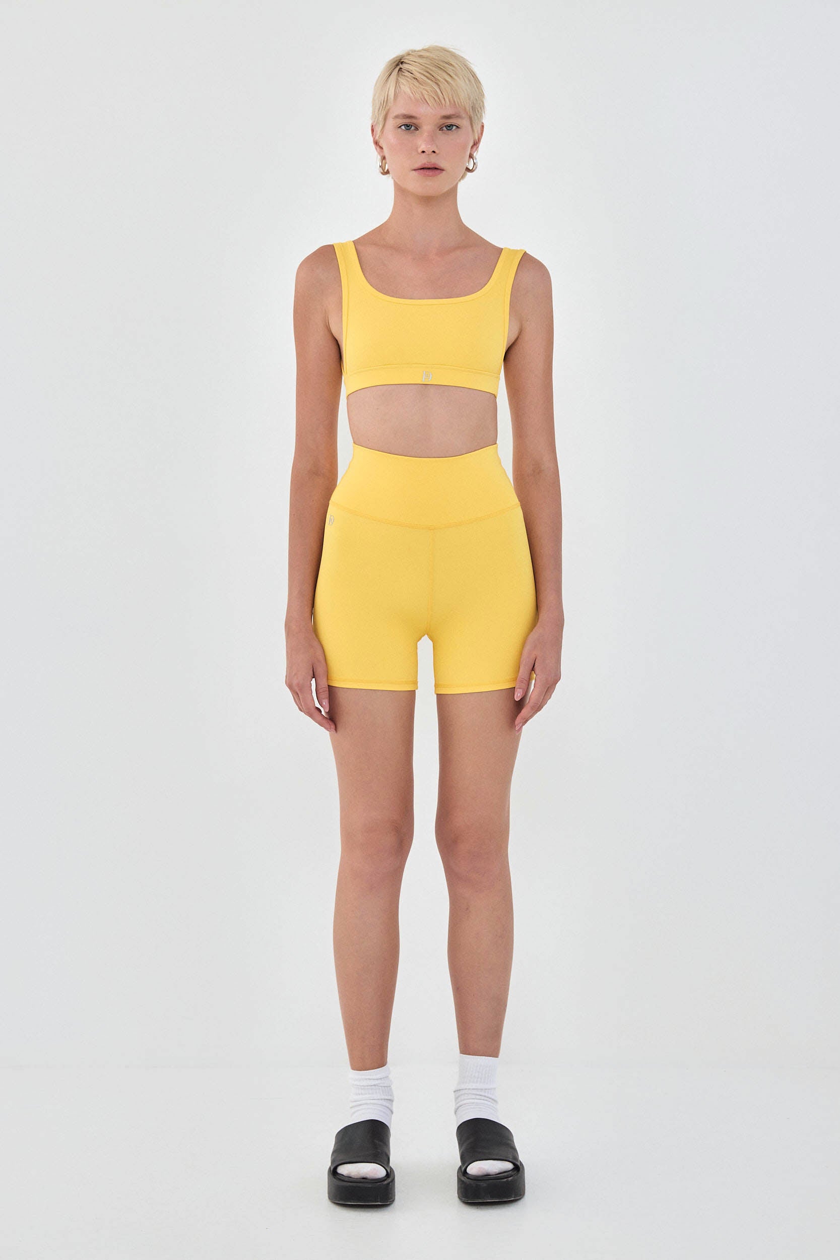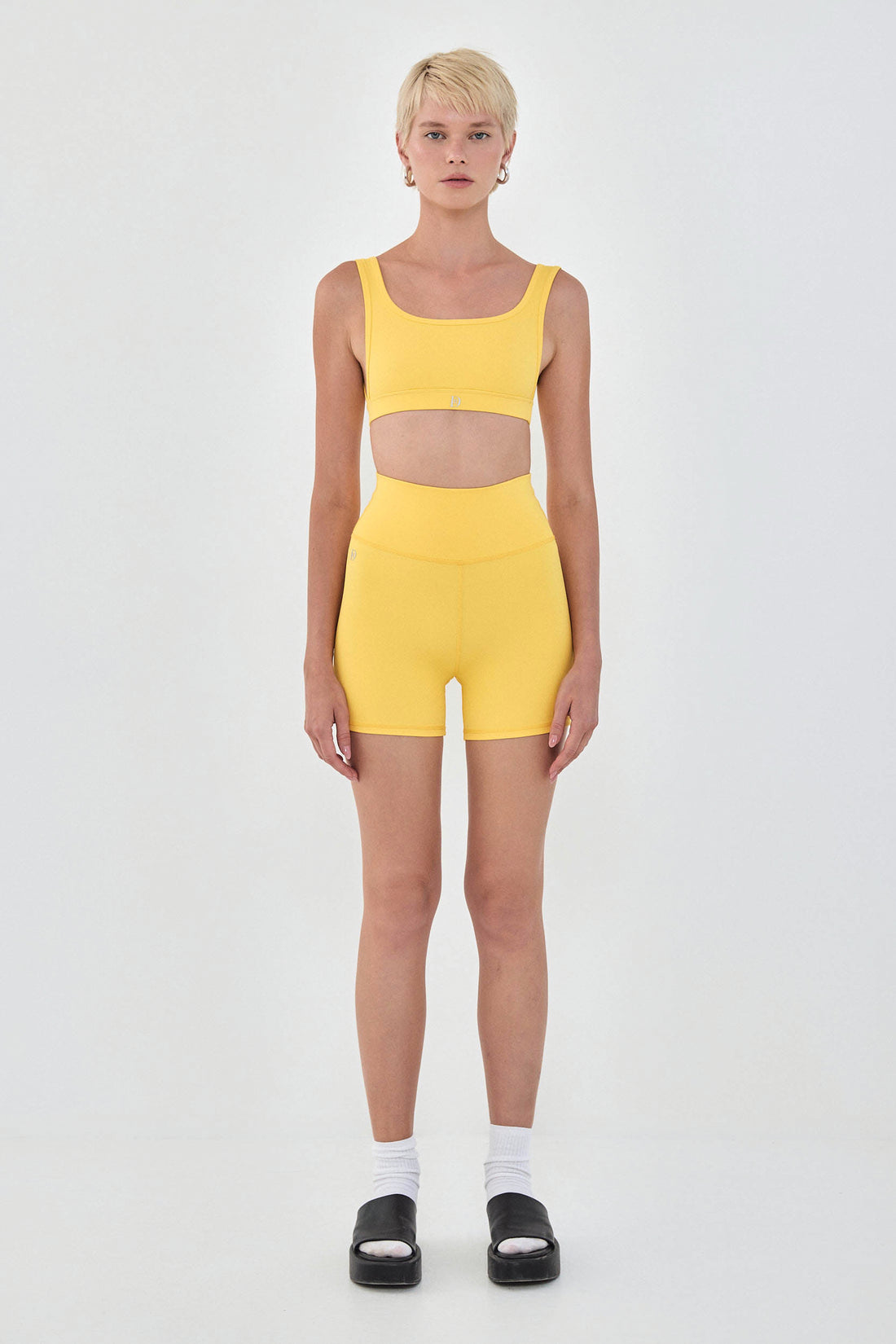 Dé open sides bra has a second-skin fit and feel, made from a stretchy supportive fabric. Features dip openings at the sides. Delicate square neckline front and back. Deep Flat lock stitches and an under bust waistband for support. Reflector logo on the front and a fitnéss club signature at the back. Complete the set with one of our matching color fitnéss club bottom.