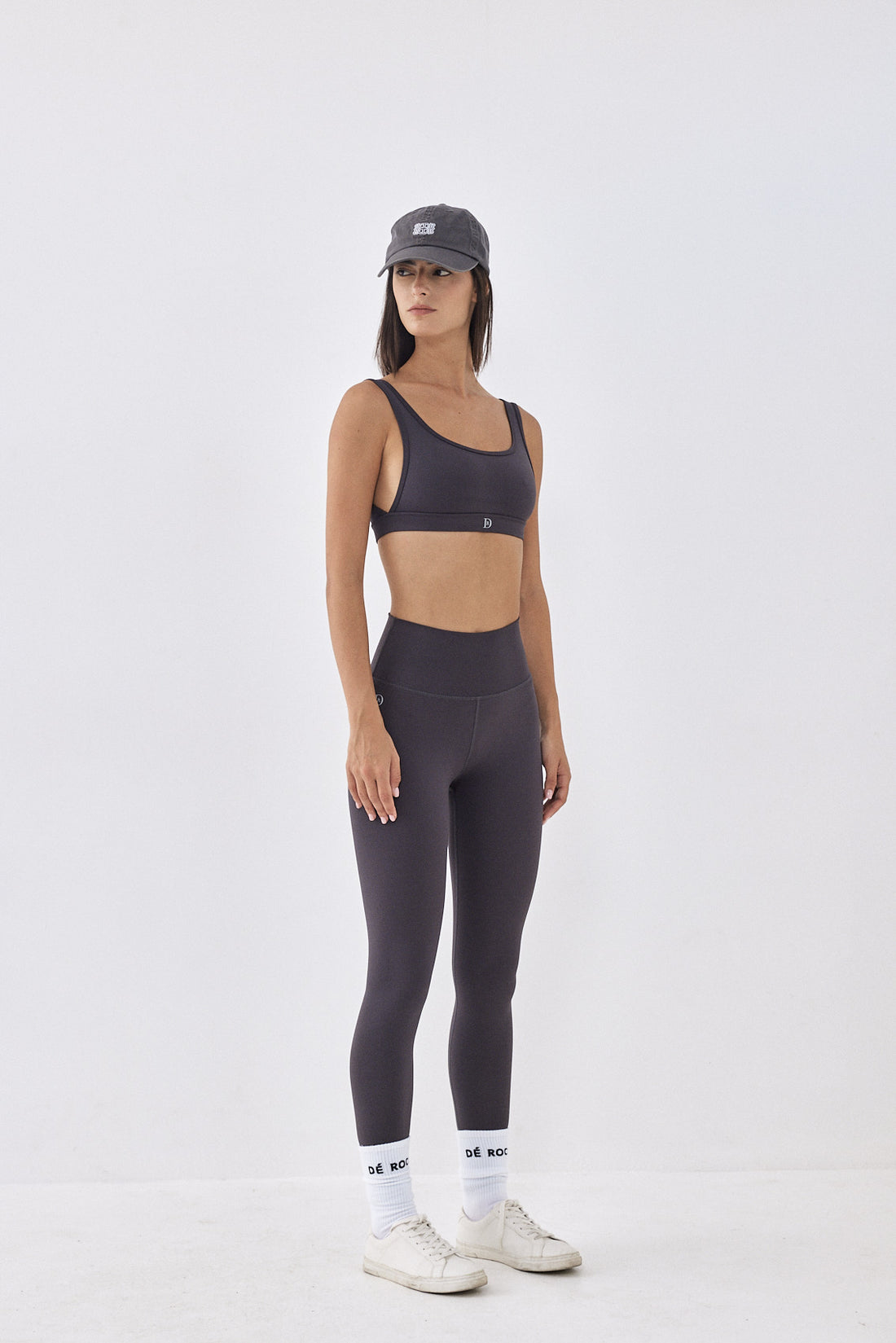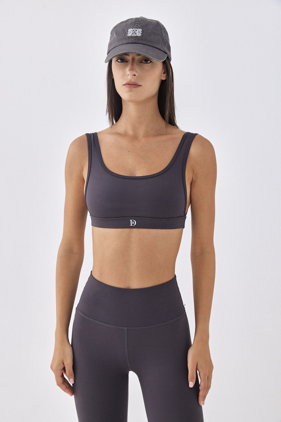 Dé open side bra has a second-skin fit and feel, made from a stretchy supportive fabric. Features dip openings at the sides. Delicate square neckline front and back. Deep Flat lock stitches and an under bust waistband for support. Reflector logo on the front and a fitnéss club signature at the back. Complete the set with one of our matching color fitnéss club bottom.