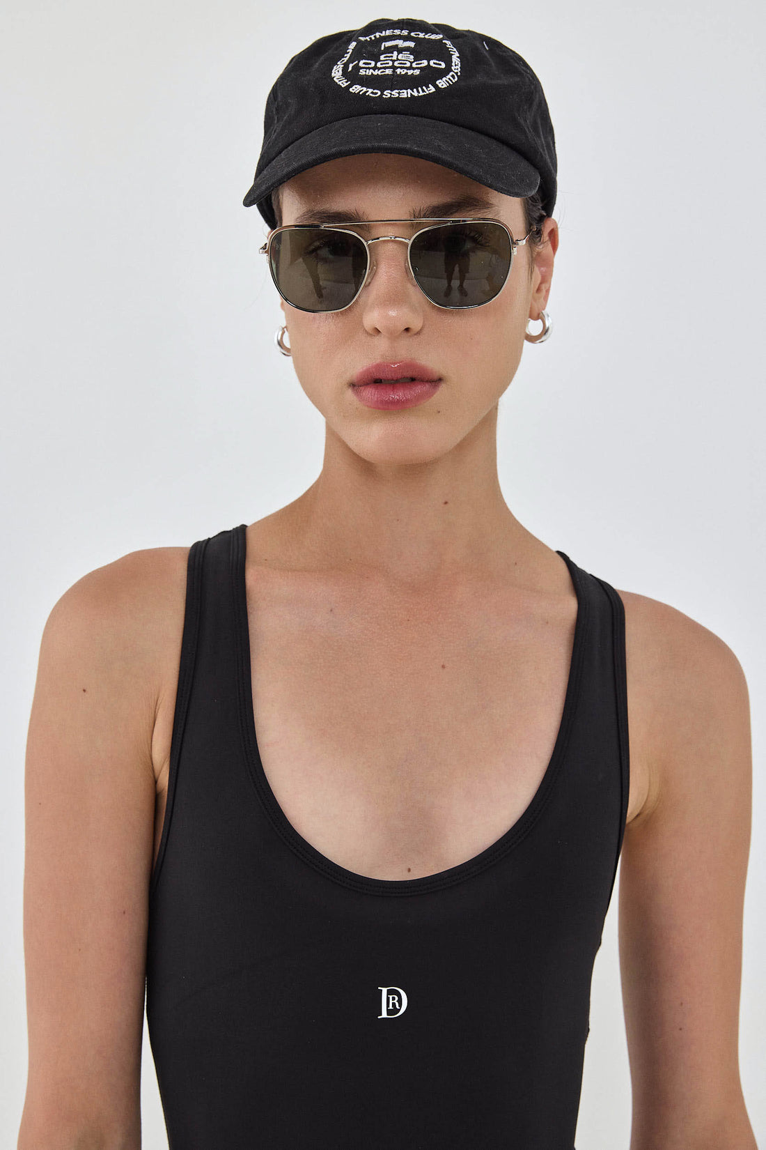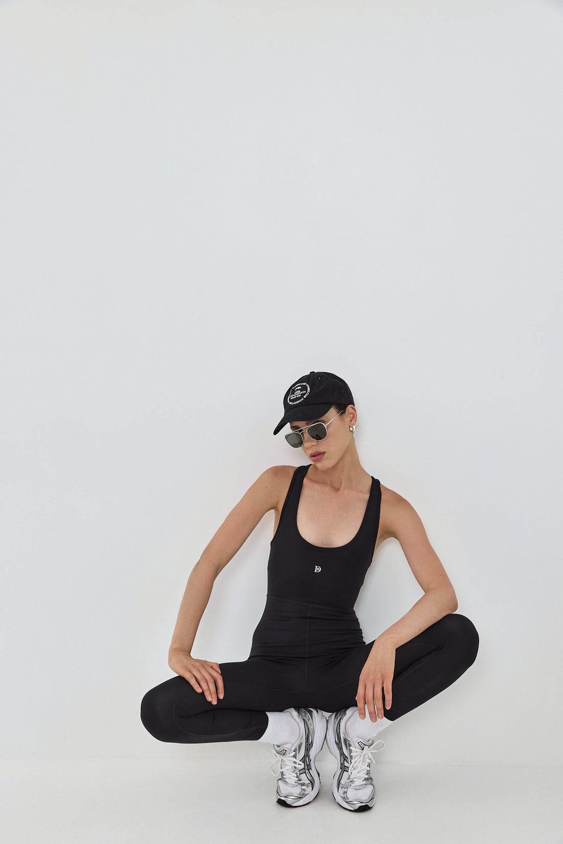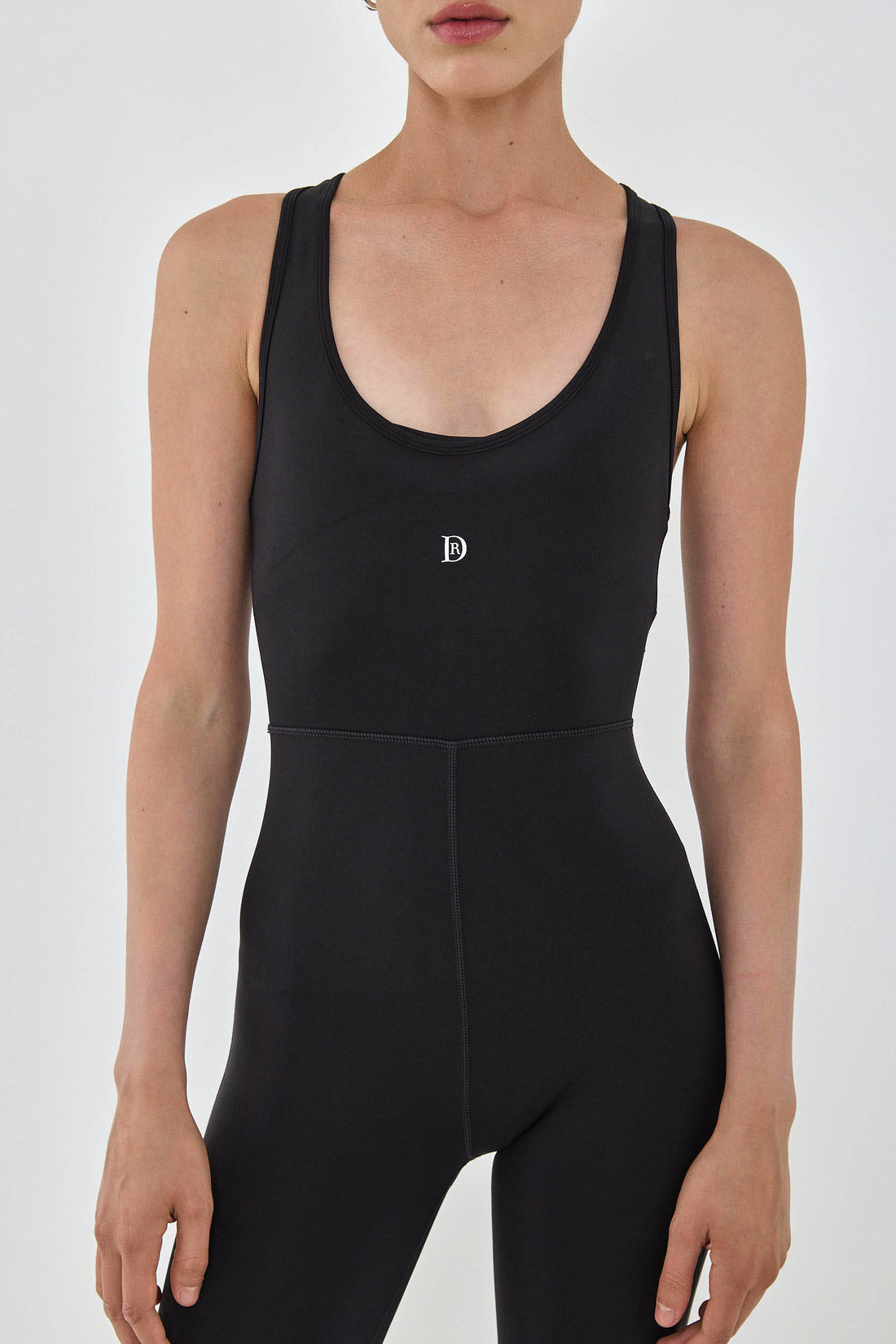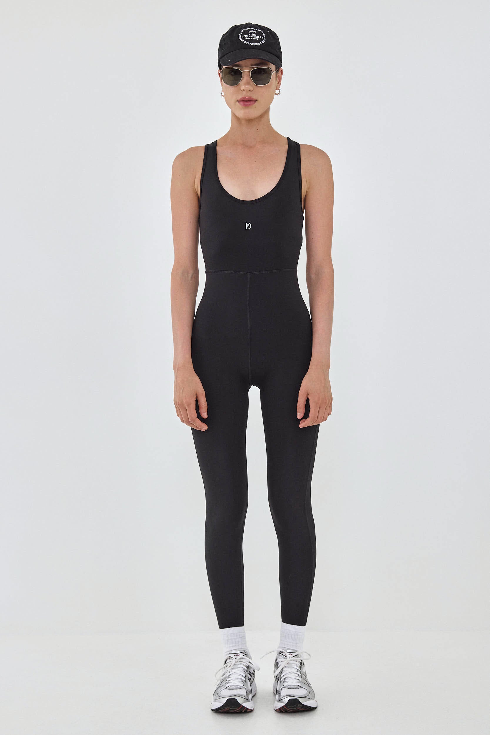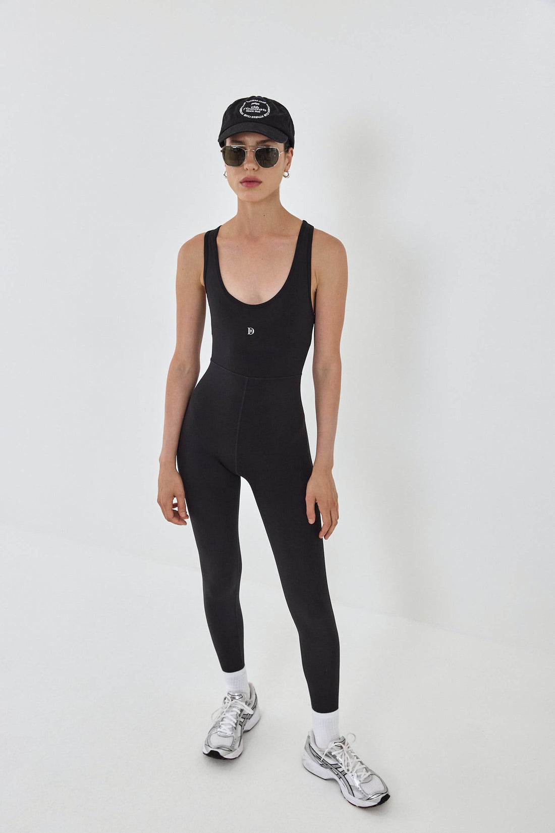 Introducing the newest addition to our signature activewear collection, our active jumpsuit. Our active has a second-skin fit and feel, made from a stretchy smooth fabric that lifts and sculpts your body. Deep scooped round neck. Racerback. Reflector logo on the front. Reflector logo on the back. Bra area has an inner bra for extra grip. Features flat lock stitches and a sweat absorbent lining at the crotch area. Complete the sporty look with the matching socks and chino cap.