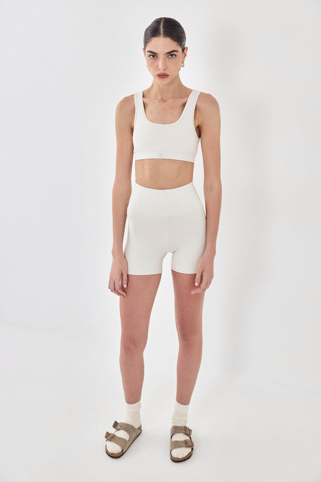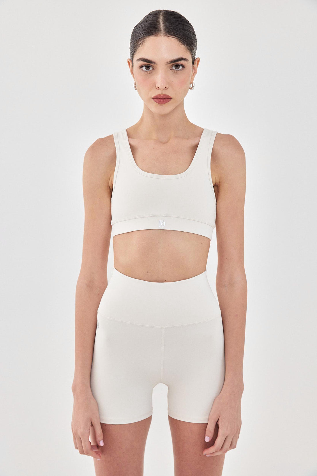 Dé round neck bra has a second-skin fit and feel, made from a stretchy supportive fabric. Features a round neckline with thick straps and an under bust waistband for optimal support, offers great support for a larger bust. Features flat lock stitches. Reflector logo on the side and a fitnéss club signature at the back. Complete the set with a matching color fitnéss club bottom and a chino cap for the ultimate workout ready look.