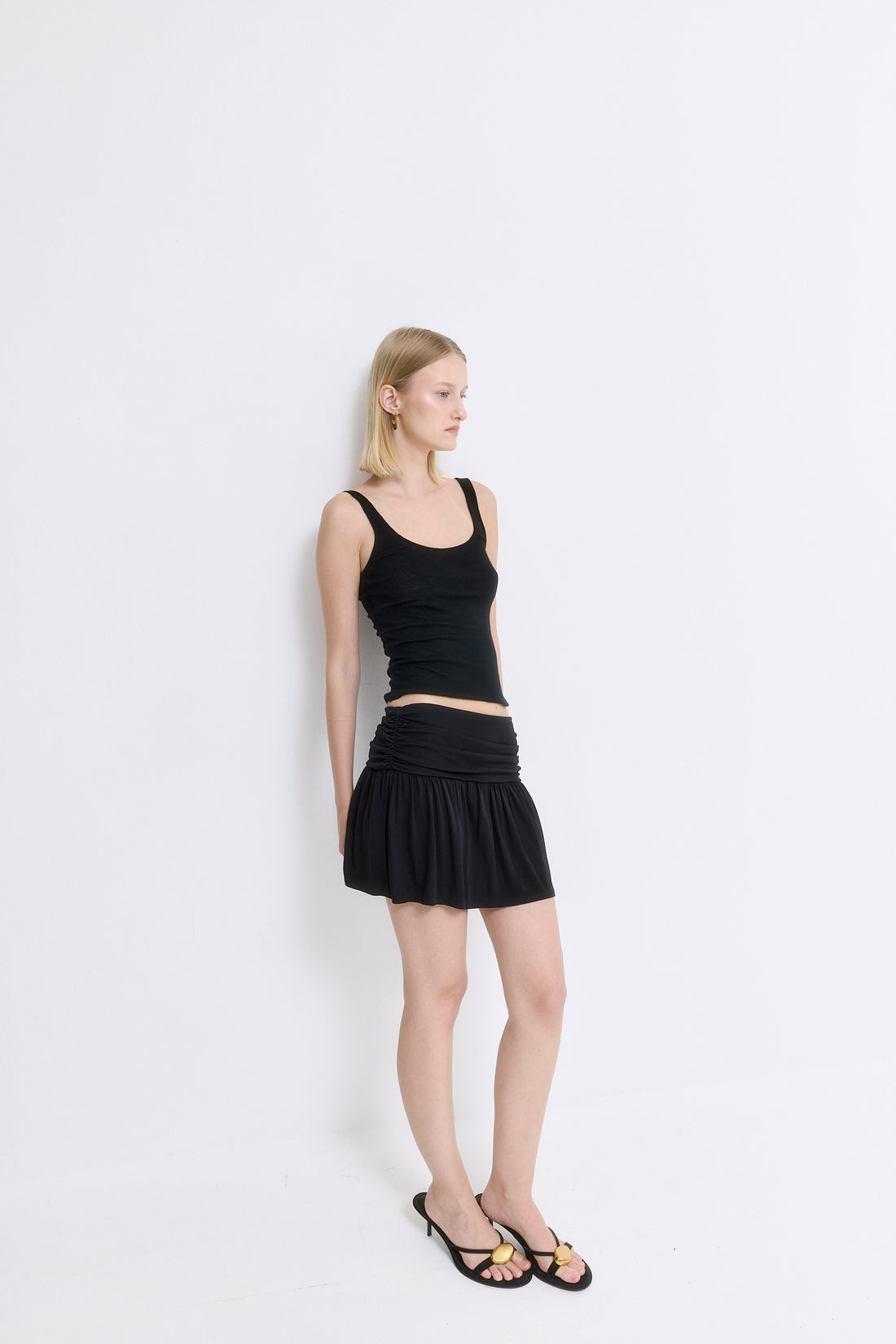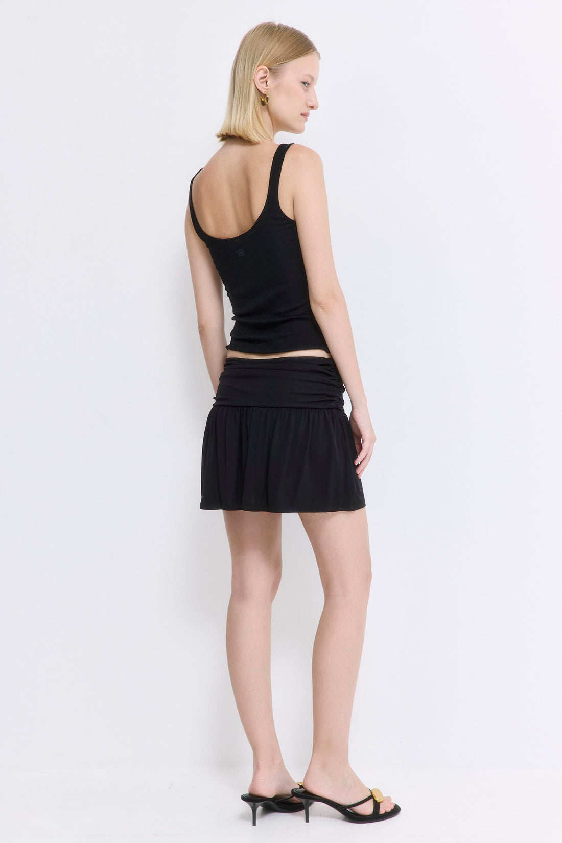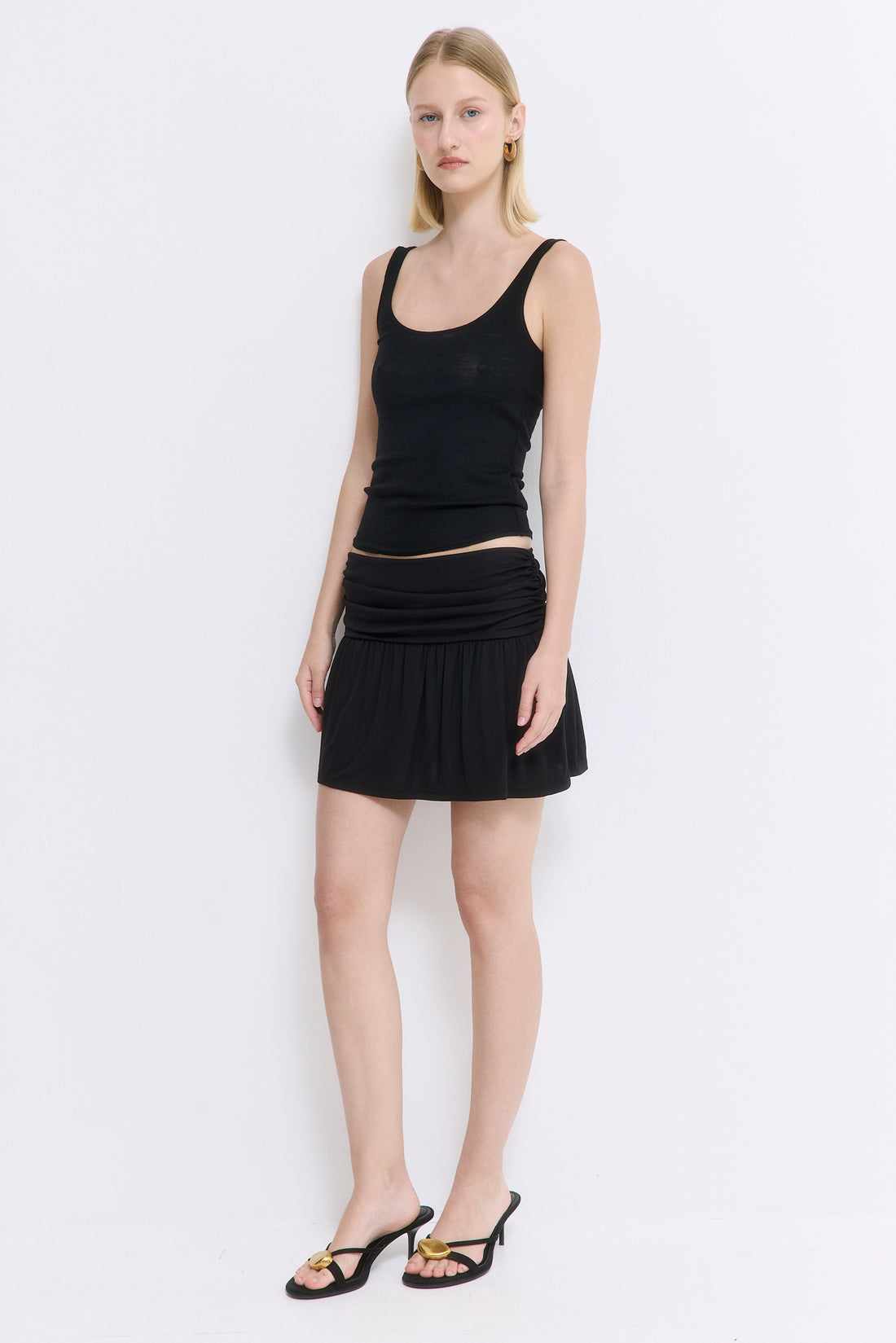 Get ready to fall in love wth our new draped jersey mini skirt. Crafted in stretchy and soft fabric that flatters and shapes the body. Gathered detailing at the waist for a flattering silhouette. Mini-length hemline for a graceful, elongated effect. Slip-on style with a relaxed fit through the skirt. Style it with our classy leather Yvon bag and our oval sunglasses for the perfect effortless look.