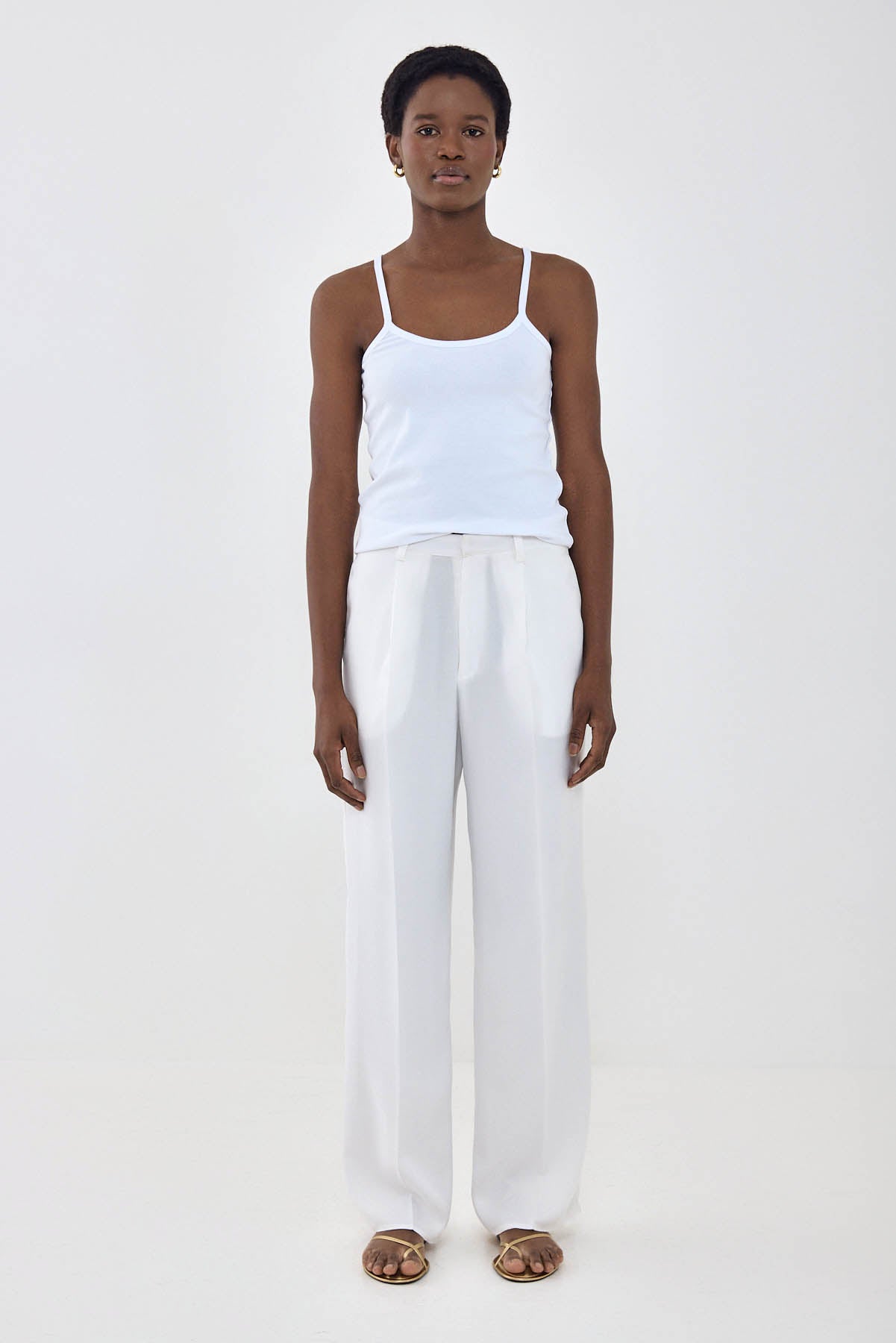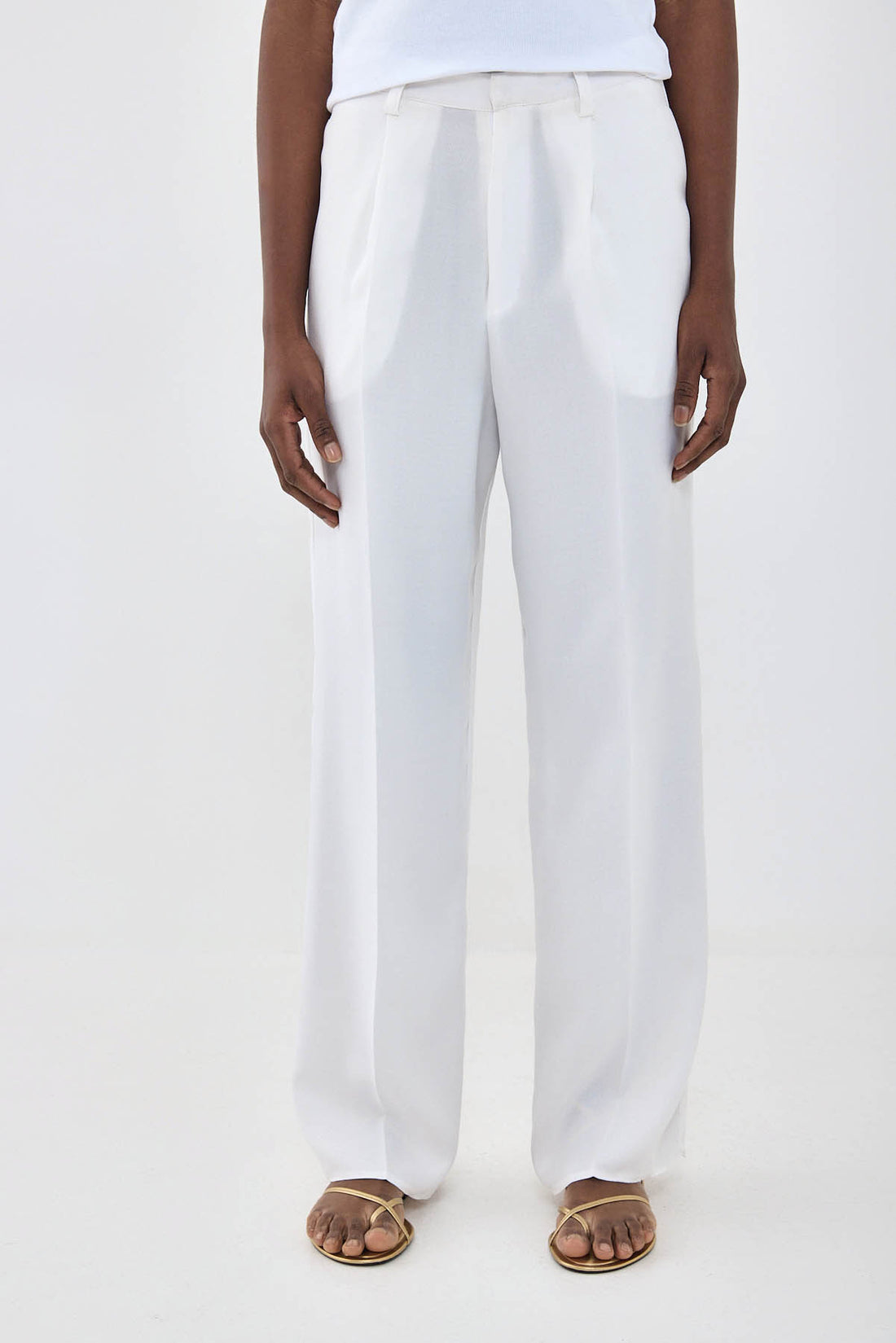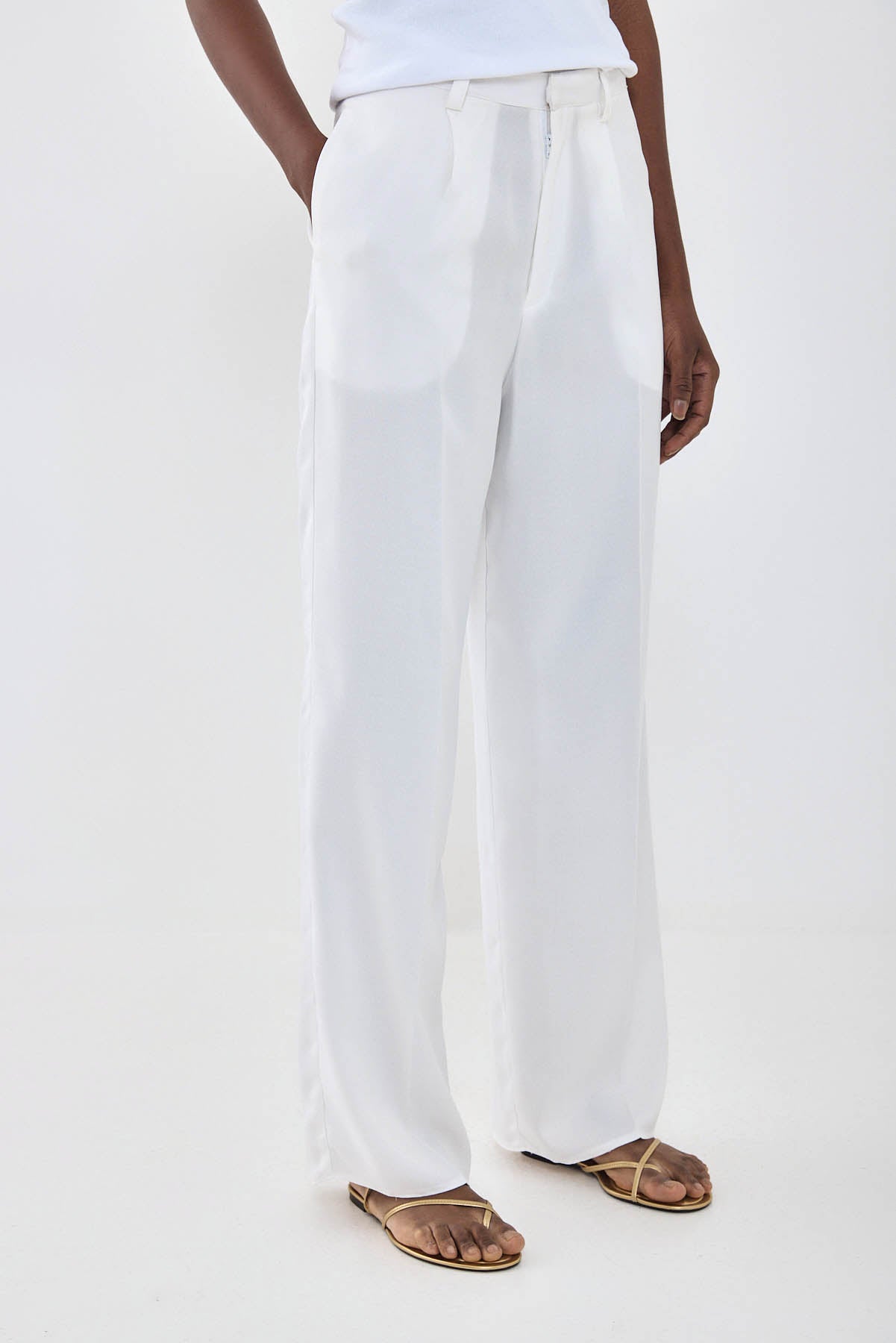 Introducing your new favorite spring pants. Full length. Tailored silhouette whilst still ultra breathable. Featuring belt loops. Metal hook closure with a frontal zipper. Two side pockets. Front pleat detailing. Unlined. Style it with the matching gallabia top, our Croco belt and your favorite nude colored sandals for the ultimate holiday look.