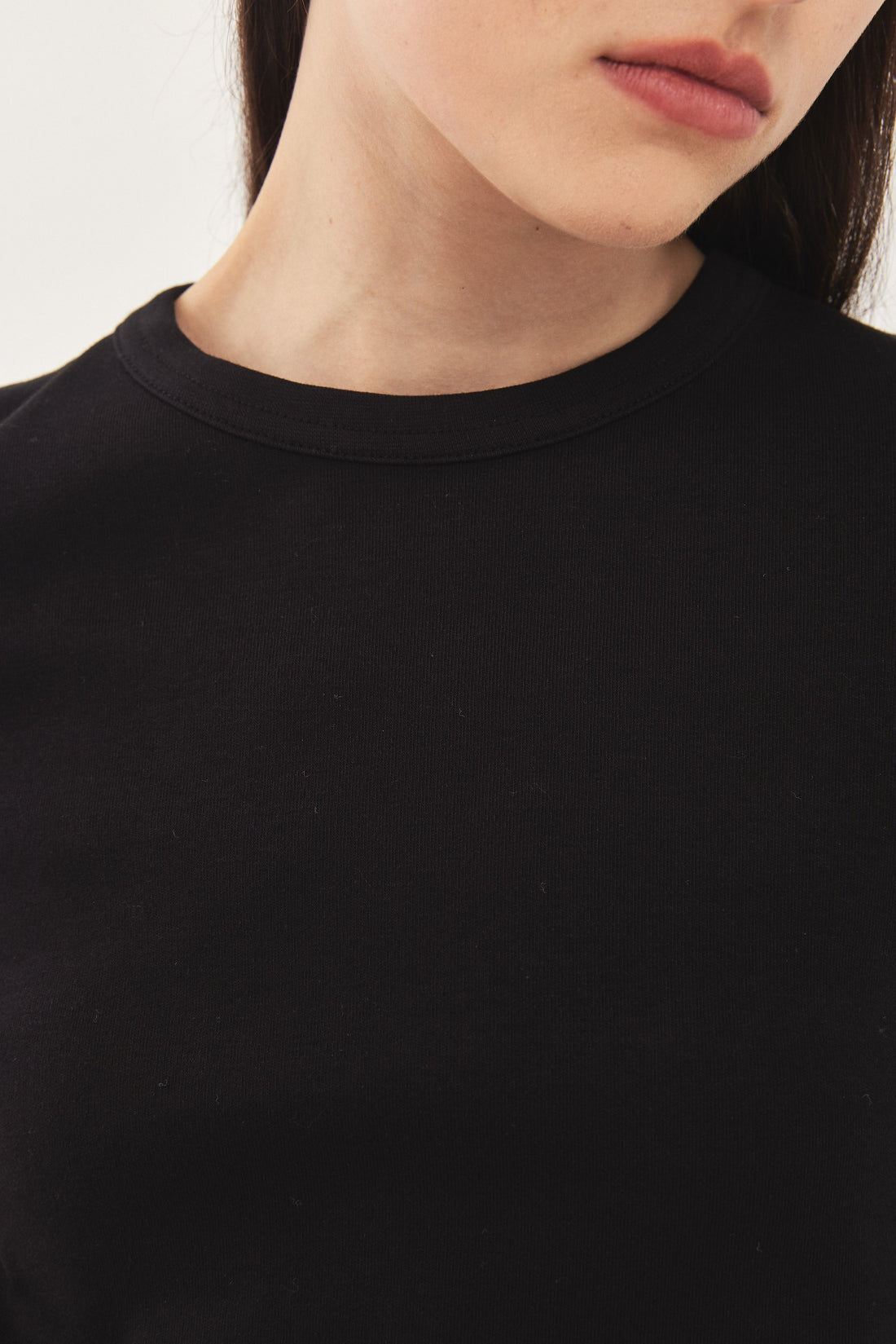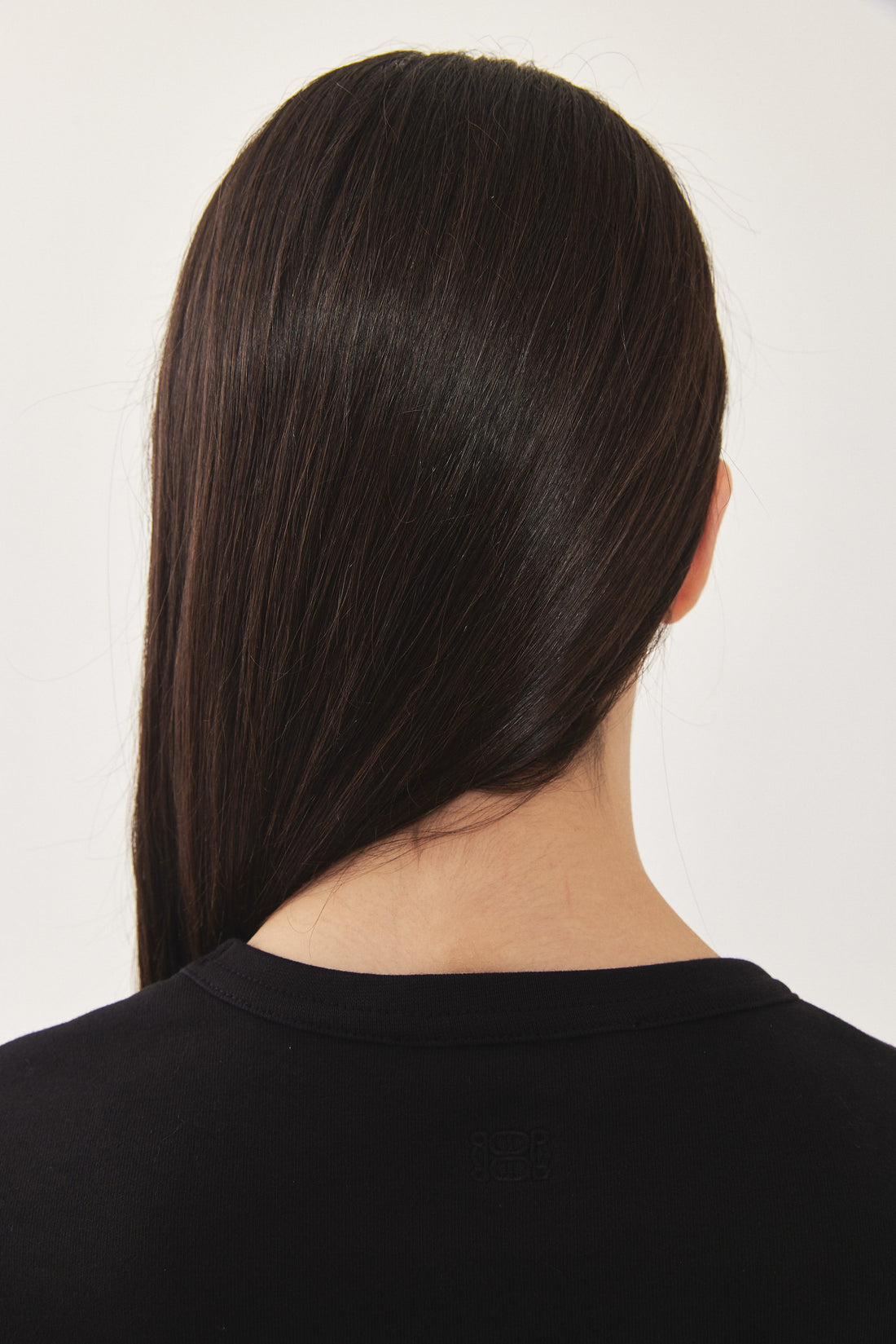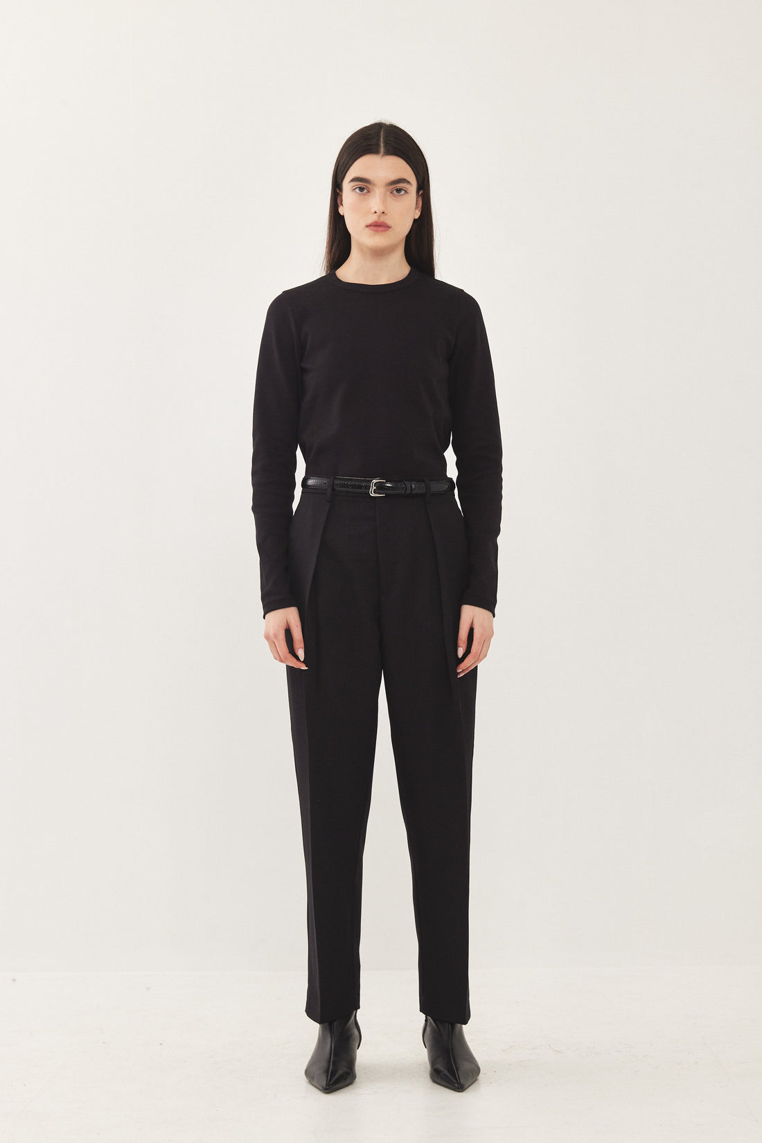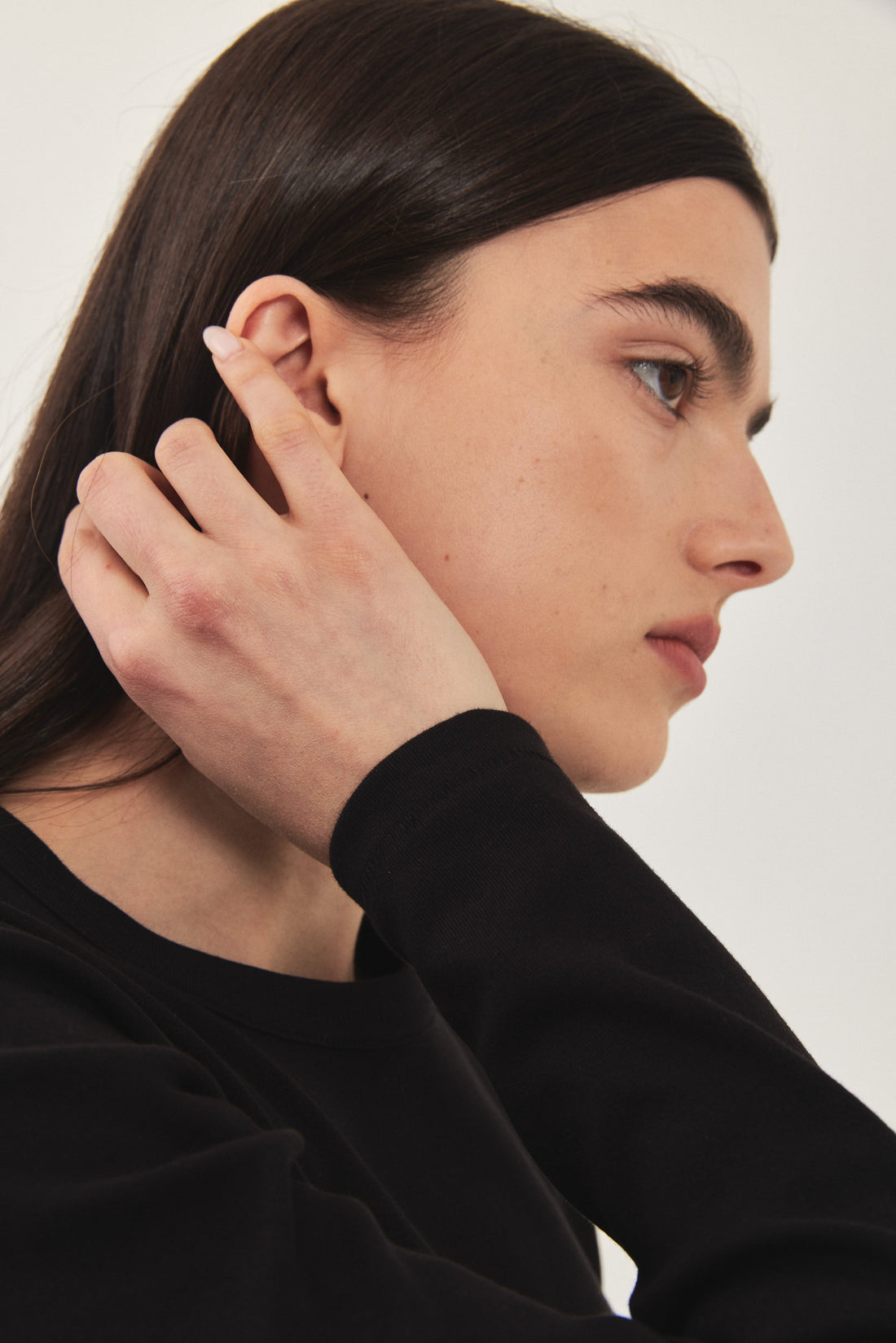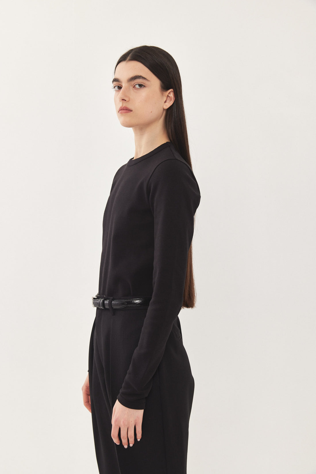 Long sleeve crew neck shirt. Made from a thick heavy cotton .Features an embroidered logo at the back. A basic top that goes with every bottom and easy to layer.