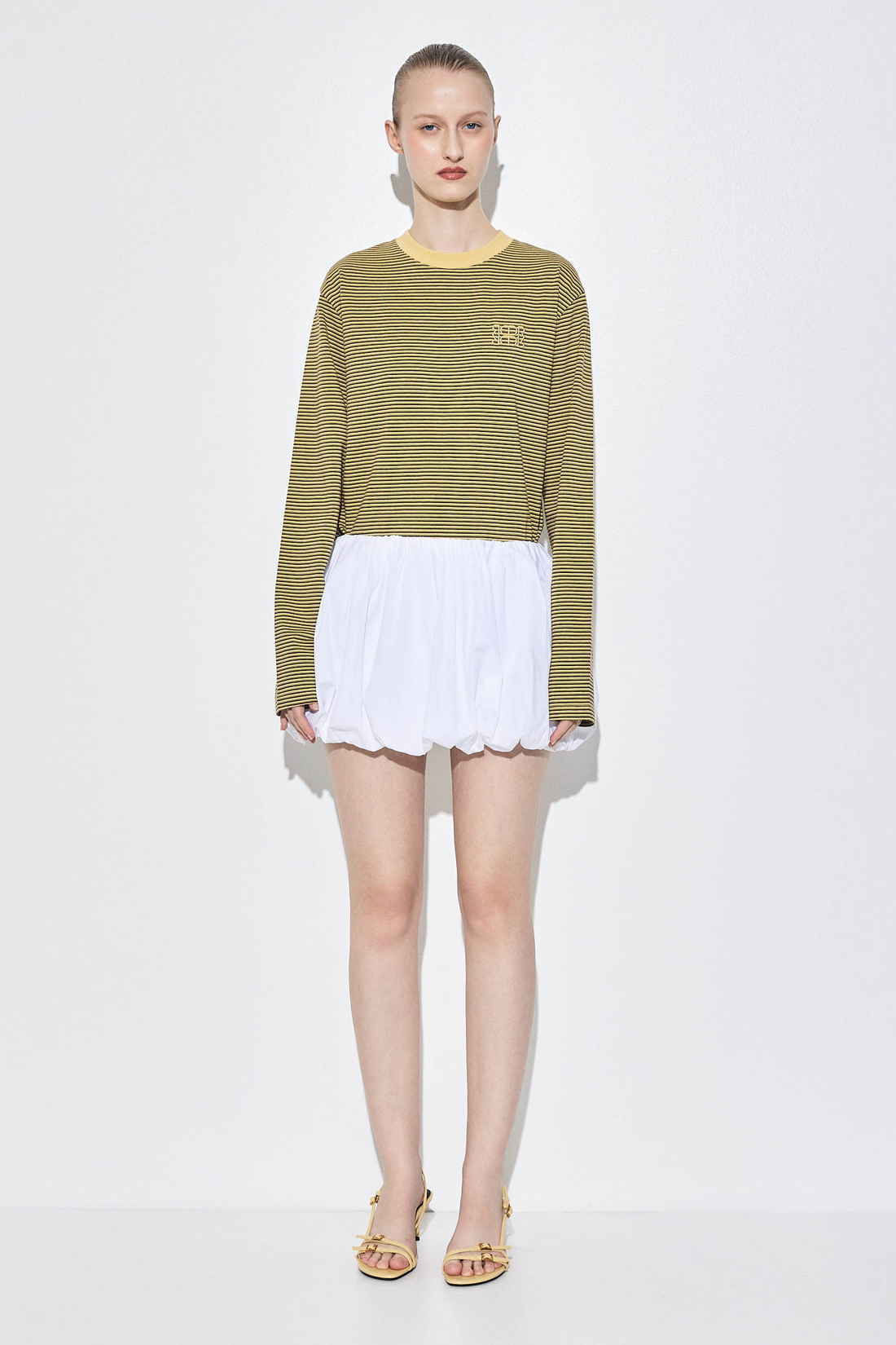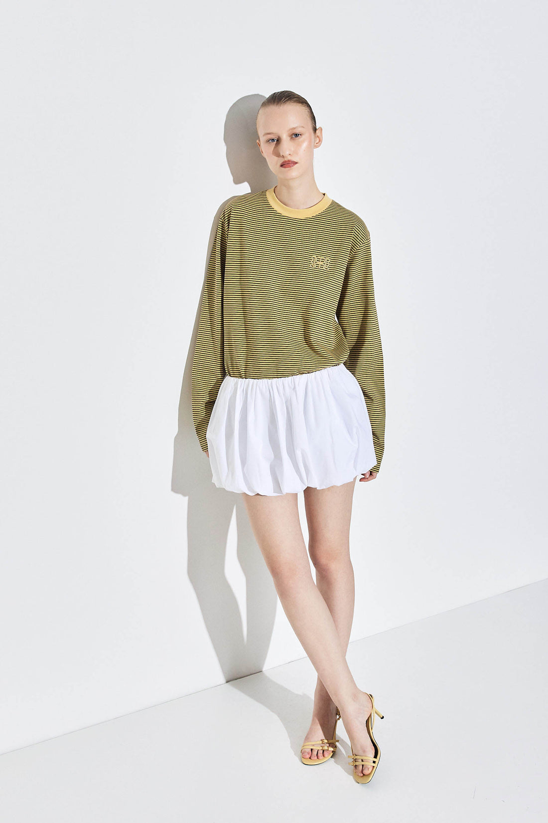 Our long sleeved striped shirt is the ultimate piece for layering this winter. Crewneck top. Oversized fit. Featuring a tonal embroidered logo on the front. Drop sleeve shoulders. Style it with our high waisted denim, our classic long trench and a pair of our beautiful oval sunnies for a an everyday cool look.