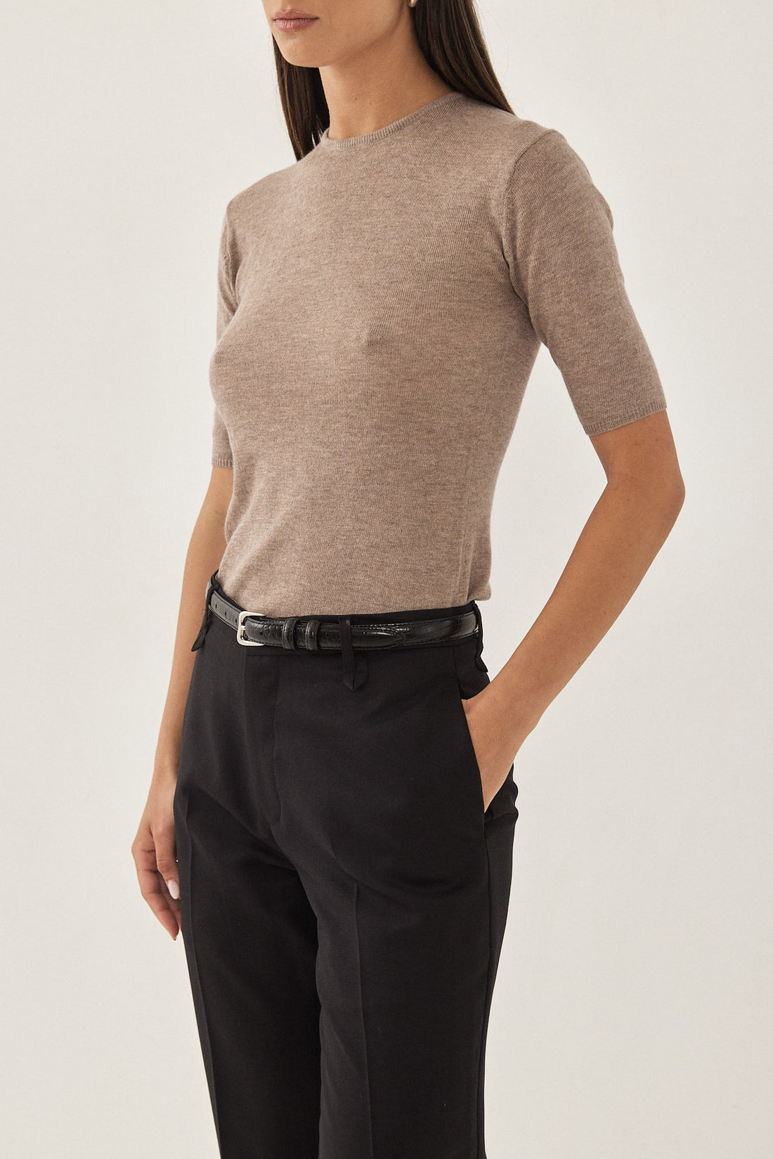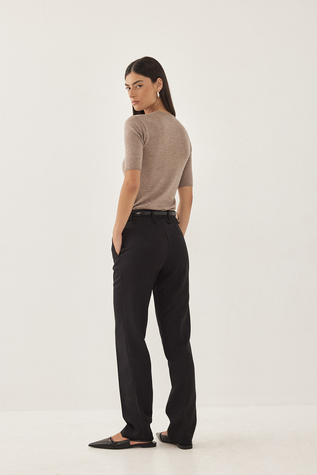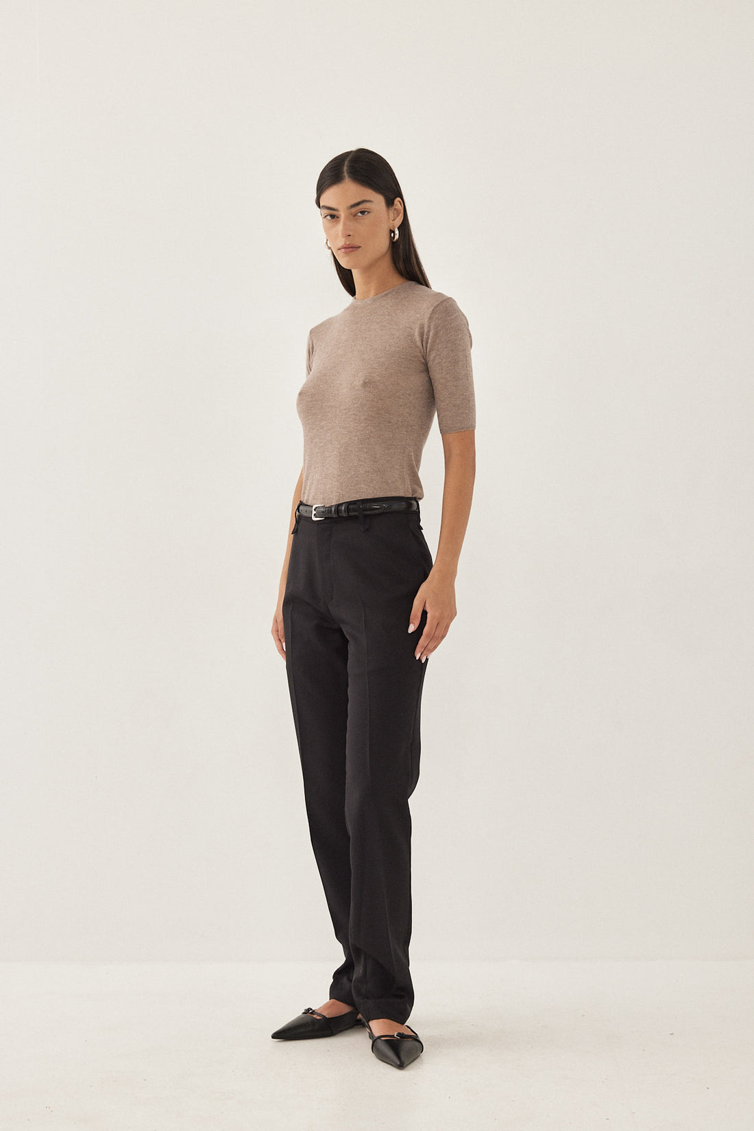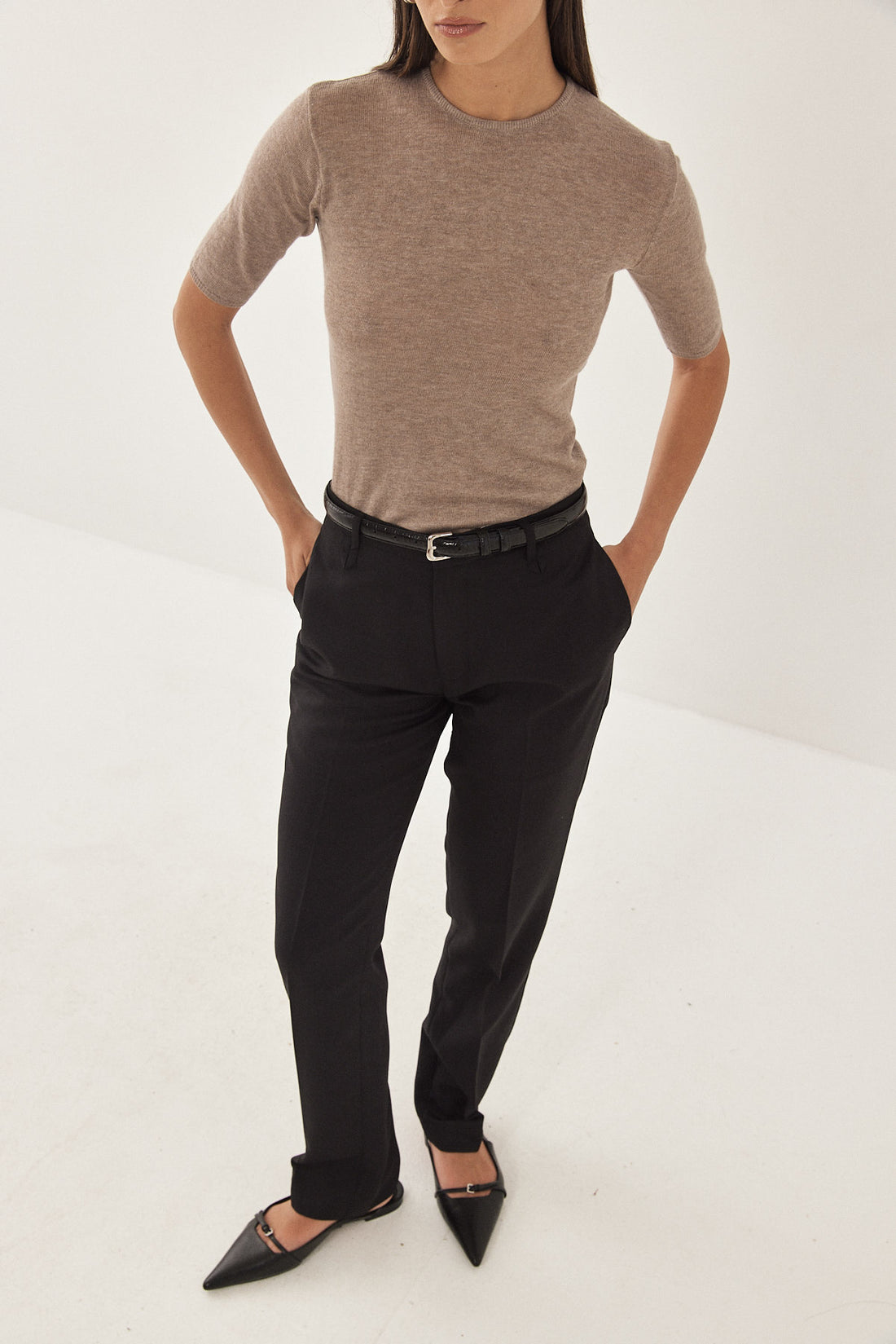 Meet your new wardrobe staple - can be styled up or down for an effortlessly chic look. Mid sleeve length t shirt. Style it with our tailored daddy pants, a pair of earrings and a kitten heel for the classiest day to night look.