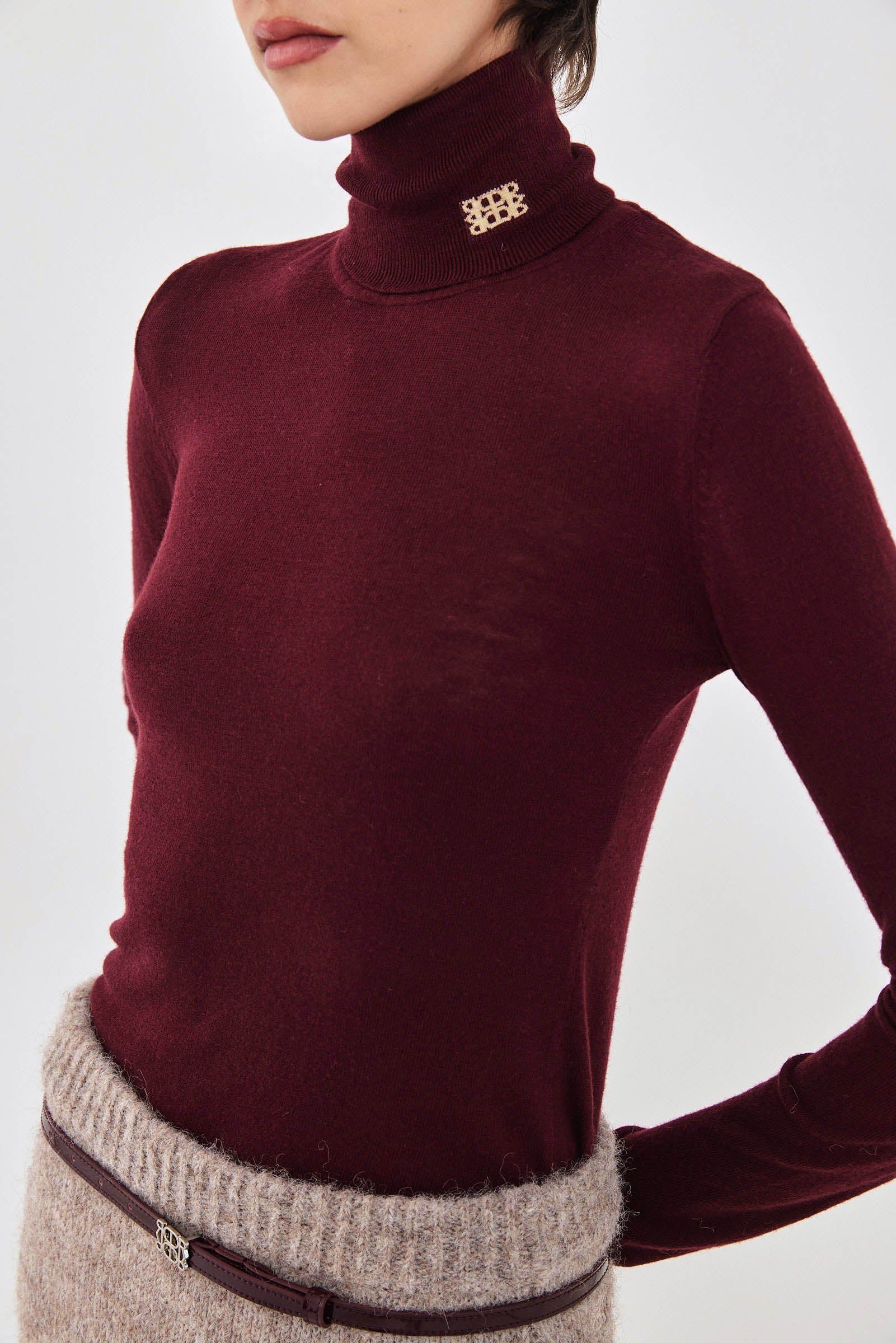 Lightweight Knitted Turtleneck Logo Top