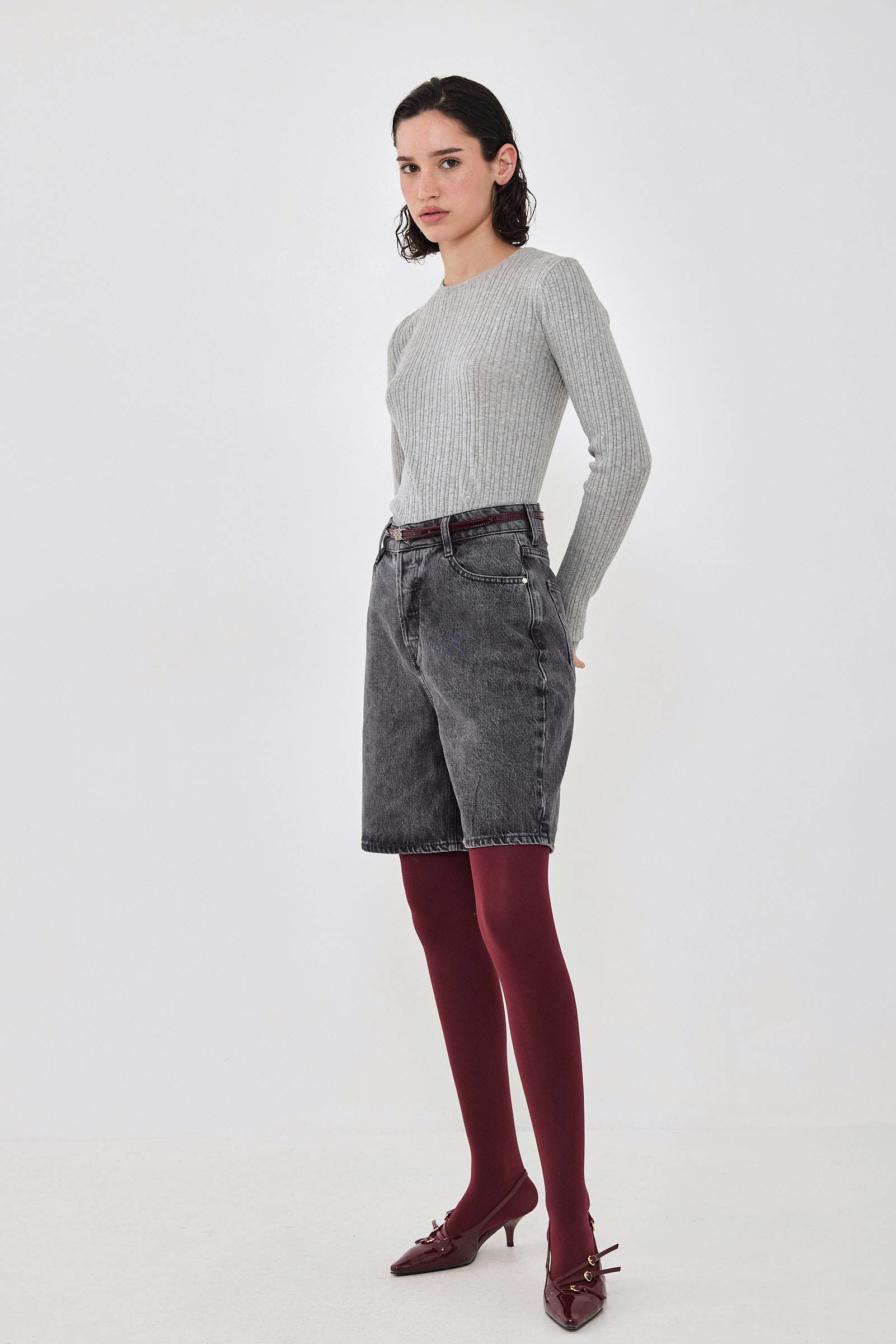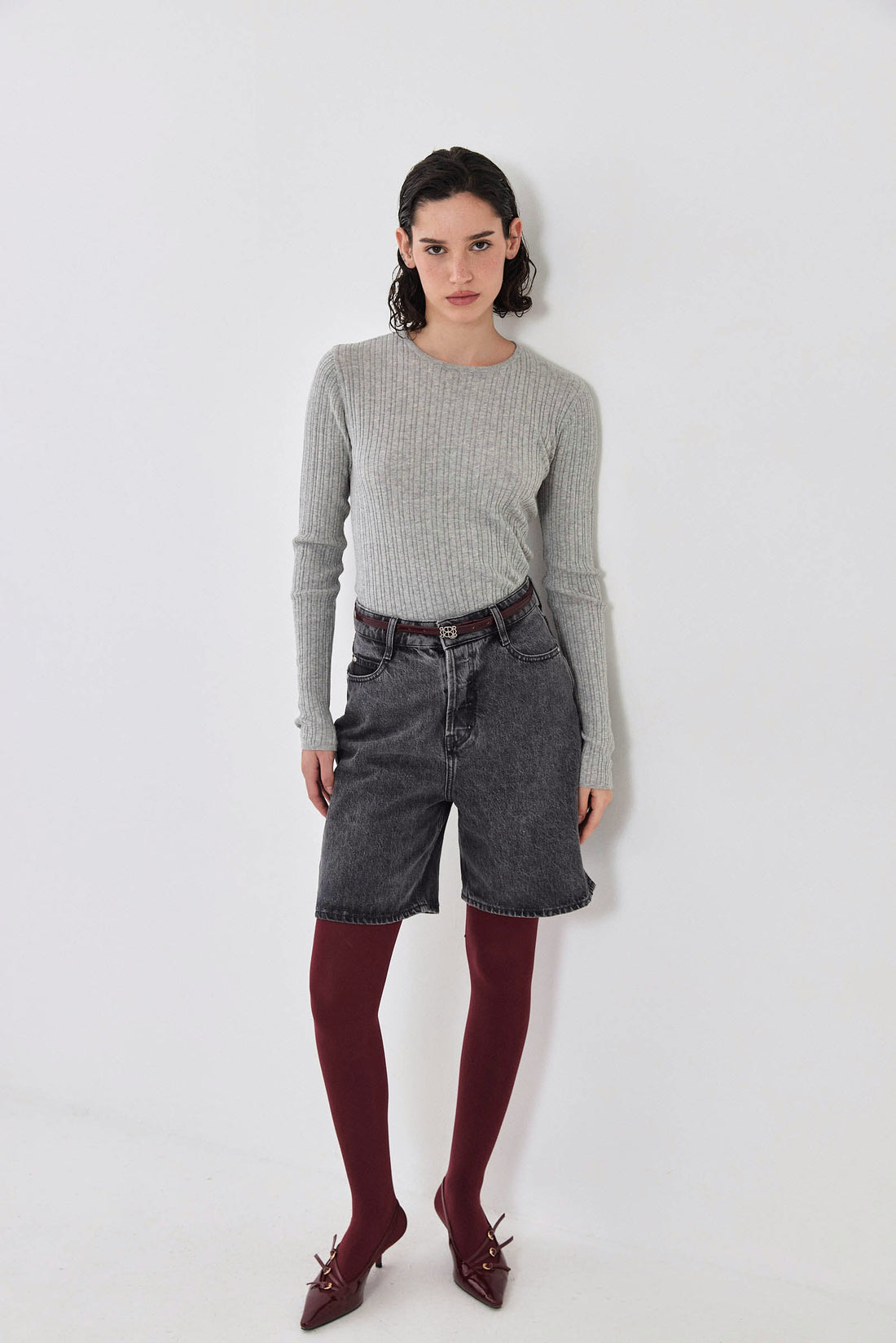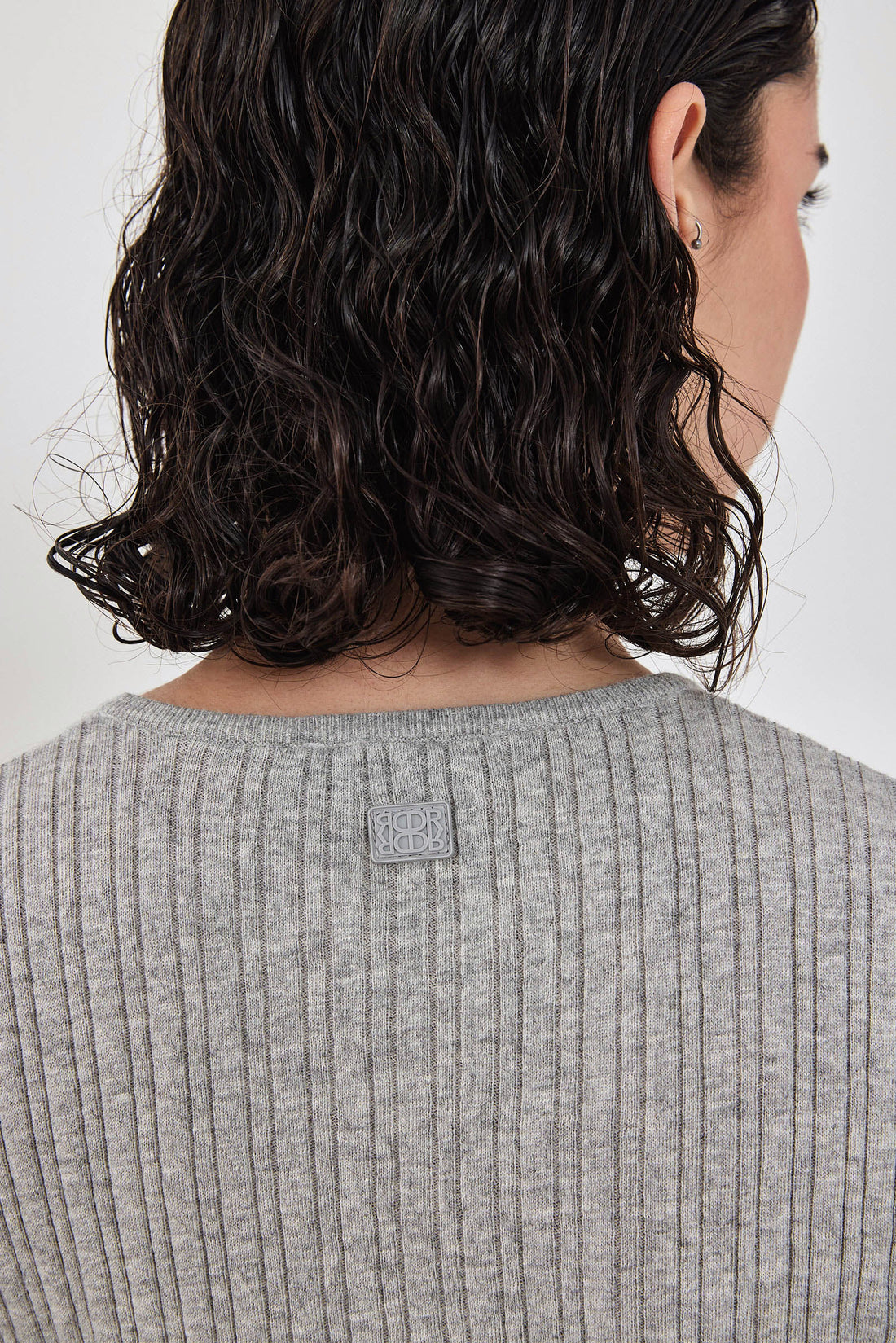 Our new ribbed long sleeved top is the perfect must have this season. Ultra-soft lightweight ribbed fabric. Ribbed finish. Features a crew neckline. Embossed silicone logo on the neckline's back. Fitted silhouette. Style it with our lace maxi skirt, our DR signature belt and throw over our vegan leather bomber for a sophisticated and unique look.