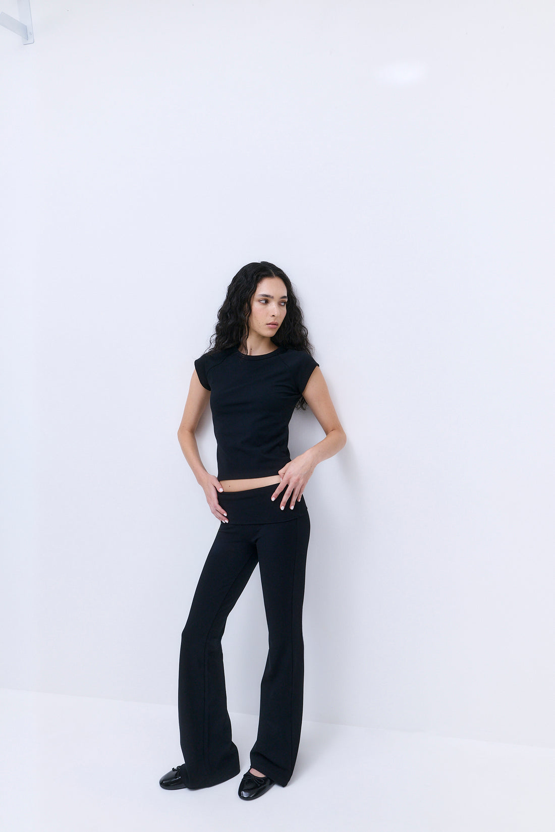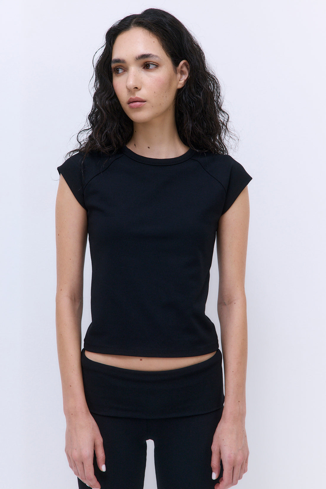 Our Lounge wear T-Shirt if the softest layer you'll slip into. Crafted from buttery, body-hugging fabric. Slim fit. Crew neckline. Raglan cap sleeves. Tonal logo embroidered on the front side. Style it with our matching Lounge Flared Pants and Double Breasted Cropped Trench Coat for ultimate comfort and an effortless vibe.